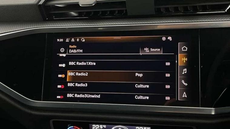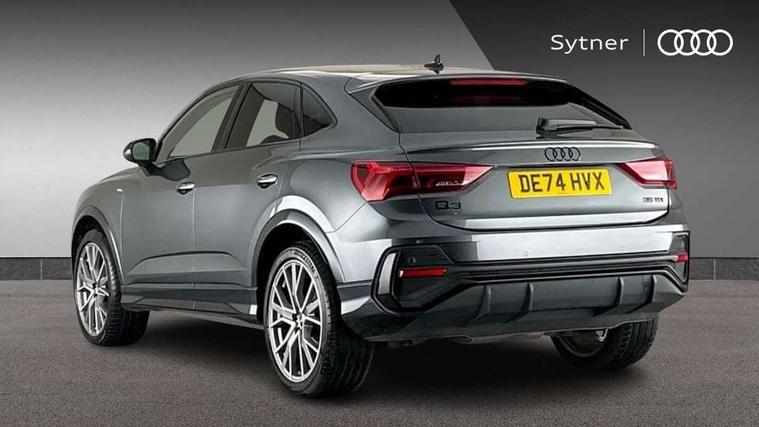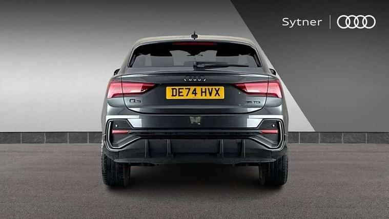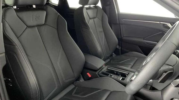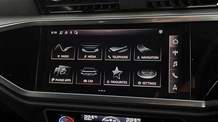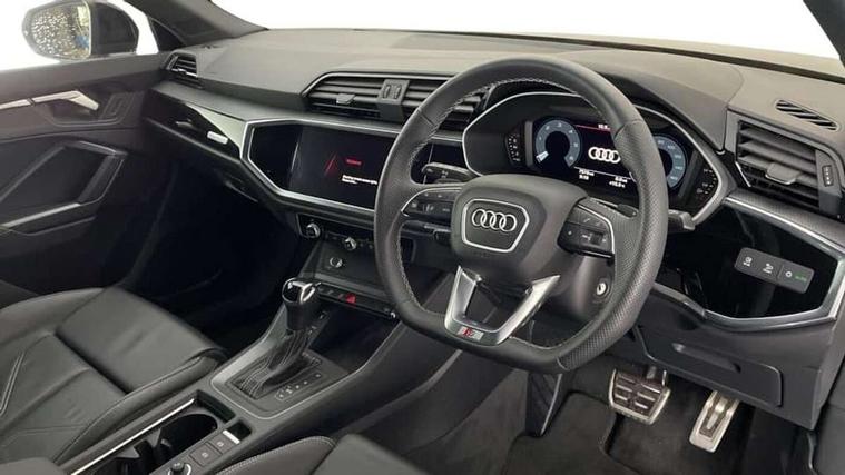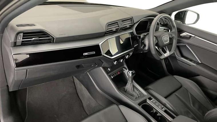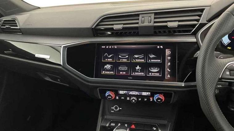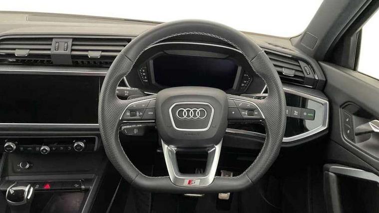 Audi connect safety and service, Audi drive select, Audi lane departure warning, Audi Virtual Cockpit - 10.25" display, Bluetooth interface, Camera based traffic sign recognition, Distraction and Fatigue warning, Legal emergency call, MMI Navigation Plus with high resolution 10.1 inch touchscreen colour display, Power operated tailgate, Progressive steering, Service interval indicator, Smartphone interface includes wireless Apple carplay/Android Auto, Start stop system with recuperation, Voice control system with natural language interaction, Diesel particulate filter, Sports suspension, 2 USB-C ports with charge and data functions, 6 passive loudspeakers, DAB digital radio module, Acoustic windscreen, Audi Beam uses LEDs to project the Audi logo onto the ground as you exit your Q3, Auto dimming door mirrors, Auto dimming frameless rear view mirror, Diffuser grille in grained matt black, Diffuser trim in selenite silver, Electrically folding, adjustable and heated door mirrors with integrated LED side indicators and kerb view function for passenger side, Front and rear electric windows, Front fog lights, Front underbody protection in manhattan grey paint finish, High gloss black finish B and C pillars, LED Dynamic rear indicators, LED headlights with LED daytime running lights, LED rear lights, LED third brake light, Privacy glass dark tinted rear and rear-side windows (from B-pillar backwards), Rain and light sensors, Rear side wing doors, Rear underbody protection in matt black, Rear wiper, S line front and rear bumpers and side skirts in contrasting Manhattan grey paint finish, Variable front intermittent wipers, 12V socket in rear centre console, 3 seat bench in 2nd row, 40:20:40 folding with manual adjustment for 60:40 forwards/backwards position and backrest angle, Adjustable rear seat bench/backrest with centre armrest and cupholder, Black cloth headlining, Dual zone electronic climate control, Electric lumbar support, Front and rear black floor mats with contrast stitching, Front and rear headrests, Front centre armrest, Height and reach adjustable steering wheel, Illuminated door sill trims with S logo, ISOFIX child seat mounting for front passenger with airbag deactivation and outer rear seat including top tether attachment point for outer rear seats, Luggage compartment sill protection in stainless steel, Manual front seats with height adjustment, Perforated leather gearknob, Single front passenger seat, Stainless steel pedals, Twin leather upholstery with front sport seats + S embossing, Black styling pack - Q3, Non smoking pack - Q3, 3x3 point rear seatbelts, 6 airbags - Driver, front passenger, curtain and side windows, Audi pre-sense front with pedestrain and cyclist recognition, Electrically operated child locks on rear doors, Electromechanical parking brake, Electronic stabilisation control including ABS, ASR and EDL, Front seatbelt reminder, Hill descent control, Hill hold assist, Pre sense basic, Seatbelt monitoring, Tyre pressure warning, Warning triangle and first aid kit, Anti theft alarm, Anti theft wheel bolts, Immobiliser, Remote central locking, Aluminium look interior elements, Detail dashboard around MMI touch colour display in glass look, black with surround in aluminium look, Leatherette door armrest, Piano black inlay,