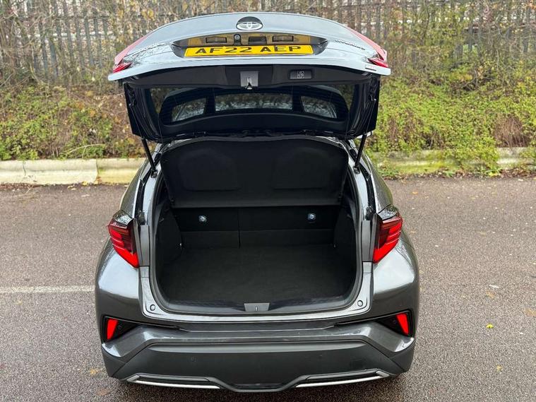 4.2" coloured TFT screen for multi-information display, Adaptive cruise control, Bluetooth connectivity, E-call, Electric power steering, Hybrid system indicator, Lane departure alert with steering control, Remote boot door release in cabin, Remote boot door release in key, Reversing camera, Road sign assist - RSA, Simple Intelligent parking assist, Touch 2 Go navigation system, Trip computer, Voice recognition, Vehicle Stability Control (VSC), 6 speakers, AM/FM radio, DAB Radio (Digital Audio Broadcasting), Toyota touch 2 multimedia system with 8" display, USB connector, Wi-fi connectivity, Adaptive front light system, Adaptive LED Headlights, Anti-jam protection on power windows, Auto high beam, Auto up and down function on all power windows, Automatic headlight levelling, Automatic headlights, Automatic headlights cut-off, Black and body coloured rear bumper, Black upper front grille, Body colour door handles, Body colour door mirrors, Body coloured front bumper, Boot door release with push button, Chrome front lower bumper, Electric heated door mirrors, Follow me home headlights, Front and rear power windows, Front spoiler lip in black, Honeycomb lower front grille, LED daytime running lights, LED fog lights, LED front light guide, LED High mounted stop light, LED rear brake lights, LED rear combination lights, Noise reduction layer on front windows and windscreen, Power adjustable door mirrors, Privacy glass, Rain sensor, Rear sequential indicators, Rear side wing doors, Rear spoiler, Rear tailgate, Rear window defogger, Rear window wiper, Shark fin antenna, UV-filter on driver and passenger windows, UV-filter on rear windows, 12v power outlet - front, 3 rear headrests, 3 seat bench in 2nd row, 3 spoke perforated leather steering wheel, 60/40 split folding rear seat, Adjustable rear headrests, Adjustable speed limiter switch on steering wheel, Assist grips front and centre pillar, Audio and telephone switches on steering wheel, Black front door assist grips, Blue ambient lighting on front cup holders, Blue ambient lighting on front doors, Boot light, Chrome interior door handles, Driver and front passenger personal light, Driver and front passenger Whiplash Injury Lessening seats, Driver and passenger seatback pockets, Dual zone automatic air conditioning, Fabric upholstery, Floor mats, Front cupholders, Front head restraints, Front sports seats, Glovebox with internal light, Hard tonneau cover, Heated driver and front passenger seats, Hooks for luggage holding net, Humidifying Nanoe air purifier, Illuminated entry system, Isofix attachments on outer rear seats, Leather gearshift, Light on driver sun visor, Light on passenger sun visor, Manual telescopic steering wheel, Manual tilt steering wheel, Manually height adjustable driver seat, Manually height adjustable front passenger seat, Manually reclining driver seat, Manually reclining front passenger seat, Manually sliding driver seat, Manually sliding front passenger seat, Microphone on front personal light, Mirror on driver sun visor, Mirror on passenger sun visor, Multimedia switches on steering wheel, Pollen filter, Power adjustable lumbar support on driver seat, Shopping bag hooks, Single front passenger seat, Slow opening on lower glovebox, Voice recognition switch on steering wheel, Tech with parking sensor pack - C-HR, 16 Disk front wheel brake, 3x3 point rear seatbelts, ABS+EBD+Brake assist, Electronic parking brake, Front and rear seatbelt reminder, Front passenger airbag on/off switch, Hill start assist control (HAC), Pre collision system with pedestrian detection, Pre-tensioners and force limiters, Rear door child safety locks, SRS Airbags - Driver + Front passenger, front side, front and rear curtain and driver's knee airbags, Toyota safety sense, Tyre pressure monitoring system, Acoustic vehicle alert system (AVAS), Glass-breaking alarm sensors, Immobiliser, Intrusion alarm, Intrusion sensor, Motion sensor alarm, Power passenger window lock, Remote central locking, Black lower dashboard, Black upper dashboard, Piano black console, Silver deco line on upper dashboard, 19" Black machined alloy wheels, Tyre repair kit,