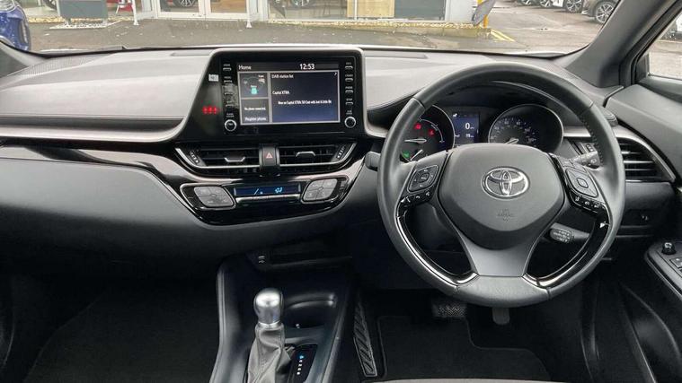 4.2" coloured TFT screen for multi-information display, Adaptive cruise control, Bluetooth connectivity, E-call, Electric power steering, Hybrid system indicator, Lane departure alert with steering control, Lane trace assist, Push button start, Push button tailgate release, Remote boot door release in cabin, Remote boot door release in key, Reversing camera, Road sign assist - RSA, Smart voice assist, Trip computer, Voice recognition, Vehicle Stability Control (VSC), 6 speakers, AM/FM radio, DAB Radio (Digital Audio Broadcasting), Toyota touch 2 multimedia system with 8" display, USB connector, Wi-fi connectivity, Anti-jam protection on power windows, Auto high beam, Auto up and down function on all power windows, Automatic headlights, Automatic headlights cut-off, Black and body coloured rear bumper, Black lower front grille, Black upper front grille, Body colour door handles, Body colour door mirrors, Body colour front spoiler lip, Body coloured front bumper, Boot door release with push button, Electric heated door mirrors, Follow me home headlights, Front and rear power windows, Front fog lights, Headlight cut off reminder, Honeycomb lower front grille, LED daytime running lights, LED High mounted stop light, LED rear brake lights, LED rear combination lights, Manual headlight levelling, Manually retractable door mirrors, Noise reduction layer on front windows and windscreen, Power adjustable door mirrors, Rear side wing doors, Rear spoiler, Rear tailgate, Rear window defogger, Rear window wiper, Reflective LED headlights, Shark fin antenna, UV-filter on driver and passenger windows, UV-filter on rear windows, 12v power outlet - front, 3 rear headrests, 3 seat bench in 2nd row, 3 spoke leather steering wheel, 60/40 split folding rear seat, Adjustable rear headrests, Adjustable speed limiter switch on steering wheel, Assist grips front and centre pillar, Audio and telephone switches on steering wheel, Black front door assist grips, Boot light, Chrome interior door handles, Cloth upholstery, Driver and front passenger personal light, Driver and front passenger Whiplash Injury Lessening seats, Dual zone automatic air conditioning, Floor mats, Front cupholders, Front head restraints, Front sports seats, Glovebox with internal light, Hard tonneau cover, Hooks for luggage holding net, Humidifying Nanoe air purifier, Illuminated entry system, Isofix attachments on outer rear seats, Leather gearshift, Light on driver sun visor, Light on passenger sun visor, Manual telescopic steering wheel, Manual tilt steering wheel, Manually adjustable lumbar support on driver seat, Manually height adjustable driver seat, Manually height adjustable front passenger seat, Manually reclining driver seat, Manually reclining front passenger seat, Manually sliding driver seat, Manually sliding front passenger seat, Microphone on front personal light, Mirror on driver sun visor, Mirror on passenger sun visor, Multimedia switches on steering wheel, Pollen filter, Shopping bag hooks, Single front passenger seat, Slow opening on lower glovebox, Voice recognition switch on steering wheel, 16 Disk front wheel brake, 3x3 point rear seatbelts, ABS+EBD+Brake assist, Electronic parking brake, Front and rear seatbelt reminder, Front passenger airbag on/off switch, Hill start assist control (HAC), Pre collision system with pedestrian detection, Pre-tensioners and force limiters, Rear door child safety locks, SRS Airbags - Driver + Front passenger, front side, front and rear curtain and driver's knee airbags, Toyota safety sense, Tyre pressure monitoring system, Tyre pressure warning system, Acoustic vehicle alert system (AVAS), Glass-breaking alarm sensors, Immobiliser, Intrusion alarm, Intrusion sensor, Motion sensor alarm, Power door locks, Power passenger window lock, Remote central locking, Black lower dashboard, Black upper dashboard, Grey deco line on upper dashboard, Matte black centre console, Tyre repair kit,