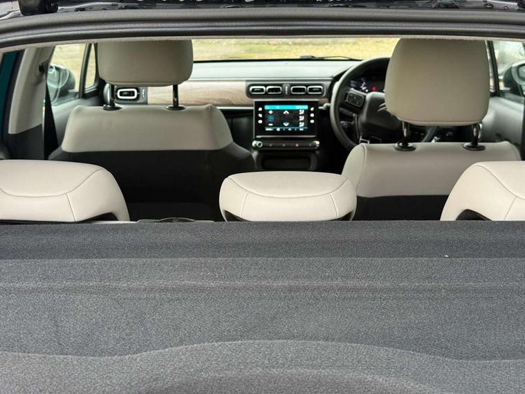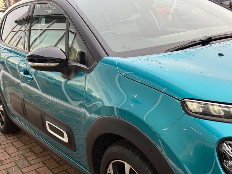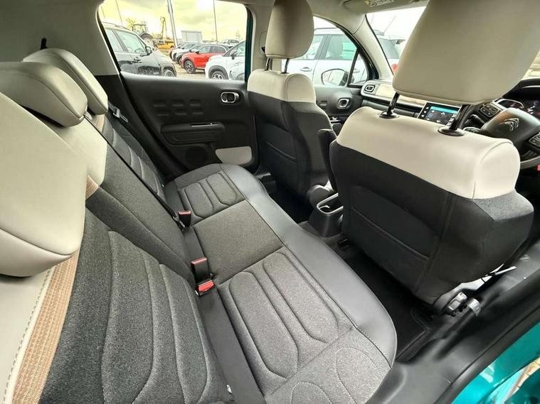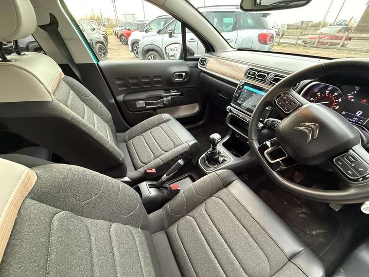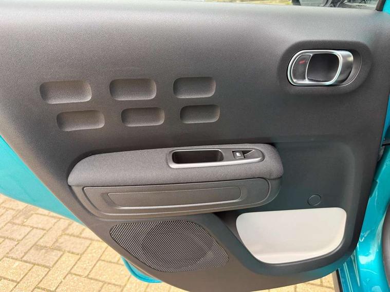 Citroen connected nav with DAB, 6 speakers, 7" captive touch screen, mirror screen includes apple carplay/android auto and bluetooth, Coffee Break Alert, Cruise control + speed limiter, eCall emergency call system, Exterior temperature display, Lane departure warning system, Multi function trip computer, Rear parking sensors, Reversing camera, Satin chrome surround instrument cluster with white LCD and analogue gauges, Variable assistance power steering, USB connection, 3D rear light signature, Airbump on side door panel, Auto headlights, Automatic activation of hazard warning lights, Body colour bumpers, Body colour door handles, Chrome decoration on front face, under chevrons and around daytime running lights, Citroen illuminated signature in LED headlights and LED daytime running lights, Dark tinted tailgate and rear side windows, Electrically adjustable door mirrors, Electrically folding door mirrors, Fog lights integrated into front bumper, Front sequential electric windows with one-touch open/close and anti-pinch system, Front windscreen wipers with two speeds and intermittent mode linked to vehicle speed, Gloss black finish B pillar, Heated door mirrors, LED Headlights, LED third brake light, Rear sequential electric windows with one-touch open/close and anti-pinch system, Rear side wing doors, Rear windscreen wiper with intermittent mode linked to vehicle speed and automatic activation when reverse gear selected, Roof colour rear view mirror caps, 1/3 to 2/3 split folding rear seat, 12V socket, Automatic air conditioning, Boot light, Cloth/leather effect upholstery, Driver and passenger's sun visor with courtesy mirror, Driver's central armrest, Driver's seat height adjustment, Front lighting panel with map reading lights, Front seats adjustable with forward back slide and adjustable backrest, Height adjustable front head restraints, Height/reach adjust steering wheel, ISOFIX mounting on outer rear seats with top tether and labels indicating fixing points, Leather steering wheel with gloss black + satin chrome elements and audio/telephone controls, Leather trimmed gear lever with leather effect gaiter and overstitching, Map pockets in back of driver and front passenger seats, Parcel shelf, Row 2 - Three seats with individually adjustable head rests, Seatbelt unfastened on the move audible and visual alert for front and rear seats, Single front passenger seat, Storage space under touchscreen with rubber mat, Three rear headrests, Upholstered armrest in front and rear doors, Safety pack 1 - C3, Safety pack 2 - C3, Visibility pack with automatic lights - C3, ABS with Electronic brakeforce distribution and Emergency braking assistance, Driver and front passenger seatbelts with pyrotechnic pretensioners and force limiters, Driver's airbag, Electric child locks, ESP with anti skid system, Front passenger airbag, Front passenger airbag deactivation, Front side airbags + front/rear curtain airbags, Hill start assist, Manual parking brake with leather handle and chrome finish button, Mono-tone horn, Outer rear seats with pretensioners and force limiters, Three rear 3-point seatbelts, Tyre pressure monitoring system, Anti theft alarm, Automatic door and boot locking when moving off with automatic unlocking in case of impact, Central locking with locked indicator and interior one touch lock button, Immobiliser, Remote control central locking with two plip keys, 17" Vector diamond cut alloy wheels, Space saver spare wheel,