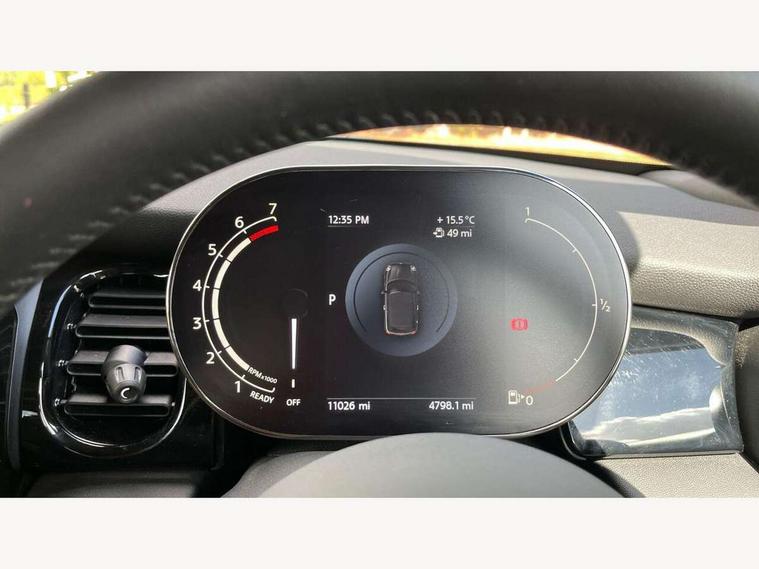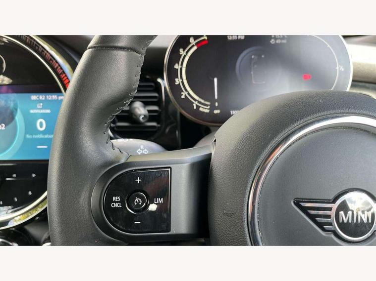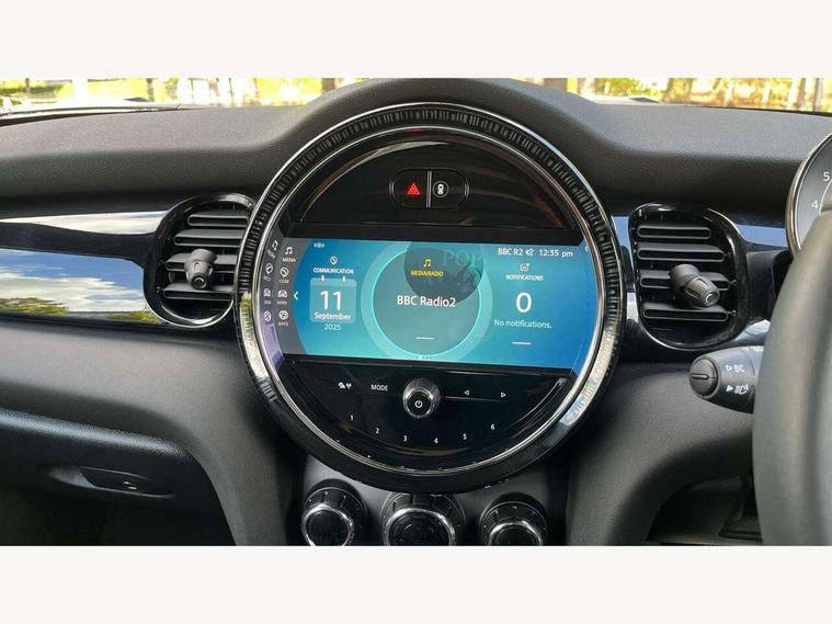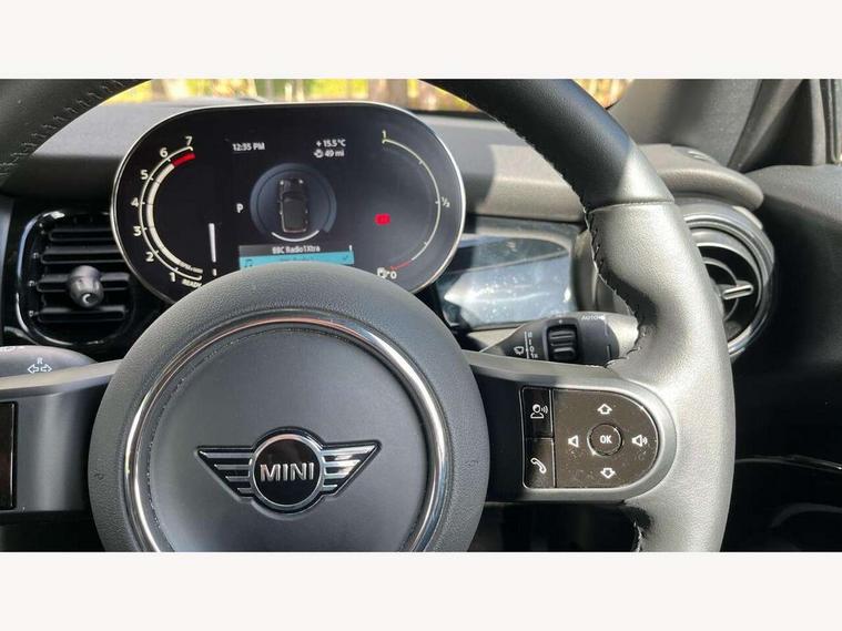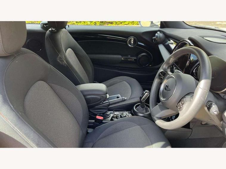 Apple CarPlay, Automatic start/stop function with brake energy recuperation, Compatible mobile phone bluetooth with audio streaming, Cruise control with brake assist, Electro-mechanical speed dependant steering assistance, Instrument cluster, Mini E-call, MINI TeleServices, On board computer, Rear park distance control, Service interval indicator, Double Vanos system, Fully variable valve control, High precision injection, Performance Control, Steptronic transmission with double clutch, FM tuner and DAB digital radio, Automatic headlight activation switch, Body colour fuel filler cap, Chrome border high gloss black slats radiator grille, Dynamic brake lights, Electric windows, Fully electric black softtop with integrated sunroof functionality, Heated rear window, Heated windscreen washer jets, LED headlight with closed ring and daytime driving lights, Left exhaust tailpipe with chrome finisher, Metal door sill strips with MINI imprint, Model logo Cooper on right of tailgate, Rain sensor window wipers, Rear boot, Rear fog lights, Rear LED lights with union jack design, Side scuttle panel with integrated indicator, Sun/heat protection glass, Third brake light, White indicator lenses, 12V Accessory socket in centre console, 2 seat bench in 2nd row, 4 lashing eyes in luggage compartment, 50/50 split folding rear seats, Chrome interior highlights, Colour line - Carbon black, Cupholders, Easy Load boot handles, Front and rear head restraints, Front and rear isofix with front passenger airbag deactivation, Glove compartment, Height and length steering column adjustment, Interior lighting with 12 different colours running across the dashboard, underneath door bezel illuminated laser engraved design on central display, Leather gearshift lever and handbrake gaiters, LED reading lights, vanity mirror lights, front foot well light and spotlight on front seats, Manual air conditioning, Mechanical seat adjustment, driver seat height adjust, forward/back and front seats backrest, Multifunction steering wheel, Single front passenger seat, Sports steering wheel, Storage compartments in doors, Sunvisors with vanity mirrors, Three spoke steering wheel with speed limiter and audio/communication controls, Velour floor mats, Convertible pack with comfort access - Mini Convertible, Navigation pack without Apple car play - Mini Convertible, 3 point seatbelts on all four seats, 6 Airbags - front, side and seat belt tensioners, Active rollover protection, Anti-lock braking system (ABS), DSC - Dynamic Stability Control, Front and rear disc brakes, Hill start assist, Single tone fanfare horn, Tyre pressure monitoring system, Alarm system with tilt sensor, monitoring doors, bonnet interior and tailgate, Electronic vehicle immobiliser, Keyless Go, Piano black interior trim, Tool kit, Tyre repair kit,