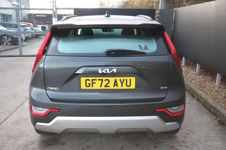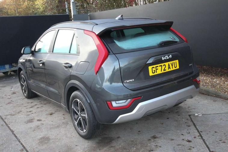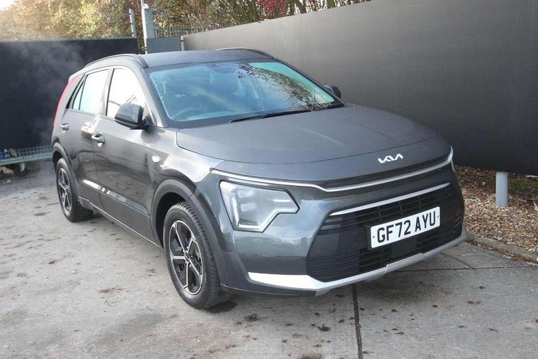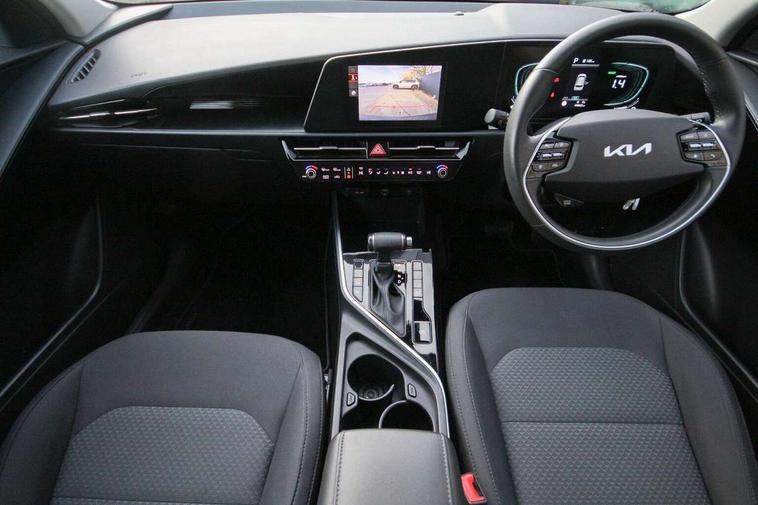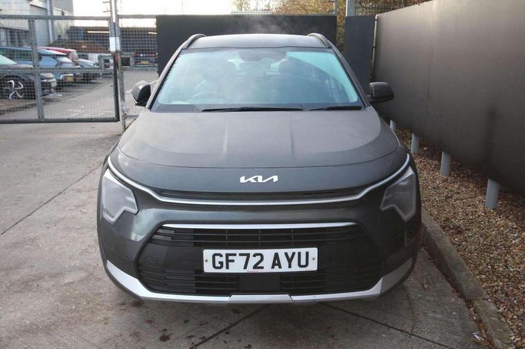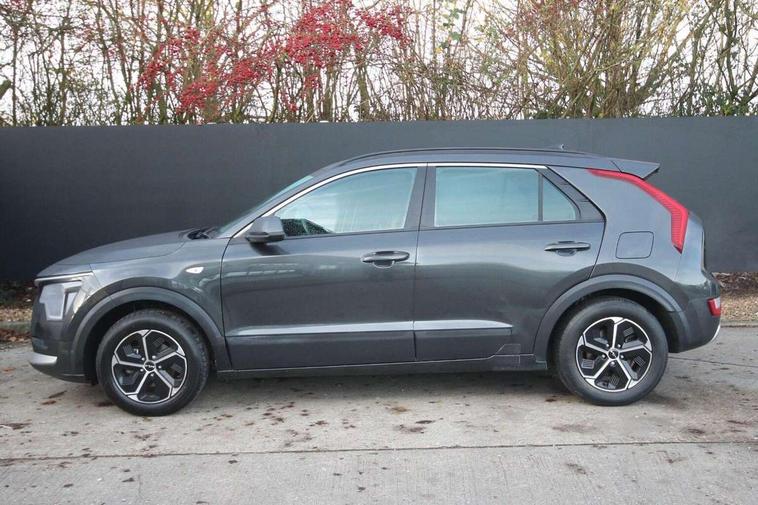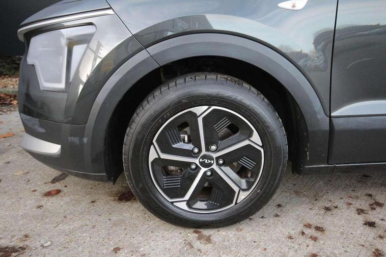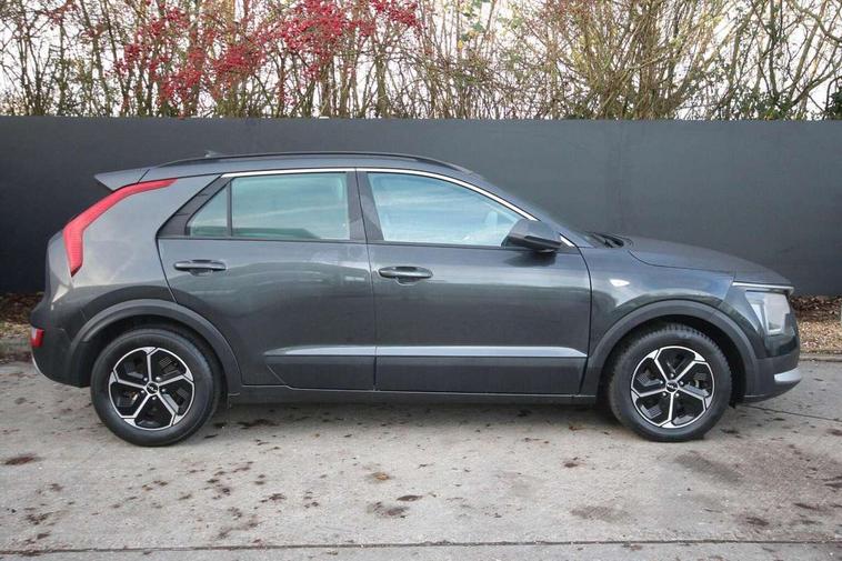 4.2" supervision colour cluster display, 8" touch screen, Adaptive smart cruise control function (SCC) with stop and go, Apple car play/Android Auto with voice control, Drive mode select (Eco, sport), E-call, Emergency stop signalling system, Forward Collision-Avoidance Assist (FCA) 1.5 - City/Pedestrian/Cyclist/Junction turning, Lane Following Assist (LFA), Lane keep assist, Motor driven power steering, Rear parking sensors, Reversing camera with dynamic guide lines, Speed limit assist, Tailgate, Trip computer with distance/fuel consumption/average speed, Sports H-Matic Automatic, 'Shark fin' mobile antenna, 2 type C USB ports on front seats, 2 USB ports in centre console including 1 type C, 6 speakers, Bluetooth with music streaming, DAB Digital radio, Steering wheel mounted controls, Acoustic windshield, All round electric windows with drivers auto up/down function, Auto dimming rear view mirror, Automatic defog system, Automatic headlight control system, Black beltline mouldings, Black embossed cladding, Body colour bumpers, Body colour door mirrors, Body colour exterior door handles, Dual LED headlights (low and high projection), Electric heated door mirrors, Front and rear silver skid plates, Heated rear window with timer, LED daytime running lights, LED rear combination lights, LED third brake light, Manual folding door mirrors, Rain sensor, Rear fog lights, Rear side wing doors, Rear spoiler, Rear wiper, Roof rails, Solar glass rear windows and tailgate, Solar glass windscreen, Welcome and follow-me home light functionality, Windscreen Washer Level Warning, 12V socket in front, 12V socket in luggage compartment, 3 seat bench in 2nd row, 60/40 split/folding 2nd row of seats, All-round height adjustable headrests, Artificial leather centre console storage box, Artificial leather steering wheel, Bulb type overhead console lamp with sunglasses case, Centre console cupholder, Cloth upholstery, Driver seat manual adjustment, Driver/passenger sunvisors with illuminated vanity mirrors, Dual zone automatic air conditioning, Front and rear door storage, H-Matic gear selection, Illuminated glovebox, Interior door lock/unlock function, ISOFIX Child seat top tethers and anchor fixings, Luggage area lamp, Luggage area load cover, Luggage board, Metal paint interior door handles, Passenger seat height adjuster, Rear armrest, Seatback pocket - driver, Single front passenger seat, Tilt/telescopic adjustable steering wheel, Towing pack - Niro, 3 point seatbelts on all seats, ABS, Automatic unlocking of doors in case of impact, Centre side front airbags, Curtain and side airbags, Drivers knee airbag, Dual shell horn, Electric parking brake with auto hold function, Electronic stability control, Front passenger airbag deactivation, Height adjustable front seatbelts, Hill start assist control (HAC), Manual rear child locks, Rear seat alert system, Traction control, Tyre pressure monitoring system, Alarm system and engine immobiliser, Deadlocks, Locking wheel nuts, Remote central door locking with fold away key, Visible vehicle identification number, Warranty - 7 Years/ 100, 000 miles, Graphite paint centre fascia, 16" alloy wheels, Tyre mobility kit,
