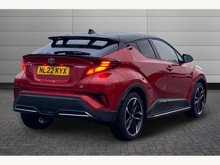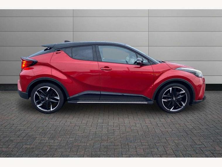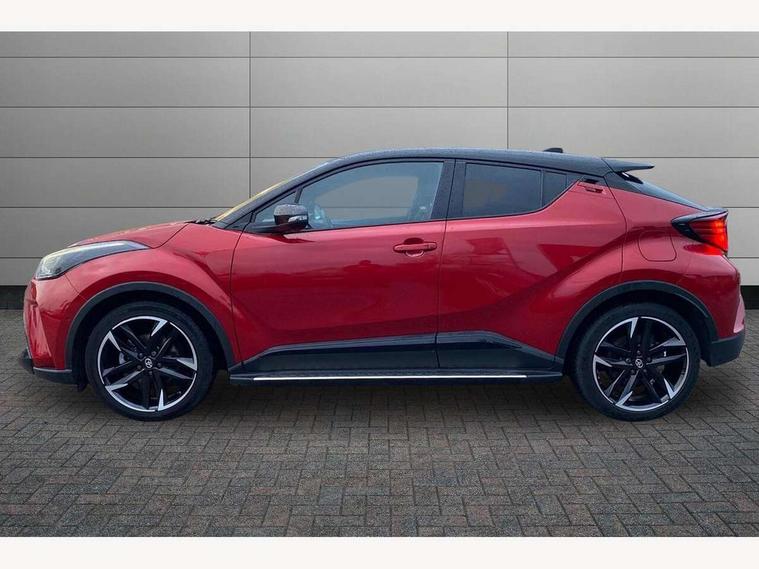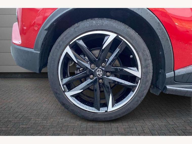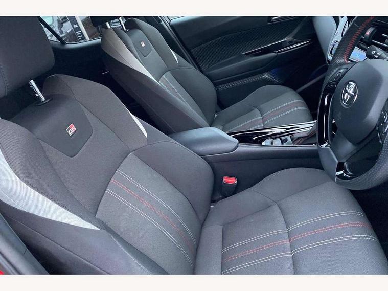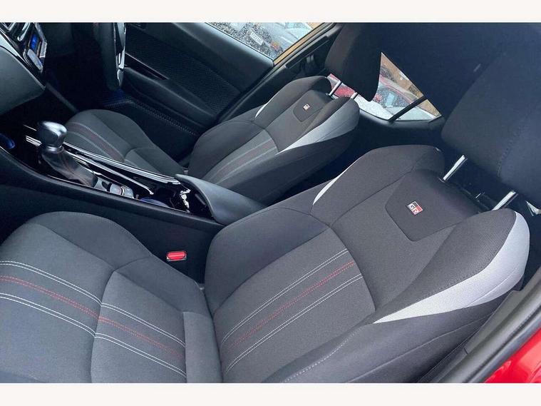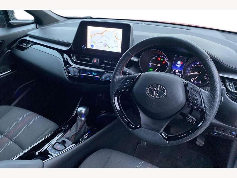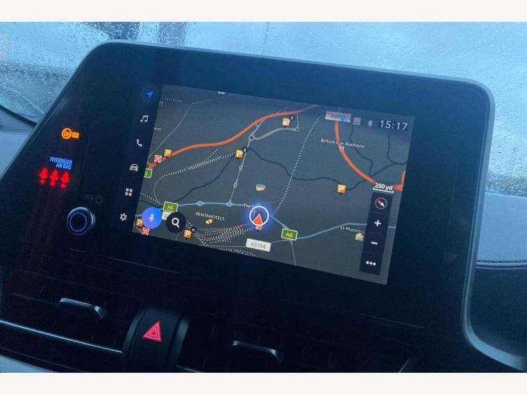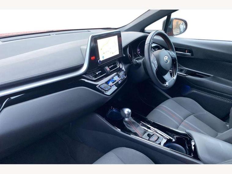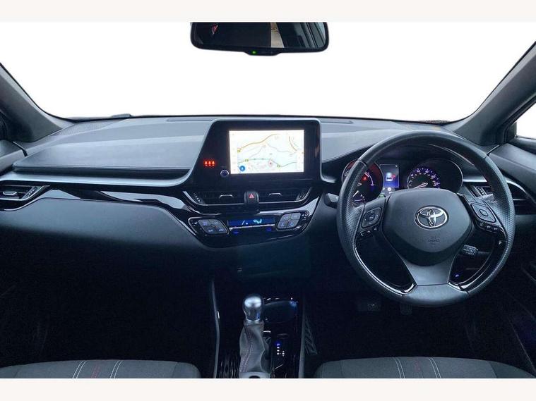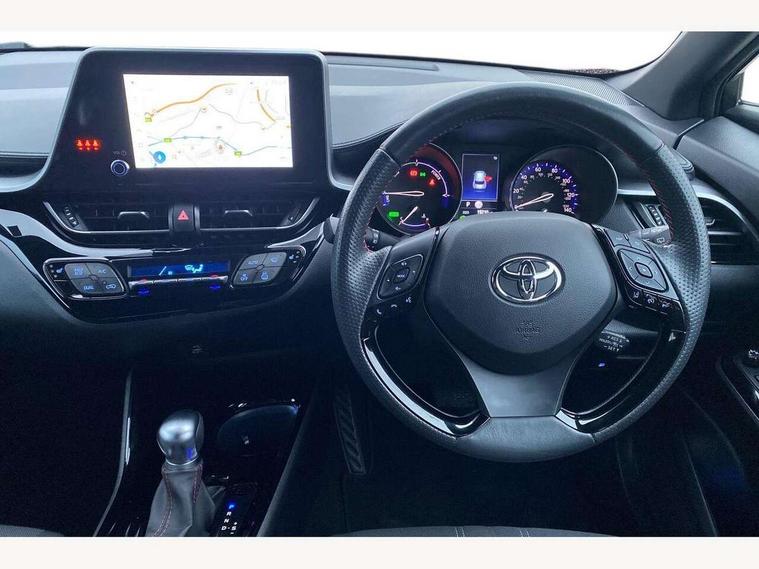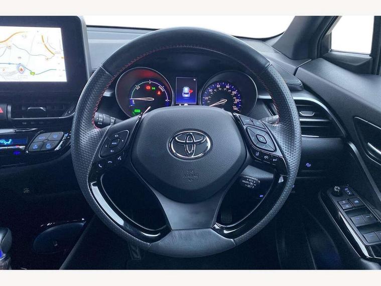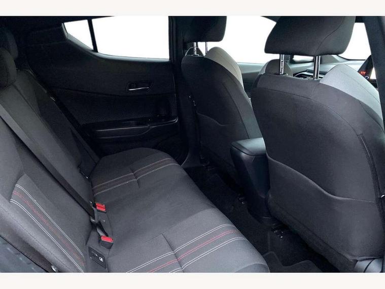 4.2" coloured TFT screen for multi-information display, Adaptive cruise control, Bluetooth connectivity, E-call, Electric power steering, Hybrid system indicator, Lane departure alert with steering control, Remote boot door release in cabin, Remote boot door release in key, Reversing camera, Road sign assist - RSA, Simple Intelligent parking assist, Touch 2 Go navigation system, Trip computer, Voice recognition, Vehicle Stability Control (VSC), 6 speakers, AM/FM radio, DAB Radio (Digital Audio Broadcasting), Toyota touch 2 multimedia system with 8" display, USB connector, Wi-fi connectivity, Adaptive front light system, Adaptive LED Headlights, Anti-jam protection on power windows, Auto high beam, Auto up and down function on all power windows, Automatic headlight levelling, Automatic headlights, Automatic headlights cut-off, Black and body coloured rear bumper, Black upper front grille, Body colour door handles, Body colour door mirrors, Body coloured front bumper, Boot door release with push button, Chrome front lower bumper, Electric heated door mirrors, Follow me home headlights, Front and rear power windows, Front spoiler lip in black, Honeycomb lower front grille, LED daytime running lights, LED fog lights, LED front light guide, LED High mounted stop light, LED rear brake lights, LED rear combination lights, Noise reduction layer on front windows and windscreen, Power adjustable door mirrors, Privacy glass, Rain sensor, Rear sequential indicators, Rear side wing doors, Rear spoiler, Rear tailgate, Rear window defogger, Rear window wiper, Shark fin antenna, UV-filter on driver and passenger windows, UV-filter on rear windows, 12v power outlet - front, 3 rear headrests, 3 seat bench in 2nd row, 3 spoke perforated leather steering wheel, 60/40 split folding rear seat, Adjustable rear headrests, Adjustable speed limiter switch on steering wheel, Assist grips front and centre pillar, Audio and telephone switches on steering wheel, Black front door assist grips, Blue ambient lighting on front cup holders, Blue ambient lighting on front doors, Boot light, Chrome interior door handles, Driver and front passenger personal light, Driver and front passenger Whiplash Injury Lessening seats, Driver and passenger seatback pockets, Dual zone automatic air conditioning, Fabric upholstery, Floor mats, Front cupholders, Front head restraints, Front sports seats, Glovebox with internal light, Hard tonneau cover, Heated driver and front passenger seats, Hooks for luggage holding net, Humidifying Nanoe air purifier, Illuminated entry system, Isofix attachments on outer rear seats, Leather gearshift, Light on driver sun visor, Light on passenger sun visor, Manual telescopic steering wheel, Manual tilt steering wheel, Manually height adjustable driver seat, Manually height adjustable front passenger seat, Manually reclining driver seat, Manually reclining front passenger seat, Manually sliding driver seat, Manually sliding front passenger seat, Microphone on front personal light, Mirror on driver sun visor, Mirror on passenger sun visor, Multimedia switches on steering wheel, Pollen filter, Power adjustable lumbar support on driver seat, Shopping bag hooks, Single front passenger seat, Slow opening on lower glovebox, Voice recognition switch on steering wheel, Tech with parking sensor pack - C-HR, 16 Disk front wheel brake, 3x3 point rear seatbelts, ABS+EBD+Brake assist, Electronic parking brake, Front and rear seatbelt reminder, Front passenger airbag on/off switch, Hill start assist control (HAC), Pre collision system with pedestrian detection, Pre-tensioners and force limiters, Rear door child safety locks, SRS Airbags - Driver + Front passenger, front side, front and rear curtain and driver's knee airbags, Toyota safety sense, Tyre pressure monitoring system, Acoustic vehicle alert system (AVAS), Glass-breaking alarm sensors, Immobiliser, Intrusion alarm, Intrusion sensor, Motion sensor alarm, Power passenger window lock, Remote central locking, Black lower dashboard, Black upper dashboard, Piano black console, Silver deco line on upper dashboard, 19" Black machined alloy wheels, Tyre repair kit,