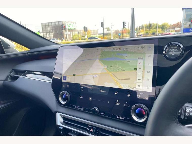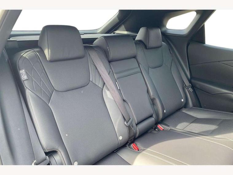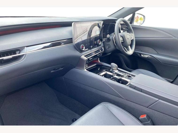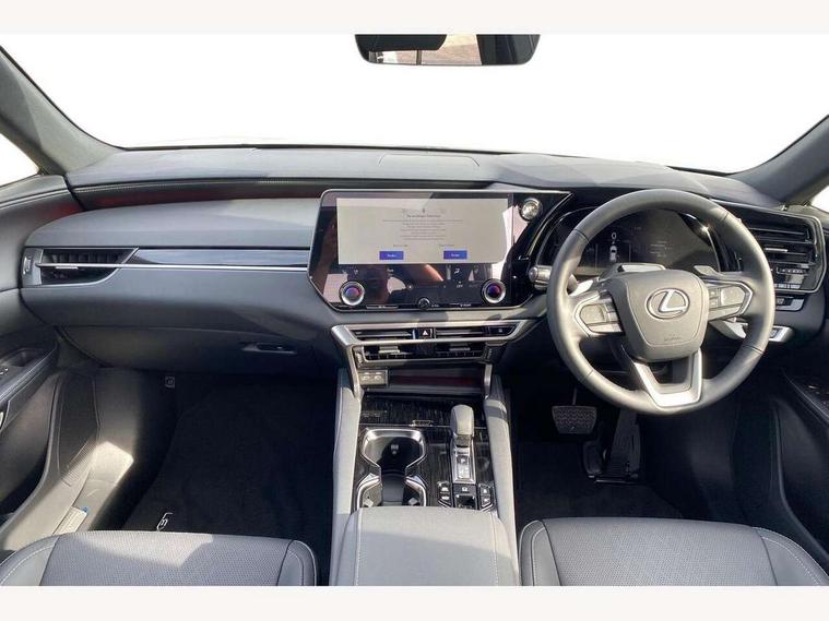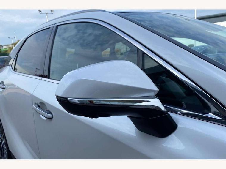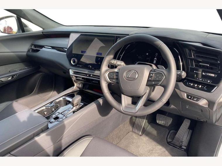 360 degree panoramic view monitor, Bluetooth mobile phone connectivity, BSM - Blind spot monitoring, Drive mode selector, Driver monitoring system, E-call, Head up Display, Intelligent clearance sonar, Lexus link connected services including over the air updates, MM21 Lexus link pro - 14" HD touchscreen with embedded and cloud based navigation, voice assistant, connected services, over the air and always online, Push button starter, Rear cross traffic alert, Speed sensitive electric power assisted steering, Ultrasonic parking sensors, Wireless Apple CarPlay and wired Android Auto, Wireless Smartphone charger, 3 pin to Type 2 10A charging cable, 6.6 kW onboard charger, E-Four Automatic transmission, Type 2 AC charging, Type 2 mode 3 32A charging cable, Vehicle Stability Control (VSC), 12 speakers audio, 5 USB ports (3 front USB C and 2 rear USB C), DAB Digital radio, 3 projector bi-beam LED headlight with auto high beam, Auto dimming rear view mirror, Auto headlights, Front and rear one touch power windows with voice command, Front and rear silver window frame mouldings, Glove and towel set, Headlight washers, Heated, auto-folding door mirrors, auto dimming with rerverse tilt, turn indicators and panoramic view sensors, L-shaped rear light bar, LED brake lights and rear lights with emergency brake signal, LED cornering headlights, LED daytime running lights, LED front and rear fog lights, LED Indicators, Power back door with kick sensor, Privacy UV glass, rear doors and tailgate, Rain sensor windscreen wipers, Rear side wing doors, Rear wash/wipe, Roof rails, Variable front intermittent wipers, 12V accessory port centre console and luggage compartment, 2 cup holders in centre console, 2 way electric lumbar support for driver and front passenger, 2 x Sunvisors with vanity mirror and lamp, 3 rear headrests, 3 seat bench in 2nd row, 40:20:40 split folding rear seats, 64 colour LED ambient interior illumination with 14 pre-set themed colour tones, 8 way electrically adjustable front seats, Charge cable bag, Driver seat memory function, Easy access driver seat, Easy access steering wheel, Front aluminium scuff plates, Front headrests, Front tray in front of centre console, Glovebox, Heated and ventilated front seats, Heated steering wheel, Leather steering wheel, Lever type shft control, Manually adjustable rear seats, Power adjustable steering wheel, Rear resin scuff plates, Single front passenger seat, Smooth leather upholstery, Textile carpet mats, Three zone climate control air conditioning system, Two way opening centre armrest with storage, 2 x Isofix child rear seat restraints, 3 point ELR front and rear seatbelts with pretensioners, ABS, Curtain shield airbags (front and rear), Driver and front passenger 2 stage airbag, Driver/front passenger side airbags, Drivers knee airbag, E-Latch with safe exit assist, EBD + Brake Assist, Electronic parking brake, Electronically controlled braking, Extended lexus safety system+ 3 - lane change assist, front cross traffic assist, Front and rear left/right force limiters and tension reducers, Front and rear left/right seatbelt reminders, Front centre airbag, Hill assist control, Lexus safety system+ 3 - dynamic radar cruise control, pre collision system day and night, lane tracing assist, road sign, Manual child lock in rear doors, Passenger airbag cut-off device, Traction control, Tyre pressure warning, 2 x remote key fobs, Customisable auto door lock, Locking wheel nuts, Motion sensor key, Smart keyless entry, Thatcham category 1 alarm + immobiliser, VIN etching, Black Inlay, 21" Alloy wheels,