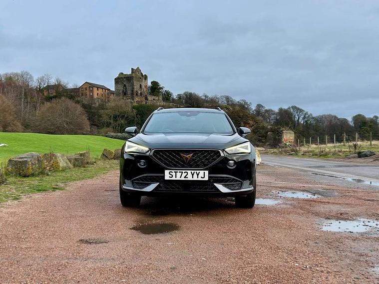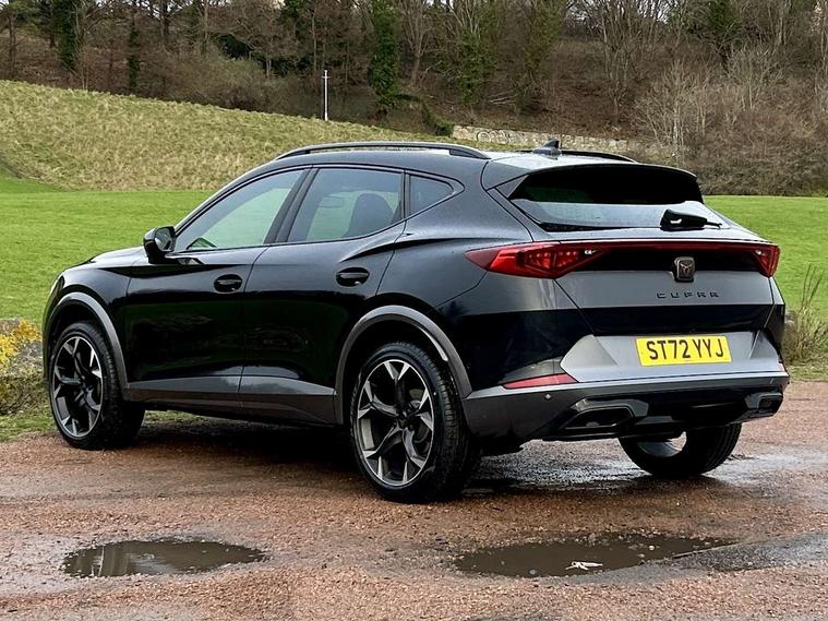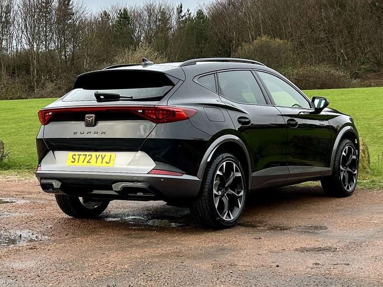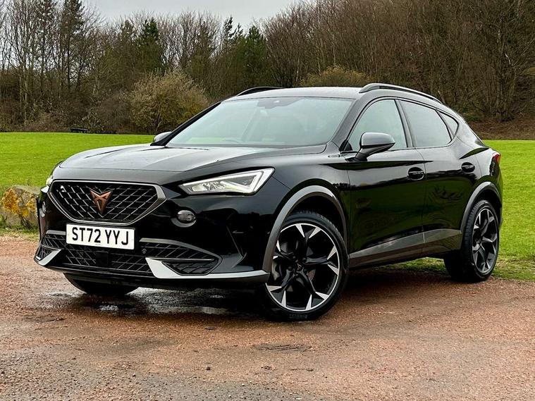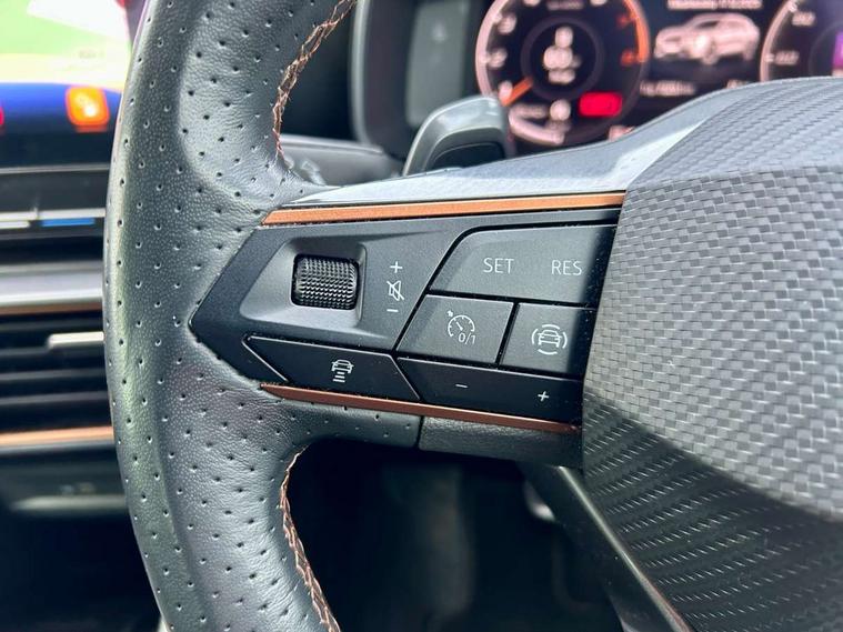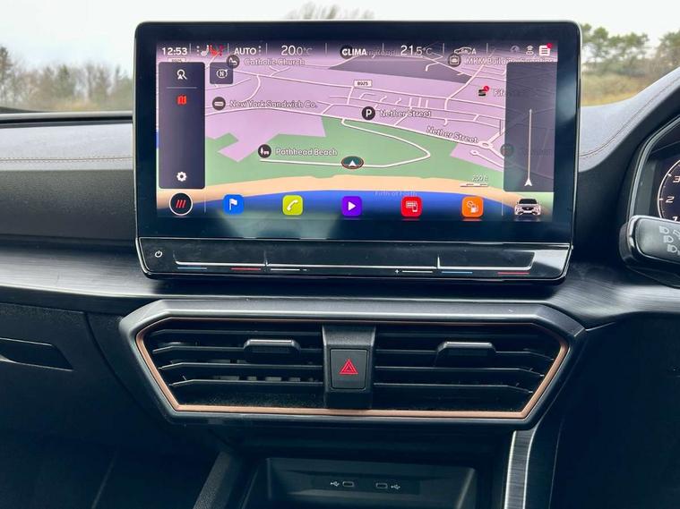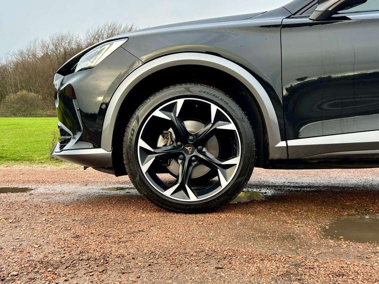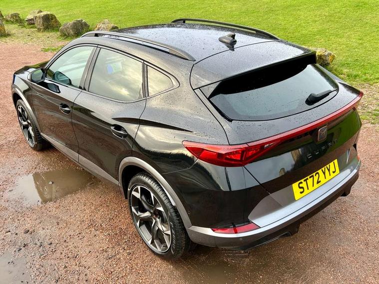 Digital cockpit and configurable dashboard, Driver alert system, Driving profile selection, Forward collision warning with automatic braking, Lane assist, Navigation system with 12'' Touchscreen Display, Park assist (inc front/rear parking sensors), PAS, Predictive adaptive cruise control with speed limiter, Rear view camera, RPM, trip computer, outside temp gauge, instrument light brightness, low fuel warning light, lights on reminder, gearshift indicator, Service interval indicator, Start/stop system with regenerative braking, Voice control system, Wireless apple carplay, Wireless phone charger, Electronic locking differential and dynamic traction support, Standard suspension, 2 front and 2 rear USB type C sockets, Auxiliary input socket, DAB radio, Auto dimming rear view mirror, Body colour door handles, Body coloured bumpers, Dark grey wing mirror, Daytime running light with automatic headlight control and coming home feature, Dynamic headlight range control, Electric front/rear windows, Electrically adjustable heated and folding door mirrors with memory function, Front fog lamps with cornering function, Gloss black roof rails and window surrounds, LED Headlights, LED Taillights with dynamic indicator, Rain sensing wipers, Rear diffuser with black simulated exhaust pipes, Rear side wing doors, Rear wash/wipe, Third brake light, Tinted rear windows, Welcome lights, 12v power supply in centre console, 12V socket, 12v socket in loadspace, 2 front and 2 rear reading lights, 230V socket, 3 seat bench in 2nd row, 60/40 split rear bench seat with armrest and mechanical seat release, Black headlining, Dust/pollen filter, Front and rear head restraints, Front centre armrest, Height/reach adjust steering wheel, Illuminated interior front door sills, Illuminated sunvisor with mirror, Isofix, Leather multi function heated steering wheel with gear shift paddles, Luggage tie-down hooks, Single front passenger seat, Three zone climate control with control panel in rear, Variable luggage/load compartment floor, Wraparound lighting, Genuine Nappa leather Pack - Cupra, 3 point seatbelts on all rear seats, ABS, Brake control system - ESC and brake booster, Child proof door locks, Driver and front passenger airbags with front passenger airbag de-activation, Electronic parking brake, Front and rear disc brakes, Front side curtain airbags, Hill hold control, Public e-call, Seat belt reminder for front and rear seats, Tyre pressure monitoring system, Anti theft alarm system, Keyless entry and start system (KESSY), Locking wheel bolts, Copper and aluminium interior detailing, 19" 'Exclusive' machined sport matte black and silver alloy wheels,