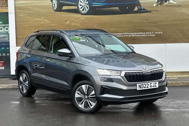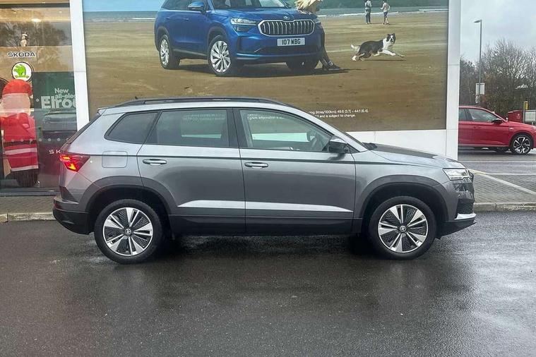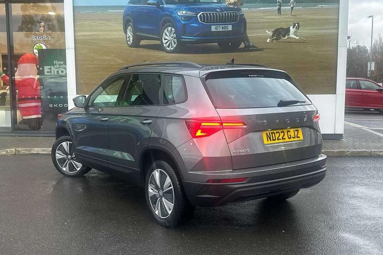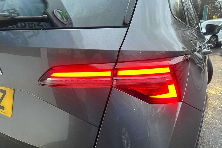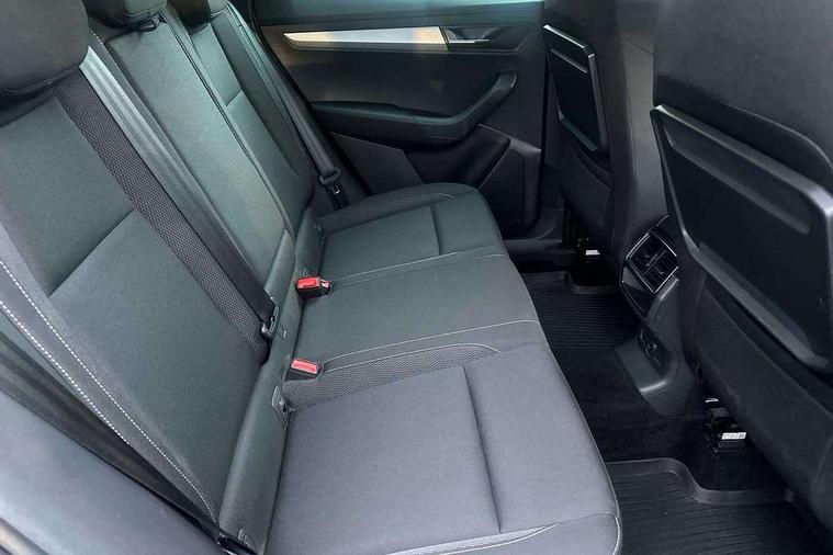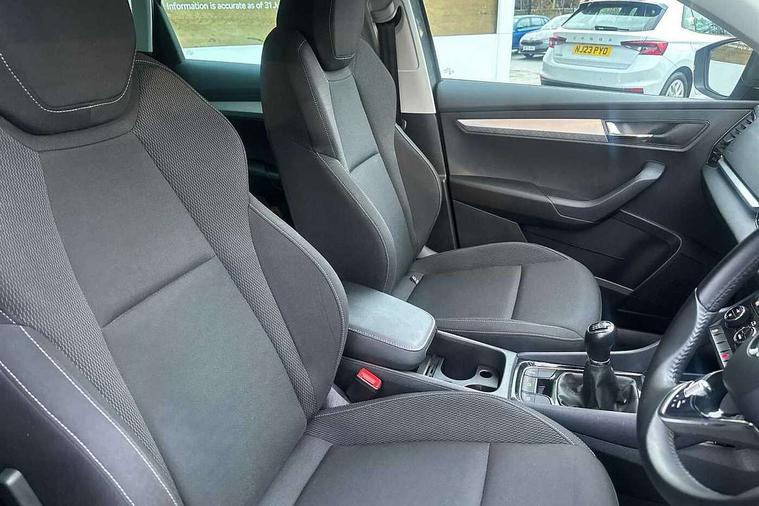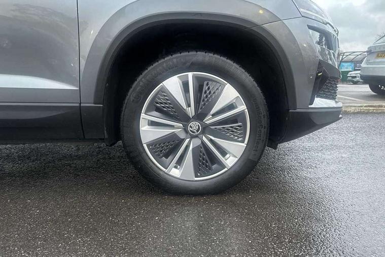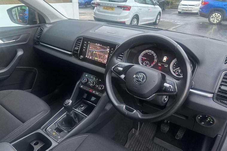 Amundsen satellite navigation with 8" touchscreen display with maps Europe, WLAN and web radio, Care connect, Drive mode selector, Driver fatigue sensor, Electro-mechanical PAS, Emergency services call system, Multifunction colour trip computer, Outside temperature gauge, Service interval indicator, SmartLink wireless for Apple and wired for Android, Start/stop system with regenerative braking, USB C Port x 2 in front centre console, Diesel particulate filter, 8 Speakers, DAB radio with Bluetooth, USB connection, Acoustic glass, Aero front windscreen wipers with intermittent function, Auto dimming rear view mirror with light and rain sensors, Automatic headlight control system, Black electric window control buttons, Body colour door mirrors and handles, Body coloured bumpers, Doors steps in front with Karoq badging, Electric front and rear windows with child proof lock, Electrically adjustable heated folding and auto dimming door mirrors, Front fog lights, Heated rear windscreen, LED daytime running lights, LED Headlights, LED rear lights with high functionality welcome effect and dynamic indicators, Light assistant (coming/leaving home/tunnel light), Privacy glass, Rear side wing doors, Rear wiper, Safety reflectors on front doors, Third brake light, 1.5 litre bottle holders in driver and front passenger door panels, 12V socket in boot, 12v socket in front centre armrest with storage compartment and rear air vents, 2 Folding hooks and nets in boot, 2 Front readings lights for driver and passenger, 2 x Tablet holder, 3 rear height adjustable headrests, 3 seat bench in 2nd row, 4 foldable roof handles with rear coat hooks, Black floor carpet, Chrome inner door handles, Double sided boot floor, Foldable hooks in the boot, Folding tables on the front seat backrests, Front head restraints, Height adjustable driver and passenger seat, Height adjustable front three point seats belts with tensioners, Height/reach adjust steering wheel, Ice scraper, Illuminated and cooled glovebox, Illuminated luggage compartment, Interior noise suppression, Isofix child seat preparation for front passenger seat, Isofix child seat preparation outer rear, Manual lumbar support for front seats, Pearl grey interior ceiling, Pen holder, Pollen filter, Rear boot cover, Rear reading lights, Rubbish bin door, Safety vest holder, Single front passenger seat, Storage box in upper central dashboard closed, Sunvisors with illuminated vanity mirrors, Textile floor mats, Umbrella under passenger seat, Airbags - Front side, head, knee and curtain, Automatic door unlocking in case of crash, Automatic fuel cut off in case of crash, Child locks on rear doors, Driver airbag, Electronic parking brake with auto hold function, Emergency rear braking signal, ESC including ABS, MSR, ASR, EDS, HBA, DSR, RBS, MKB and traction control, Front assist radar scanning of the space in front of the car with automatic braking, Hill hold control, Passenger airbag with switch-off function, Pedestrian monitor, Seatbelt reminder signalisation and pretensioner for all seats, Three point seatbelts rear, Two tone horn, Tyre pressure display, Tyre pressure monitor, Alarm with interior monitoring, back up horn and tilt sensor with safe function, Electronic engine immobiliser, Remote central locking with 2 remote folding keys, Black centre console, Chrome framed air vents, Satin black dashboard, Satin black door trim, Anti-theft wheel bolts protection, Storage on wheel cover,