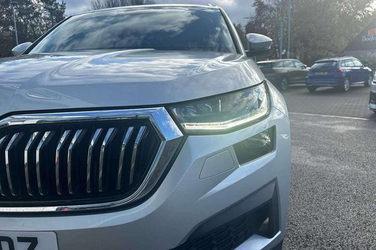 Bluetooth system, E-call, ECO Stop/start function, Exterior temperature indicator, Rear view camera, Smartlink wireless for apple carplay and wired for android auto, Speed limiter, Tailgate unlocking from outside, USB C Port x 2 in front centre console, Wireless charging, 8 Speakers, DAB Digital radio, Aero front windscreen wipers with intermittent function, Aero rear window wiper, Auto dimming rear view mirror, Black wheel arch surrounds, Body colour bumpers, Body colour door mirrors and handles, Chrome front grille, Chrome roof rails with chrome window surround, Daytime running lights, Electric adjustable/heated/folding door mirrors, driver side auto dimming with boarding sports and memory function, Electric front and rear windows, Extended rear spoiler with finlets in gloss black, Front fog lights, Full LED matrix headlights with AFS (adaptive front light system), cornering function and AWL (all weather lighting system), Headlight washers, Heated rear window, Invisible tailpipe, LED rear fog light, LED third brake light in rear spoiler, Light assistant (coming/leaving home/tunnel light), Off-road style lower front bumper element, Privacy glass, Rain and light sensors, Rear LED lights (high functionality) with welcome effect and dynamic indicators, Rear side wing doors, Safety reflectors on front and rear doors, Window control switches with black trim, 12V socket in boot, 2 rails with 2 hooks, 2 seat bench in 3rd row, 3 seat bench in 2nd row, 4 foldable roof handles with rear coat hooks, 60:40 foldable rear seat with sliding adjustment and backrest angle adjustment, Bottle holders in door panel in the 1.5 litre front and 1 litre rear, Cargo storage compartments, Chrome headlight control button, Chrome interior door handles, Coat hooks on B pillar, Covered storage compartment on driver side, Decorative door sills in the front and rear, Front centre armrest with storage compartment, cup holder and 12V socket, Front courtesy lights, Gear shift lever with chrome frame and black gloss insert, Grey stitching in front and rear armrests and door armrests + door inserts, Height adjustable front headrests, Illuminated and cooled glovebox, Illuminated luggage compartment, Isofix child seat fittings in outer rear seats with top tether, Manually adjustable steering column, Net programme in boot (1x horizontal Net, 2x vertical Nets), Overhead glasses storage compartment, Pollen filter, Rear centre armrest with cupholders, Single front passenger seat, Sliding trunk cover, Small Bags on the inner sides of the front backrests, Sunvisors with illuminated vanity mirrors, Three rear height adjustable headrests, Ticket holder on A Pillar, Umbrella in door panel, Variable boot floor, Auto door release and activation of warning lights in the event of an accident, Child locks on rear doors, Driver and front passenger airbag with knee airbag and front passenger airbag deactivation, Electronic parking brake with hill start assist, Emergency rear braking signal, ESC (incl. ABS+MSR+ASR+EDS+HBA+DSR+RBS+MKB), Front assist with autonomous emergency braking, Front side airbags with curtain airbags, Fuel cut off safety device, Height adjustable front 3 point seatbelts + pretensioners, Hill hold control, Rear disc brakes, Safety vest holder in door, Seat belt reminder for all seats, Three point rear seat belts, Two tone horn, Tyre pressure monitor, Alarm with interior monitoring and tilt sensor with safe function, Anti-theft wheel bolts, Immobiliser, Keyless entry and start system (KESSY), Remote central locking with 2 keys, Grey stitching in dashboard, Linear diamonds decorative inserts, Temporary spare wheel (space saver),