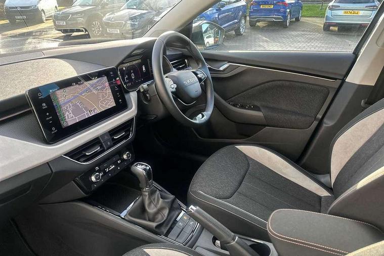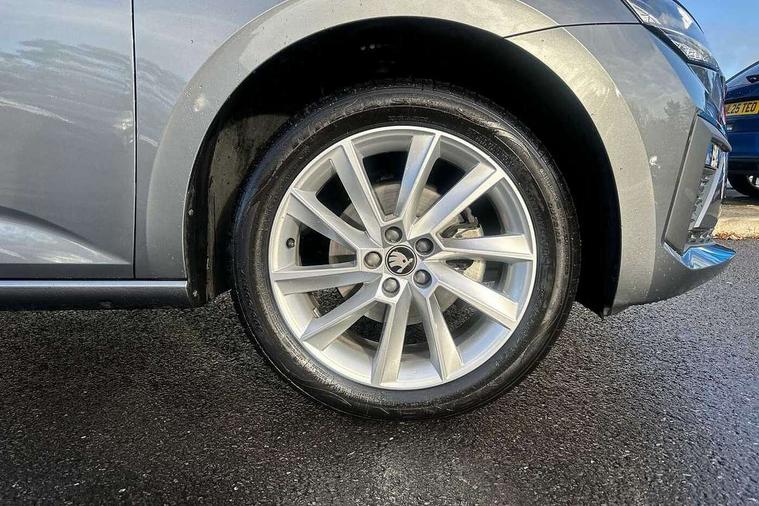 Advanced driver attention and drowsiness monitor, Bluetooth, e-Call (emergency call), Front assist system, PAS, Rear parking sensors, Rear view camera, Speed limiter, Tailgate, Traffic sign recognition, Virtual Cockpit - 10.25" digital display, Voice control system, Wireless smartlink, 4 USB C ports, 8 Speakers, 9.2" Skoda navigation display, DAB radio, Auto dimming rear view mirror, Automatic headlight control with manual coming and leaving home feature, Automatic intermittent wipers, Body colour bumpers, Body colour door mirrors and handles, Chrome moulding around grille, Chrome window frames, Front and rear electric windows, Heated rear window, LED 3rd brake light, LED daytime running lights, LED high beam, LED low beam, Light sensors, Privacy glass, Rear LED fog light, Rear side wing doors, Rear wiper, Tinted windows, Unique dark chrome design logo on alloy wheels, 12V socket in luggage compartment, 3 seat bench in 2nd row, Ambient lighting in white/red, Black / Copper armrest stitching, Cargo elements, Chrome inner door handles, Copper hotstamping, Door inserts in accent black, Driver and passenger sun visors with vanity mirror, Dual zone climate control, Front and rear roof lights, Front centre armrest, Front head restraints, Glasses storage in roof liner, Height adjustable driver seat, Height adjustable passenger seat, Ice scraper, Illuminated glove compartment, Inner circulation control with pollen filter, ISOFIX for front passenger seat, Isofix preparation for back seats, Leather gearknob and handbrake lever, Lodge cloth upholstery, Luggage net under rear parcel shelf, Manual lumbar support for front seats, Net package and top tether hooks in boot space, Pocket on the back of both front seats, incl. mobile phone pockets, Rear centre armrest, Single front passenger seat, Skoda lettering on steering wheel, Textile floor mats, Third rear headrest, Ticket holder, Top tether for front passenger seat, Umbrella in driver's door, Convenience pack without rear camera - Scala, 3x3 point rear seatbelts, ABS, Child locks, Curtain airbags and front side airbags, Disc brakes, Driver and front passenger airbags, ESP, Hill hold control, Manual leather parking brake, One tone horn, Passenger airbag switch off function, Seatbelt reminder for driver and front passenger, Tyre pressure monitoring system, Anti theft alarm system with interior monitoring, backup horn and towing protection, Anti-theft wheel bolts, Remote central locking with 2 remote folding keys, SAFE function for remote central locking, Decorative inserts,