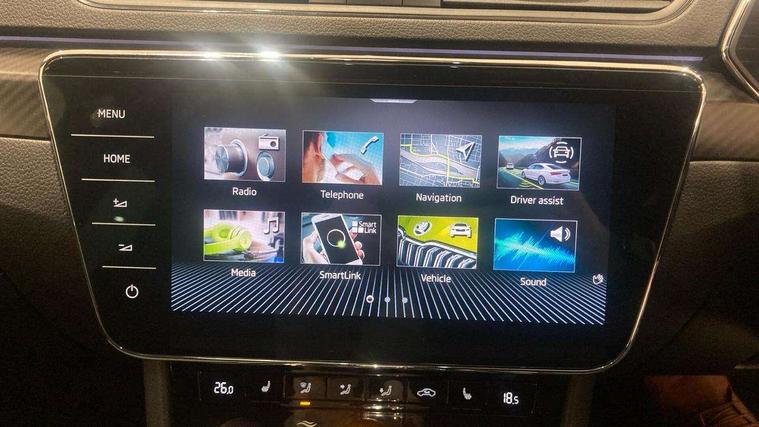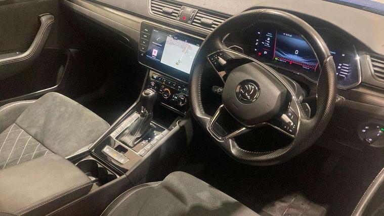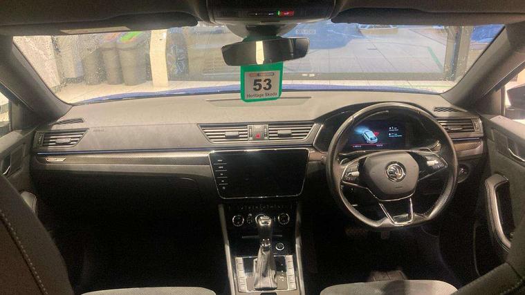 Bluetooth system, CareConnect and Emergency Call, Columbus HDD satellite 3D map navigation with 9.2" colour touch screen, web radio, integrated Wi-Fi, Driver fatigue sensor, Front assist with pedestrian protection, Progressive dynamic steering, Stop/start engine system and energy recovery, Virtual cockpit, Voice control system, Wireless smartlink apple carplay, SmartLink+ android auto, XDS+, 2 USB ports, Bolero radio with 8" touchscreen display, DAB Digital radio, 3rd brake light, Aero front windscreen wipers with intermittent function, Auto dimming rear view mirror, Black rear badge, Body colour door handles, Cornering front fog lights, Electrically adjustable heated and folding door mirrors with memory function, Front and rear electric windows, Full matrix LED headlights with AFS LED DRL integrated with headlight washer LED rear lights(High function), dynamic indicators and lighting animation, Gloss black exterior door mirrors with sports styling including front grill, side strip and window surrounds, Gloss black grille surround with gloss black rib elements, Gloss black roof rails, Gloss black strip between rear lights, Light assistant (coming/leaving home/tunnel light), Privacy glass, Rain sensor, Rear exhaust diffuser styling elements, Rear side wing doors, Rear windscreen wiper, Sportline badging, 12v power point in centre console, 3 seat bench in 2nd row, Black roof headlining, Black textile floor mats, Carbon optic interior elements, Electric auxiliary air heater, Front and rear footwell illumination, Front armrest with storage box, Height adjustable front and rear head restraints, Ice scraper, Illuminated and cooled glovebox, Interior lights with control switches, Isofix child seat fittings on outer rear seats, LED front and rear reading lights, Microsuede/leather upholstery with silver diamond stitching sports seats, One umbrella compartments in driver door with one umbrella in drivers door, Overhead glasses storage compartment, Rear centre armrest with cupholders, Single front passenger seat, Split folding rear seats, Storage compartment with cover in luggage compartment side panels, Ticket holder on A Pillar, LED package plus - Superb, 3 rear seatbelts, 7 airbags - Front, front side, curtain, driver's knee airbag with front passenger deactivation switch, Driver and passenger seatbelts with warning light, Electronic parking brake, ESC including ABS, EBV, MSR, ASR, EDS, HBA, DSR, RBS, CBC, multi-collision brake (MKB) and Auto hold, Hill start assist, Power operated child lock in rear doors, Tyre pressure monitor, Alarm with interior monitoring tilt sensor and back up horn, Electronic engine immobiliser, Keyless entry and start/stop, Remote central locking with SAFE system, Third remote key,