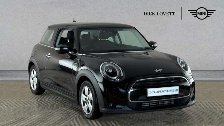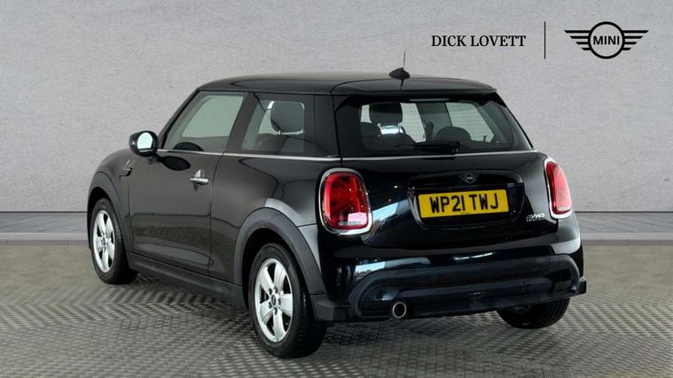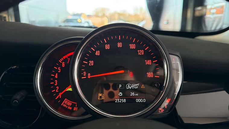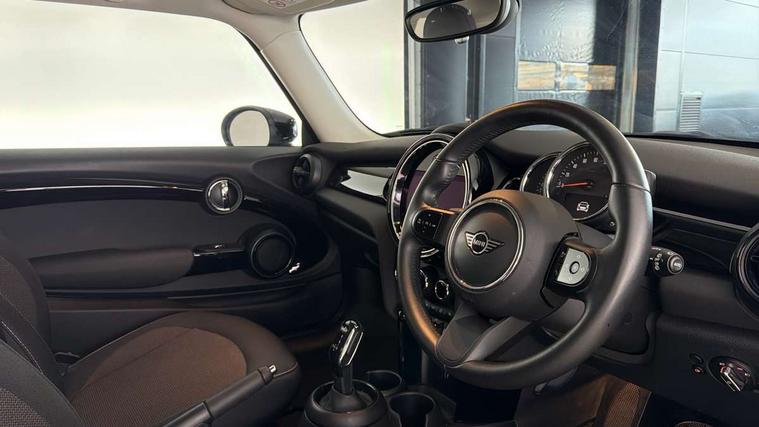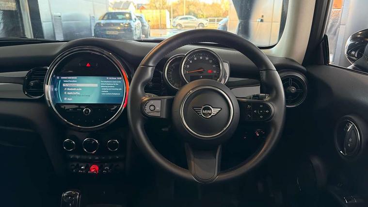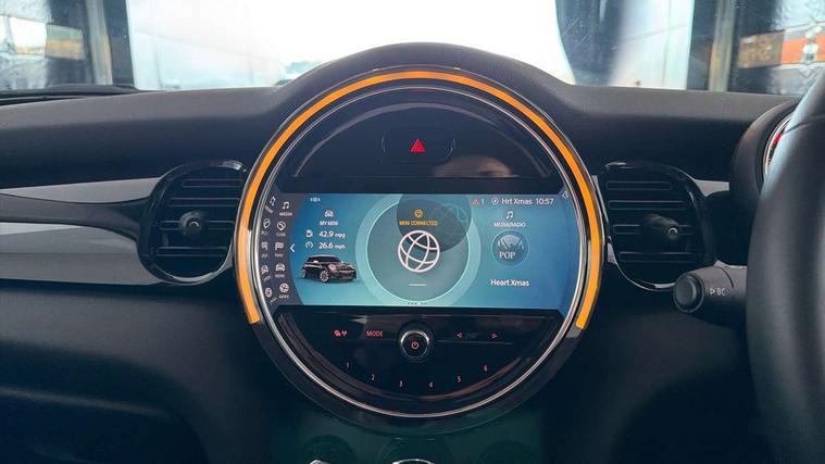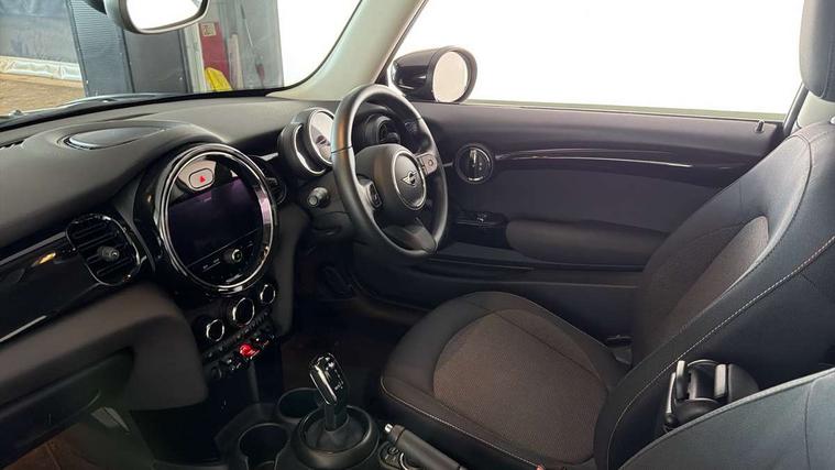 Automatic start/stop function with brake energy recuperation, Compatible mobile phone bluetooth with audio streaming, Cruise control with brake assist, Electro-mechanical speed dependant steering assistance, Flexible car sharing preparation, Instrument cluster, Mini E-call, MINI TeleServices, On board computer, Service interval indicator, Double Vanos system, Fully variable valve control, High precision injection, Performance Control, Steptronic transmission with double clutch, 4 speakers in front door trims and underneath front seats, 8.8" touchscreen with LED ring, FM tuner and DAB digital radio, Automatic headlight activation switch, Body colour fuel filler cap, Chrome border high gloss black slats radiator grille, Dynamic brake lights, Electric front windows, Exhaust tailpipe on left with chrome finisher, Heated rear window, Heated windscreen washer jets, LED headlight with closed ring and daytime driving lights, Metal door sill strips with MINI imprint, Model logo Cooper on right of tailgate, Rain sensor window wipers, Rear fog lights, Rear LED lights with union jack design, Rear window wiper, Side scuttle panel with integrated indicator, Sun/heat protection glass, White indicator lenses, 12V Accessory socket in centre console, 4 lashing eyes in luggage compartment, 60/40 split folding rear seat, Ambient lighting, Carbon black colour line - Knee roll and door armrest, Chrome interior highlights, Cupholders, Front and rear head restraints, Front and rear isofix with front passenger airbag deactivation, Glove compartment, Height and length steering column adjustment, Interior lighting with 12 different colours across the dashboard, underneath door bezel with illuminated laser-engraved design on central display, Leatherette gearshift lever and handbrake gaiters, LED reading lights, vanity mirror lights, front foot well light and spotlight on front seats, Manual air conditioning, Mechanical seat adjustment - forward/back & backrest for front seats and driver seat height adjust, Multifunction steering wheel, Passenger seat height adjuster, Satellite grey headlining including grab handles and clothes hooks, Sport leather steering wheel with speed limiter and audio/communication controls, Storage compartments in doors, Sunvisors with vanity mirrors, Tool kit, Velour floor mats, 3 point seatbelts on all four seats, 6 Airbags - front, side, head and seat belt tensioners, Anti-lock braking system (ABS), DSC - Dynamic Stability Control, Front and rear disc brakes, Single tone fanfare horn, Tyre pressure monitoring system, Alarm system with tilt sensor, monitoring doors, bonnet interior and tailgate, Electronic vehicle immobiliser, Start/stop toggle with keyless go, Piano black interior trim, Tyre repair kit,