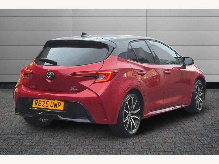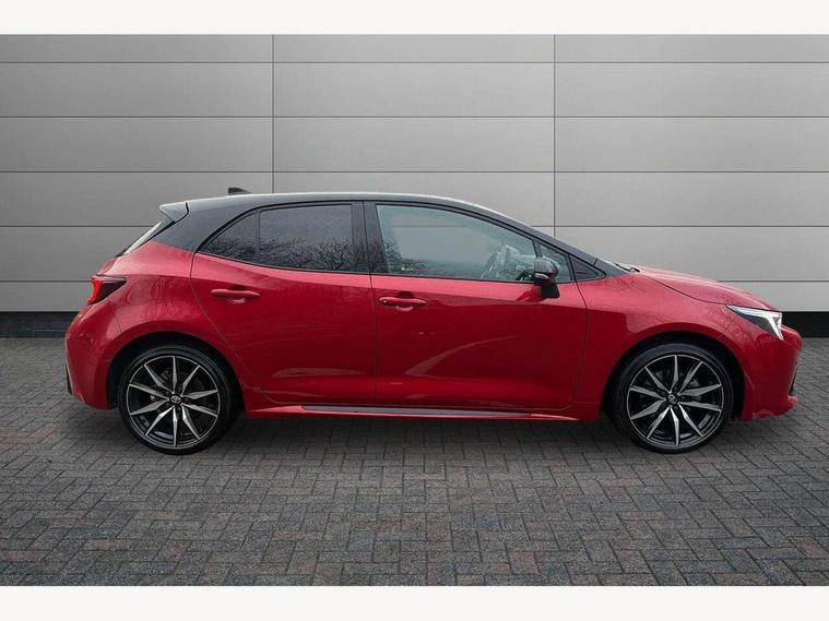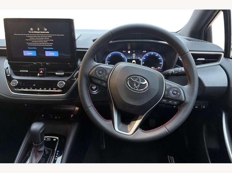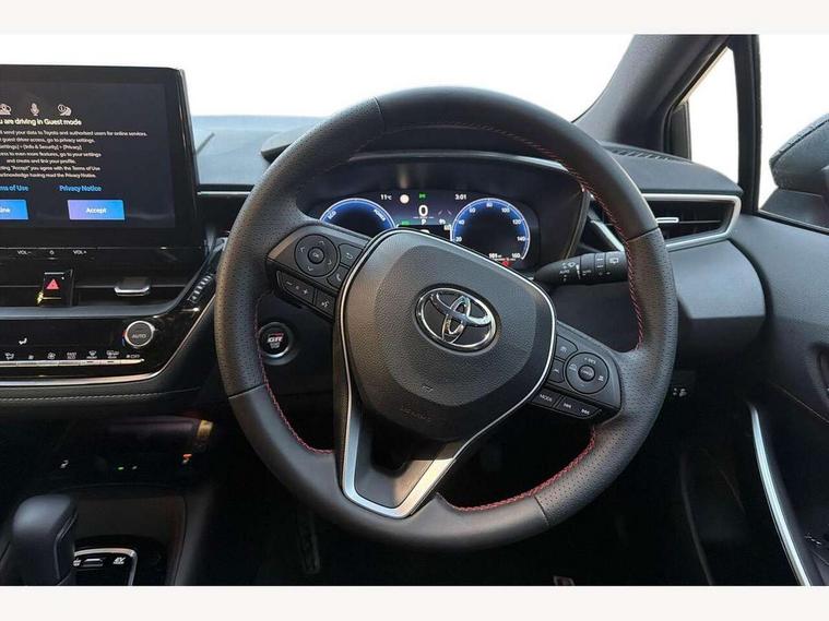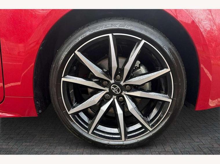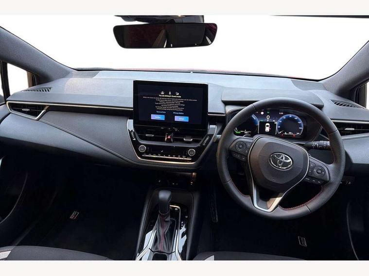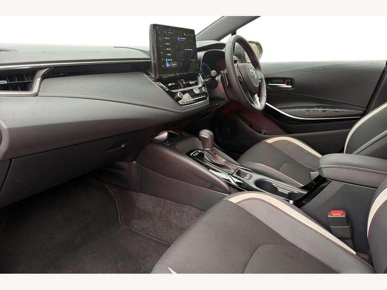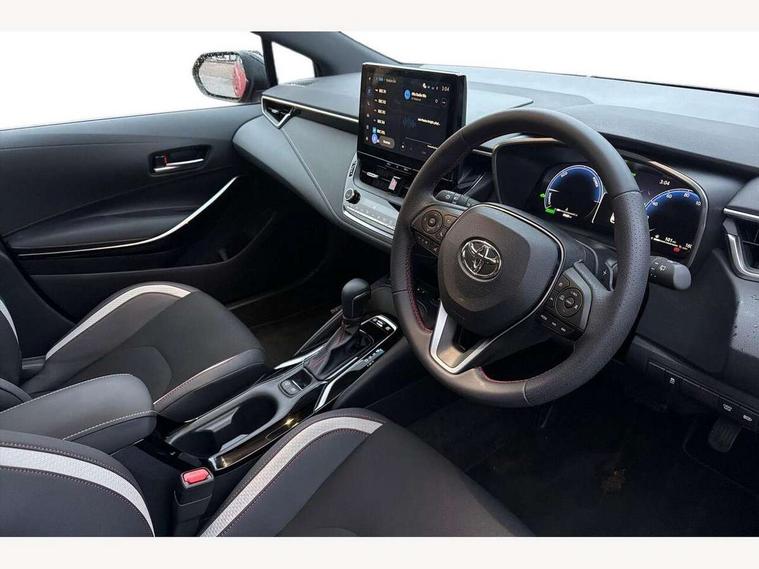 10.5" Multimedia display screen, Bluetooth telephone connectivity, Connected car functionality upgrade, tracker, remote status and e-care, Drive mode select (Eco, Normal), E-call, Electrically assisted power steering, EV drive indicator, Front and rear parking sensors, Full Digital 12.3" TFT Digital Combimeter, Intelligent clearance sonar, Key reminder warning, Lane Departure Alert (LDA) switch on steering wheel, Memory on adjustable speed limiter, MyT connected services, Proactive driving assist (PDA), Reversing camera, Smart entry and push button start with GR Logo, Smartphone integration with Apple CarPlay and wired android auto, Tailgate, Toyota remote services, Toyota smart connect navigation, Wireless charger, Gasoline particulate filter, Vehicle Stability Control (VSC), 6 speakers, AM/FM radio, DAB Digital radio, Front USB-C in centre console, Front USB-C in dashboard, Smart voice assist/ Voice recognition, USB and Aux in connectors + 12V front outlet, Anti-jam protection on power windows, Auto up and down function on all power windows, Automatic folding mirrors, Automatic headlights with high beam assist, Black centre and side air vents, Black toyota logo in front, Body coloured bumpers, Body coloured door mirrors, Body coloured outside door handles, Dark chrome lower grille, Electrochromatic mirror, Follow me home headlights, GR Sport dark chrome front mesh grille and black rear grille, GR Sport exclusive under guard, GR sport scuff plates, LED daytime running lights, LED dual beam projector headlights, LED front fog lights, LED High mounted stop light, LED rear combi lights with LED lightguide, Manual headlight levelling system, New grille pattern, Noise reduction layer on windscreen, Piano black diffuser, Power adjustable heated door mirrors, Power front windows, Power rear windows, Privacy glass with UV filter, Rain sensing wipers, Rear side wing doors, Rear window defogger, Rear window wiper, Reverse tilting door mirrors, Rocker and door lower moulding, Roof spoiler, Satin chrome insert on front air vents, Satin chrome insert on front door assist grips, Satin silver front spoiler, Shark fin antenna, Tailgate release with push button, Time adjustment on intermittent wiper, Turning signal integrated indicators in door mirrors, Unique lower skirt, Unique side rocker with black insert, UV-filter on driver and passenger windows, 2 Shopping bag hooks in luggage compartment, 3 rear headrests, 3 seat bench in 2nd row, 3 spoke steering wheel with satin insert and red stitching, 4 tie down hooks in luggage compartment, 60/40 split folding rear seat, Adaptive cruise control (ACC) switch on steering wheel, Adjustable speed limiter switch on steering wheel, Audio, multimedia and telephone switches on steering wheel, Black armrest on centre console box, Black gear shift console, Boot light, Boot underfloor storage, Centre room light, Driver and front passenger personal light, Driver and passenger assist grip, Driver and passenger seatback pockets, Driver and passenger sun visor with mirror and light, Dual zone automatic air conditioning with ECO mode switch, Electric lumbar support for passenger, Fabric/synthetic leather upholstery, Front and rear cup and bottle holders, Front door pockets, Front head restraints, Front passenger seat, Front sliding synthetic leather armrest, Gear knob, GR Sports seats with partial leather bolsters, Heated front seats, Illuminated entry system in room lamp, ISOFIX seat fixing (2 fixings on rear outer seats), Manual height adjustable for driver and front passenger seat, Manually tilt with sliding driver and front passenger seat, Nanoe-X air purifier, Paddle shifts, Parcel shelf, Pollen filter, Power adjustable lumbar support on driver seat, Power window switches with satin chrome inserts, Rear armrest with 2 cupholders, Rear passenger coat hooks (2), Red stitching on gear shift, Remote air conditioning, Satin chrome inside door handles, Satin chrome surround on speedometer, Sliding armrest on centre console box, Slow opening glovebox with lights, Textile floor mats, Tilt/telescopic steering column, Voice recognition switch on steering wheel, Whiplash Injury Lessening (WIL) feature (active headrest) for seats, White ambient lighting on open tray and front cup holder, Toyota safety sense 3 pack - Corolla, 3x3 point rear seatbelts, Adjustable driver and front passenger seat belt extender to top anchor point, Anti lock braking system + Electronic brake force distribution, Brake assist function, Child locks on rear doors, Downhill Assist Control (DAC), Electronic parking brake, Emergency brake light signal (EBS), Front passenger airbag on/off switch, Front seatbelt reminder, HAC - Hill start assist control, Rear seat belt reminder, Seatbelt pretensioners and force limiters, Supplemental restraint system (SRS) 7 airbags - dual driver, dual side curtain, side impact and driver knee airbags, Traction control, Tyre pressure warning system, Acoustic vehicle alert system (AVAS), Alarm with motion sensor and immobilizer, Power passenger window lock, Remote central locking + deadlocks, GR Sport interior and exterior styling, Satin chrome dash trim, Soft touch texture on upper dashboard, Stitching on lower dashboard, 18" 10 spoke black machined face alloy wheels, Tyre repair kit, Unique wheel finish with red wheel cap,