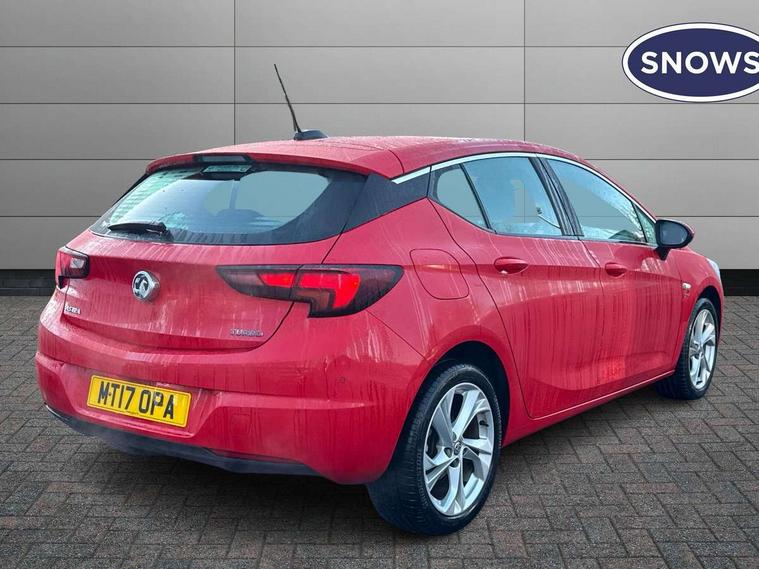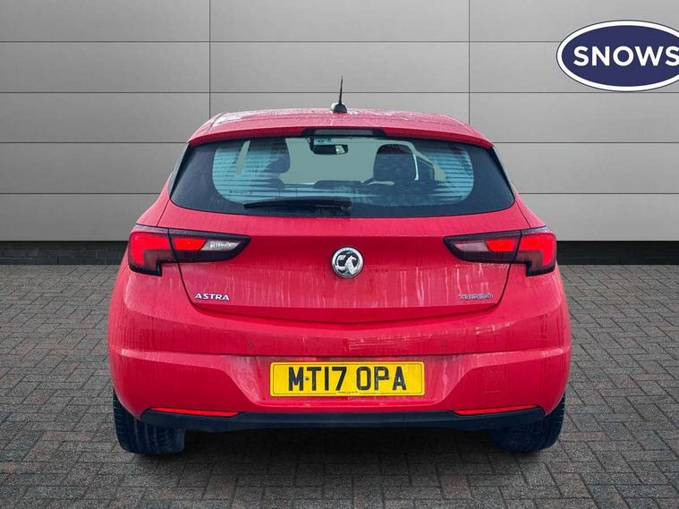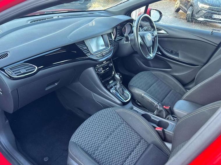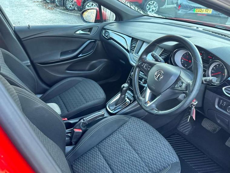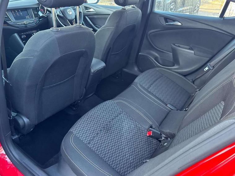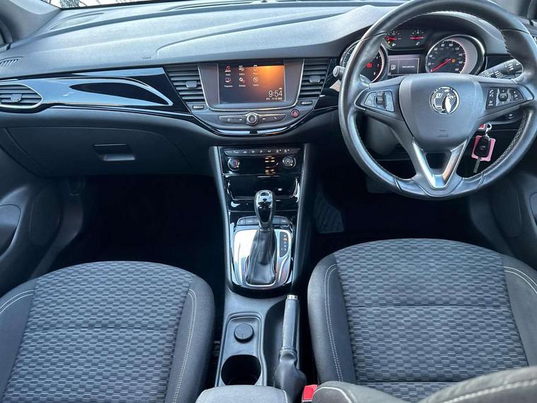 Apple car play/Android Auto, Cruise control + speed limiter, Electric speed sensitive power steering, External temperature gauge, Low fuel level warning light, Mobile App interface, Multi function trip computer, Rev counter, Service indicator, Sports switch, Vauxhall OnStar emergency assistance, Voice control system, 6 speakers, Bluetooth connectivity including audio streaming, DAB Digital radio, R4 IntelliLink with 7" touch screen, Steering wheel mounted audio controls, USB port, Adaptive brake lights, Body colour door handles, Body colour rear roof spoiler, Body coloured door mirrors, Chrome effect upper window trim, Chrome front grille, Chrome headlight surround, Door to door illumination, Electrically adjustable and heated door mirrors, Front fog lamps, Gloss black finish B pillar, Gloss black finish C pillar, Hazard warning lamps, Heated rear window, Intermittent rear wash/wipe, LED daytime running lights, One touch electric front/rear windows, Solar glass windscreen, Tinted windscreen, Trailer Stability Programme, 12V power point front, 3 spoke leather covered steering wheel, 4 Lashing eyes in boot, 60/40 split rear seats, Adjustable front armrest, Centre console with covered storage and cupholders, Chrome interior door handles, Driver's storage box, Driver/passenger sunvisors, Formula cloth upholstery, Front and rear door pockets, Front reading lights, Front red LED ambient lighting, Front seat back storage pockets, Front/rear courtesy lights, Glovebox, Height adjustable front/rear head restraints, Illuminated load area, Illuminated vanity mirrors, Isofix system on outer rear seats, Leather steering wheel, Luggage compartment cover, Reach + rake adjustable steering column, Rear reading lights, Driving assistance pack 1 - Astra, 3x3 point rear seatbelts, ABS, Child locks on rear doors, Driver/Front Passenger airbags, ESP, Front and rear curtain airbags, Front seat side impact airbags, Height adjustable front seatbelts, Hill start assist, Passenger airbag deactivate switch, Pedal release system, Seatbelt pretensioners on front/outer rear seats, Seatbelt warning, Tyre pressure monitoring system, Deadlock, Electronic engine immobiliser, Locking wheel bolts, Remote central locking, Remote ultrasonic alarm system,
