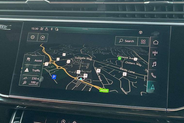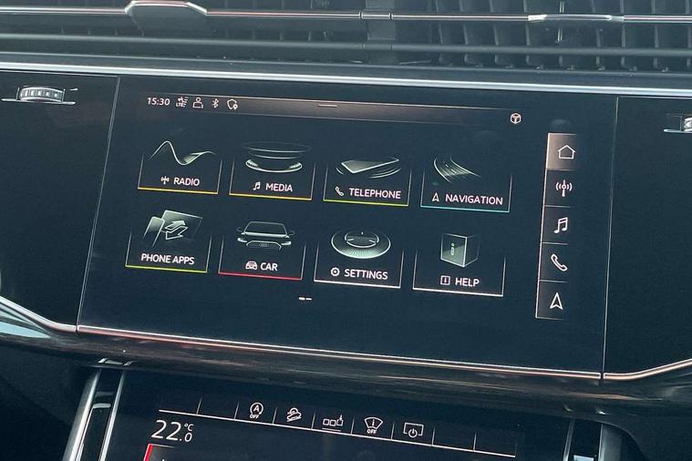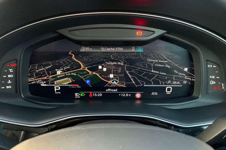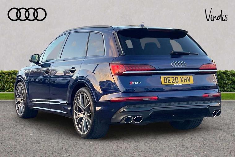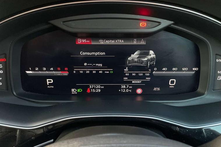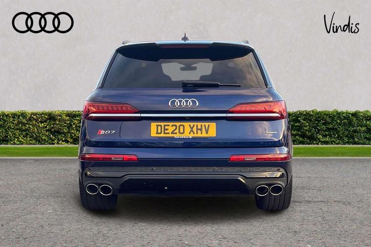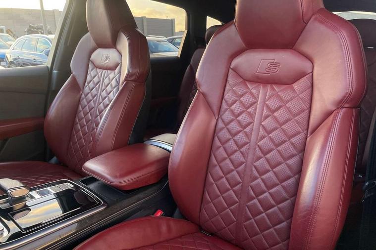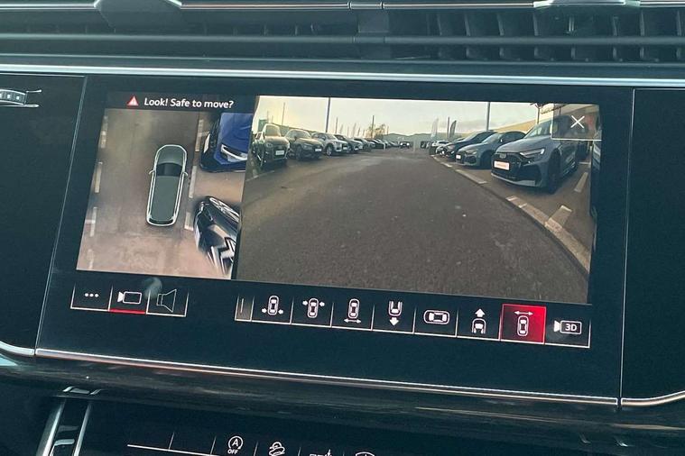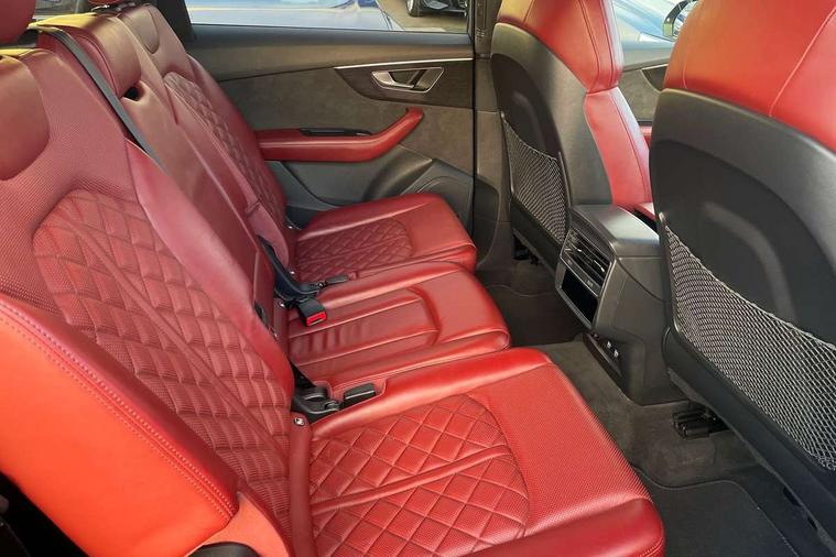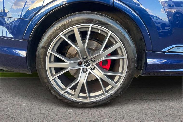 All wheel steering, Audi connect safety and service (e-call), Audi drive select (Auto, Comfort, Dynamic, Efficiency, Individual, Off-road and All road), Audi phone box with wireless charging, Audi smartphone interface includes wireless Apple carplay/Android Auto, Audi virtual cockpit - 12.3" high-resolution LCD display with fully customisable instrument cluster, Camera based traffic sign recognition, Head up Display, MMI navigation plus with MMI touch screens includes 10.1" and 8.6" screens with haptic feedback, Natural voice recognition, Parking system plus - front + rear sensors, Power assist steering, Power door closure, Power operated tailgate, Start/stop system, 48V Mild hybrid technology, 85 litre fuel tank, Quattro all wheel drive with self locking centre differential, S specific adaptive air sport suspension, Audi music interface in rear - 2 USB ports with charger and data functions in rear, DAB digital radio module, Audi HD matrix LED headlights with Audi laser light + dynamic front and rear indicators, Auto dimming frameless rear view mirror, Black roof rails, Electric panoramic glass sunroof, Electrically adj heated/folding + automatically dimming exterior mirrors with memory + automatic kerb side function for passenger side exterior mirror, Headlight washers, Heat insulating glass in windshield, LED daytime running lights, LED rear tail lights, Privacy glass - dark tinted rear and rear side windows from B-pillar backwards, S front and rear bumpers, S specific rear bumper with 4 exhaust pipes, 3 spoke flat bottomed high multi-function leather sport steering wheel with gearshift paddles, 4 zone deluxe automatic climate control, 7 seat layout with ISOFIX points for the front passenger seat and rear passenger seat, Black alcantara headlining includes double sun visors with extendable driver and front passenger side illuminated vanity mirrors, Comfort front centre armrest, Electric height/reach adjustable steering column with memory + auto easy-entry and exit function, Electrically adjustable front seats with memory function for driver and front passenger seat, Folding rear seats, Front head restraints, Front/rear floor mats, Heated front and outer rear seats for second row, LED interior ambient lighting, Rear head restraints, Seat ventilation and massage function in the front, Stainless steel pedals, Tool kit, Valcona leather upholstery with front super sport seat + S embossed, electric adj front seats/backrest bolsters, lumbar support, memory functionality, City assist pack - Q7, Comfort and sound pack with Bose premium sound system - Q7, Extended leather pack with upper and lower interior elements in leather - Q7, Extended LED interior multi coloured lighting pack - Q7, Titanium black styling pack - Q7, Tour pack with Adaptive cruise assist - Q7, 3 point seatbelts on all rear seats, Audi pre sense front, Driver and front passenger, front side and curtain airbags, Electromechanical parking brake, Electronic Stabilisation Control (ESC) including ABS, ASR and EDL, Extended pedestrian protection measures, Hill hold assist, Seatbelt monitoring, Tyre pressure loss indicator, Warning triangle and first aid kit, Anti theft alarm, Anti-theft wheel bolts and wheel loosening detection, Keyless go with remote central locking, Polished oak trim with grey finished, Tyre repair kit,
