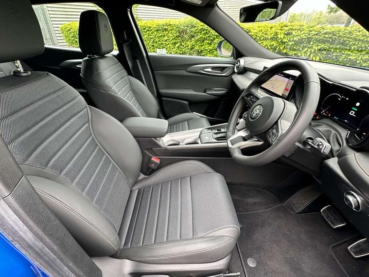 Alfa connect box, Alfa connect services, Alfa dna with esc off (3 modes + esc off), Apple car play/Android Auto, Drowsy driver detection, Forward collision warning, Full tft instrument cluster - 12.3", Intelligent adaptive cruise control, Intelligent speed assist, Lane support system, PAS, Passive / keyless entry (front doors), Power liftgate, Qiuick guide in english, Speed limiting device, Traffic sign recognition (w/navigation), Warranty handbook uk, Wireless charging pad, 10.25" radio touchscreen, usb, bluetooth audio streaming, voice controls with navigation, DAB digital audio broadcast, 4 Interior puddle lights, Auto headlamps with dusk sensor, Auto high beam, Auto wipers with rain sensor, Auto-dimming rear internal mirror, Black painted mirror caps, Black rubber window surround, Body colour door handles, Body colour rear spoiler, Chrome finishing tonale badge, Chrome Ti badge, Electric exterior mirrors (heated), Electrical-folding exterior mirrors, Front and rear power windows with auto up/down and antipinch, Full LED rear lamps, Gloss black painted body kit w/ satin side and front inserts and skidplate, LED blade stop light, LED cornering projector light, LED license plate light, Matrix full led headlamps with adaptive system and fog light function, Rear side wing doors, Rear wiper, Roof, hood and exterior mirrors protection, Shark fin antenna, Ti badge on fenders, U shaped LED blades DRL signature and dynamic turn indicator, V front bezel satin chrome, Welcome/leaving lighting, 12v plugs in the front and in trunk, 4 Ways electric driver only lumbar adjustment, 60/40 Rear seats with ski pass, Black ceiling and pillars, Bottle storage 1l on door panel, Dual zone air conditioning with aqs (with rear airvents), Front armrest (integrated in the central tunnel), Front headrests, Front usb plug type a + c (charge + data), Front/rear floor mats, Mono colour ambient light (included in domelamp), Overhead console with domelamp led and switches, PU Dasboard with beige stitching, Rear air vents, Rear central armrest and 3 headrests, Rear usb plug type a + c (charge), Seat belt height adjustment, Single front passenger seat, Softskin ip dashboard and upper door panels, Sport leather steering wheel with start button, Sunvisor mirror with light (driver and passenger), 6 airbags, Autonomous emergency braking inter-urban, Electric parking brake with autohold, Emergency braking pedestrian and vulnerable road users - interurban, Manual rear child locks, Rear seatbelt reminder alert, Three 3 point rear seatbelts, Tyre pressure monitoring system (TPMS), Capless fuel filler, Keyless Go, Vehicle theft alarm with hood protection and intrusion sensor (thatcham), Coloured alfa romeo logo centre wheel caps, Fix and go puncture repair kit, Summer tires,