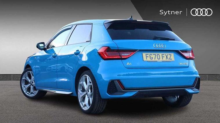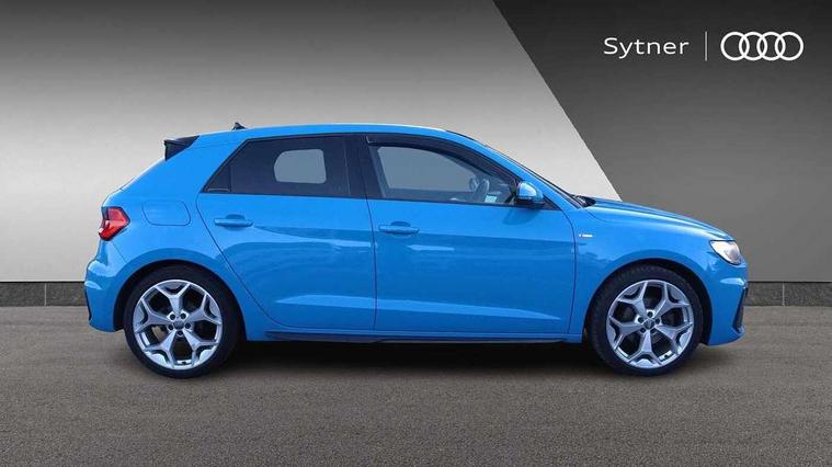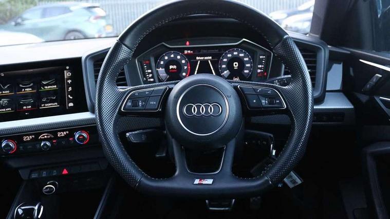 10.25" Digital instrument cluster display classis style instrument dials + speed, odometer, time, outside temperature, telephone menu + fuel level warning, Audi connect safety emergency and service including E-call, Audi drive select - power steering assistance + engine + gear shift 3 preset modes (auto, dynamic, efficiency and an Individual mode), Audi smartphone interface with connect compatible smartphone via USB directly MMI display + Nav, music, third party apps controlled via MMI controller, Automatic start/stop system, Bluetooth interface, Cruise control, Driver's information system, Electromechanical power steering, Lane departure warning system, Rear parking sensor, Service interval indicator, Speed limiter, Voice control system, Washer fluid level indicator, Sports suspension, 1 x SDXC card reader, 1 x USB type C and 1 USB type A charging points, DAB Digital radio, MMI radio plus with 8.8" colour MMI display screen and MMI touch, Auto dimming rear view mirror, Body coloured door mirrors, Door sills with aluminium inlays and S Line logo, Electric front and rear windows, Electrically adjustable, heated, folding door mirrors with integrated LED side indicator, Front side air inlets in grained matt black and C frame in titanium black, Heat insulating glass windscreen and side windows, Heated rear windscreen, LED headlights with LED rear lights + dynamic rear indicators + headlight adjustment and high beam, turning light + LED daytime running lights, Radiator grille and rear diffuser in matt titanium black, Radiator protective grille frame in matt aluminium silver, Rain and light sensors, Rear fog lights, Rear wiper, S line badges on front wings, Side front spoiler lips in grained matt black, 12V socket in centre console with two cup holders, 3 rear seats with headrests, 40:60 Split folding rear seat or folded fully, Black cloth headlining, Driver and passenger seat with manual height adjust with forward and backwards adjustment, Front and rear black floor mats with contrast stitching in fine silver, Front head restraints, Height and reach adjustable steering wheel, ISOFIX child seat mounting for front passenger and outer rear seats including top tether attachment point of outer rear seats, Leather gear knob with aluminium trim, Luggage compartment light with front and rear reading lights, Manually adjustable lumbar support in front seats, Stainless steel pedals, LED interior lighting pack - A1, Luggage compartment pack - A1, S line exterior styling pack - A1 Sportback, 3x3 point rear seatbelts, Audi pre-sense front with pedestrain and cyclist recognition, Brake assist function, Driver and front passenger airbag with front side and head airbags, Electronic Stability Control including ABS, EBD, ASR and EDL, Front and rear seatbelt reminder, Front passenger airbag deactivation switch, Hill hold assist, Seatbelt height adjustment for front seats, Seatbelt monitoring, Tyre pressure warning light, Warning triangle and first aid kit, Anti theft alarm, Anti theft wheel bolts and loose wheel warning, Immobiliser, Remote central locking with 2 foldaway keys, Aluminium trim for control switches, air vents and digital instrument cluster, Silver grey inlays polygon structure in diamond paint finish, Structured grey accent areas including air vents, door handle recesses and centre console in quartz paint finish,