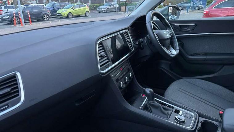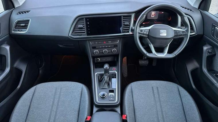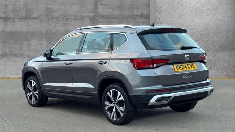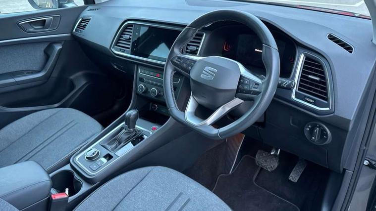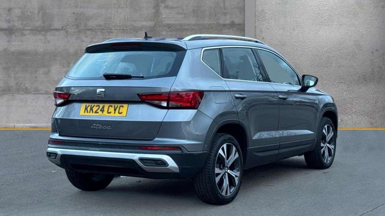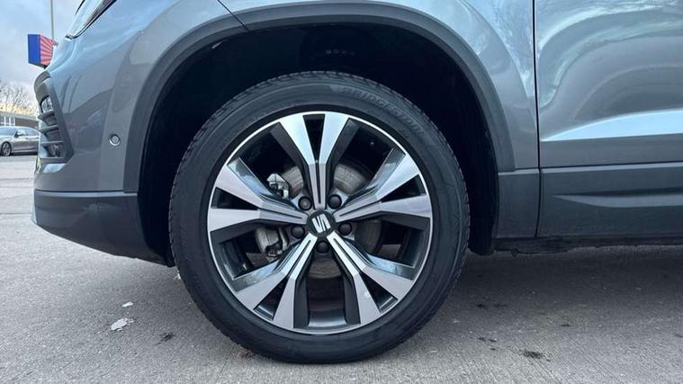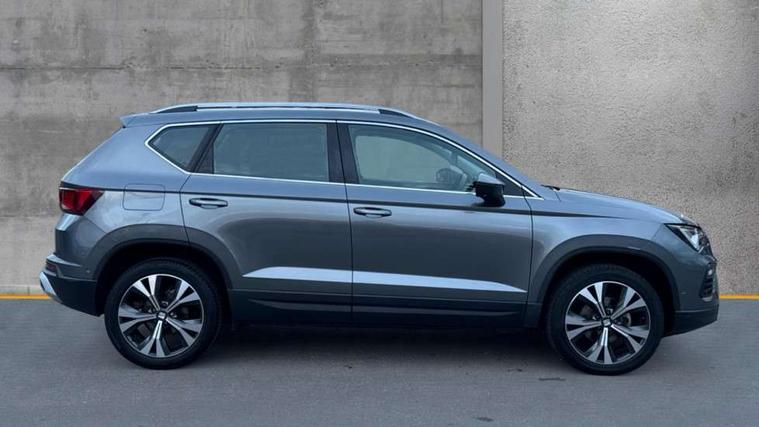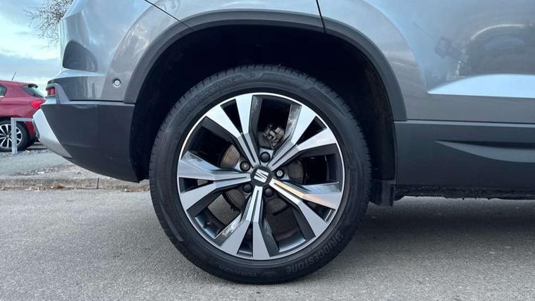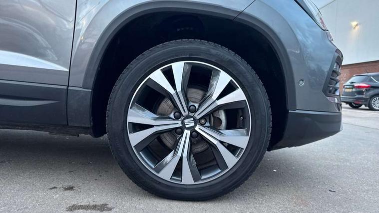 8" Digital cockpit, Colour multi-function on board computer display, Cruise control system with speed limiter, E-call, Outside temperature gauge, PAS, SEAT drive profile with driving experience button - Normal, Sport, Eco and Individual mode, gearshift, steering and throttle response, Self parking functionality (includes front and rear parking sensors), Start/stop system, Tailgate, Trip computer, wired and wireless full link smartphone integration, Wireless phone charger, Steering wheel mounted audio/phone controls, Black wheel arch surrounds, Body colour bumpers, Chrome front grille frame, Chrome roof rails, Chrome side window trim, Daytime running lights, Door mirrors with welcome light silhouette, Dynamic headlight range control with self adjusting whilst driving, Electric adjustable/heated/folding door mirrors, Front and rear electric windows, Full LED headlamps with lens and LED front fog lamps with cornering function, LED 3rd brake light, LED rear tail lights, Rear exhaust tailpipe, Rear fog lights, Rear side wing doors, Rear wash/wipe, Variable front intermittent wipers, 12V socket in front, 3 seat bench in 2nd row, 60/40 split folding rear seat, Cloth upholstery with front comfort seats, Drawer under right front seat, Dual zone climate control, Front and rear head restraints, Front centre armrest, Front seat back storage pockets, Height adjustable driver and passenger seat with lumbar adjustment, ISOFIX points in outer rear seats with top tether anchorage points, Leather sports steering wheel and gear knob, Rear armrest and easy back seat release mechanism from boot, Single front passenger seat, Steering wheel mounted gearshift paddles, Convenience pack - Ateca, Interior lighting pack - Ateca, Navigation system pack with DAB - Ateca, Safety and driving pack with attention and drowsiness assist - Ateca, 3x3 point rear seatbelts, ABS, Traction control system (TCS), Electronic stability control (ESC) and Electronic differential lock system (XDS), Airbags - Driver and front passenger airbag with deactivation, front side, two curtain and driver's knee airbags, Electric parking brake with auto hold function, Front and rear seatbelt reminder, Front assist with autonomous emergency braking, Hill hold control, Manual rear child locks, Single tone horn, Tiredness recognition system, Tyre pressure monitoring system, Alarm, Keyless entry, Locking wheel bolts, Remote central locking, Chrome interior detailing, 18" Performance machined alloy wheels 36/2 in nuclear grey,