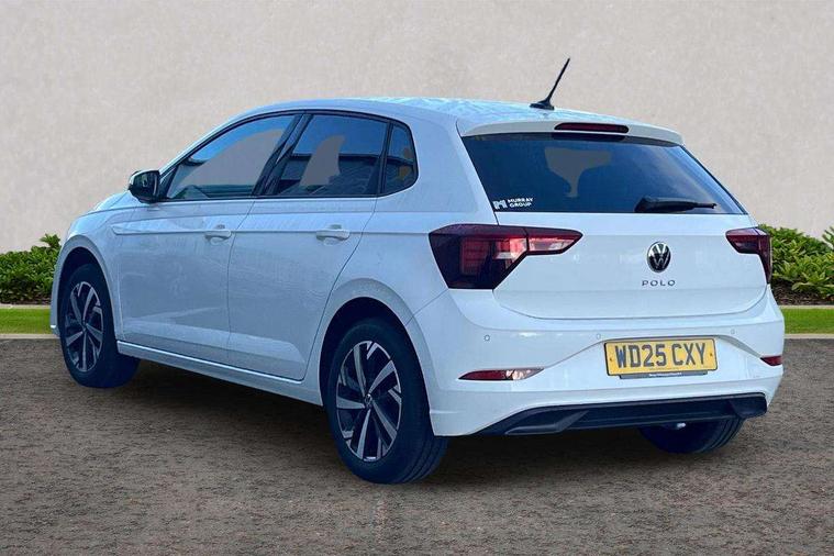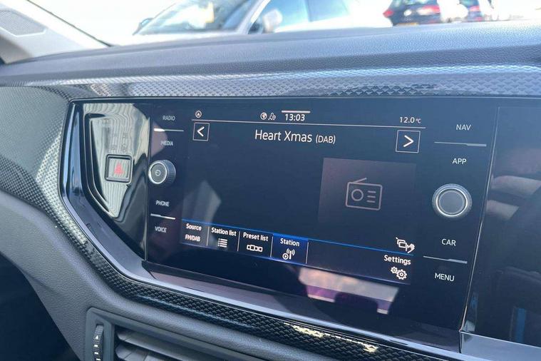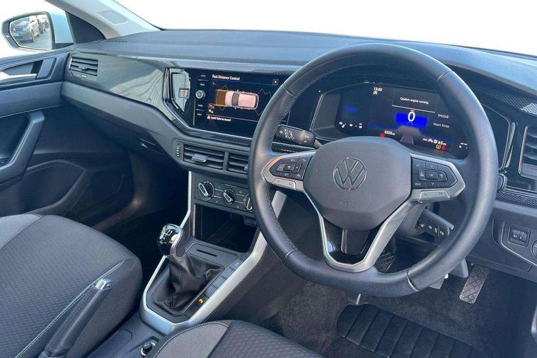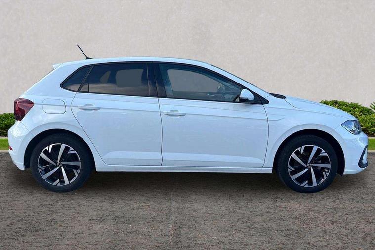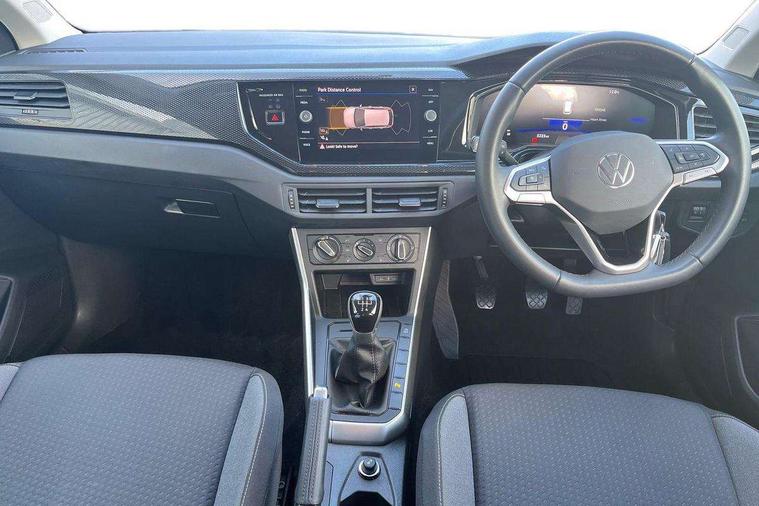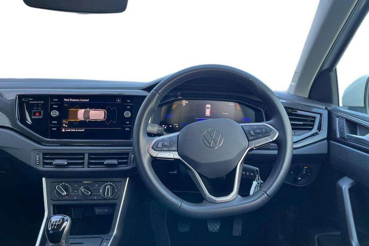 Adaptive cruise control without follow-to-stop and speed limiter, Advanced driver attention and drowsiness monitor, Bluetooth mobile phone interface, Dynamic road sign display, Emergency call service, Multifunction front facing camera for distance control, Park distance control, Power assisted speed sensitive steering, Preparation for navigation system with media and internet package, Preparation for We connect and We connect plus, Rear view camera, Speedo and rev counter, electronic odometer, trip, service interval display and exterior temperature gauge, Standard rear axle, Travel Assist - Lane keeping system and traffic jam assist, Travel assist including emergency assist, Trip computer, Warning signal and warning light for front and rear seatbelts not fastened, Washer fluid level indicator, Wireless app connect, Front wheel drive, Rear shock absorpion, Start-stop system with battery regeneration (recuperation - energy recovery during braking), DAB Digital radio, Diversity antenna for FM reception, Front and rear 6 speakers, Automatic dimming interior rear view mirror, Automatic headlight control with LED separate daytime running lights with coming/leaving home function, Body colour bumpers with chrome inserts, Body colour door handles, Body colour door mirrors, Electric front windows, Engine badge deletion, Headlight range adjustment, Heat insulating and laminated safety glass windshield, LED Headlights, LED rear combination lamps, Power folding adjustable/heated exterior mirrors and front passenger exterior mirror lowering function, Rain sensor, Rear electric windows, Rear fog light, Rear side wing doors, Rear tinted glass from B-pillar backwards approx 65% tinted, Rear windscreen washer and wiper with interval delay, Third brake light, 12V power socket in centre console, 2 front and 2 rear reading lights with switch off delay and dimmer, 2 USB-C ports in the front, 2 USB-C charging sockets on the center console in the rear, 3 rear head restraints, 60/40 split folding rear seat and rear seat bench not split, Ceramique roof lining, Chrome plated radiator grille inserts, air vent surrounds and light switch surrounds, Door and side trim panel, Driver and front passenger seat height adjustment, Driver/passenger sunvisors with illuminated vanity mirrors, Front centre armrest, Front seat backrest storage pockets, Front standard seats, Handbrake lever handle in leather, Hartley/Thomas cloth upholstery, Headliner in recycled material, Isofix child seat preparation easy-fit (for two outer rear seats, and front passenger seat) compatible with I-size, Leather trimmed gear knob, Luggage compartment cover, Luggage compartment lighting, Removable luggage compartment floor, Single front passenger seat, Standard climatic zones, Standard pedal cluster, Three spoke leather wrapped multifunction steering wheel, Light and vision pack - Polo, 3 point height adj front seatbelts + pretensioners, 3 point seat belt for centre rear seat, 3 point seatbelts, outer rear with ECE lable, ABS, Driver and front passenger airbag with front passenger airbag deactivation, Drivers and front passengers safety optimised head restraints, ESC (Electronic stability control) + EDL (Electronic Differntial lock) and ASR (Traction control), Extended and predictive pedestrian/ cyclist protection, Front assist with autonomous emergency braking (for Adaptive Cruise Control ACC up to 130 mph), Front curtain and side airbags with center airbag, Front disc brakes, Hill hold control, Manual child lock in rear doors, Rear drum brakes, Single tone horn, Tyre pressure loss indicator, Alarm with interior protection, Anti-theft alarm system with interior monitoring, backup horn, and towing protection, Anti-theft wheel bolts, Electronic engine immobiliser, Lava stone black gloss/matt decorative inserts in dash and front door panels, 16" Torsby alloy wheels, Low rolling resistance tyres,