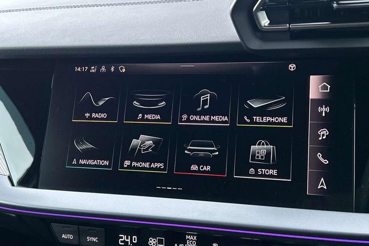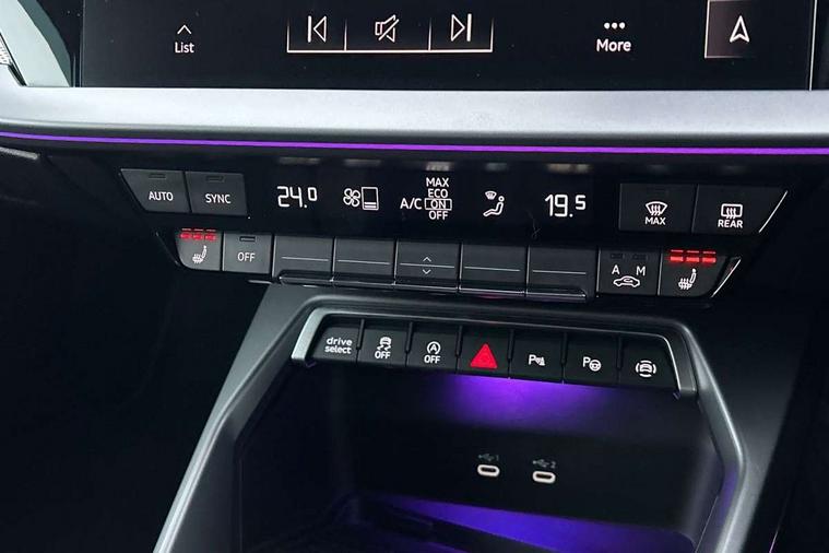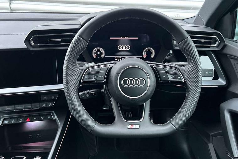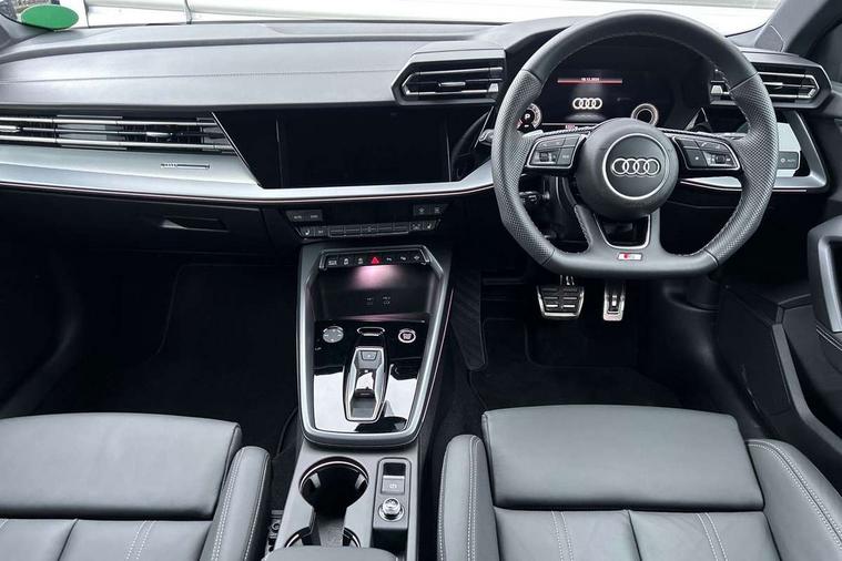 Adjustable speed limiter, Audi drive select, Audi smartphone interface with app store includes wireless Apple carplay, Android auto and Amazon alexa integration, Audi virtual cockpit plus - 12.3" full HD resolution dynamic digital instrument cluster, Automatic start/stop system with recuperation, Bluetooth interface, Camera based traffic sign recognition, Collision avoidance assistant, Cruise control, Distraction and Fatigue warning, e-Call (emergency call), Electromechanical power speed sensitive steering, Lane departure warning system, MMI Navigation Plus with high resolution 10.1" colour touch screen display, Park Assist with parking system Plus, Service indicator, Trip computer, Voice control system with natural language interaction, Sports suspension, Audi Phonebox light with wireless charging, Audi sound system - 10 loudspeakers including centre loudspeaker and subwoofer, DAB Digital radio, USB ports with charging function in the rear, Acoustic glass windscreen, Aluminium window trim, Auto dimming frameless rear view mirror, Body colour exterior mirrors, Chrome exhaust tailpipes, Electrically adjustable/heated/folding/auto dimming door mirrors with integrated LED indications + kerb view function for passenger side, Exterior model badging, Front and rear side air inlets in grained matt black with dark liquid chrome frame, Front electric windows, Front radiator grill in high gloss dark chrome, Heat insulating glass windscreen, Illuminated door sills with aluminium inserts at the front with S logo, LED 3rd brake light, LED daytime running lights, LED headlights with LED rear lights and dynamic rear indicators, Light and rain sensors, Privacy glass - dark tinted rear window, rear door and side windows, Rear boot, Rear diffuser and grill in grained matt black with inlay in dark liquid chrome, Rear electric windows, Rear side wing doors, S line bumpers, Side S line emblems on front wings, Side sill trim in dark liquid chrome, 12V socket and storage compartment in front centre console, 3 seat bench in 2nd row, 3 spoke flat bottomed leather multifunction sport steering wheel with gear shift paddles, 3-zone deluxe automatic air conditioning, 4 way electrically adjustable lumbar support for driver and front passenger, 40/20/40 split folding rear seat bench, Black cloth headlining, Front and rear centre armrest in artificial leather, Front and rear centre armrest in artificial leather with contrasting stitching on armrests and instrument panel, Front and rear headrests, Front/rear floor mats, Heated front seats, Height and reach adjustable steering wheel, Manual boot compartment lid, Manually adjustable front seats, Rear cup holders, S badging on the steering wheel, Seat side bolsters, Single front passenger seat, Stainless steel pedals and front footrest in black, Twin leather upholstery with front sports seats S embossed logo, Aluminium interior elements pack - A3, Multi-coloured LED interior lighting package - A3, 3x3 point rear seat belts, Driver and front passenger airbag with passenger airbag deactivation, Electronic Stabilisation Control (ESC) including ABS, ASR and EDL, First aid kit with warning triangle and 2 safety vests, Front side airbags with head airbags and interaction airbag, Hill hold assist, Pre-sense front with pedestrian and cyclist detection, Seatbelt monitoring, Tyre pressure loss indicator, Anti theft alarm, Anti-theft wheel bolts, Electronically operated child locks, Immobiliser, Remote central locking with safelock, Dash & door Inlay in dark aluminium Spectrum,