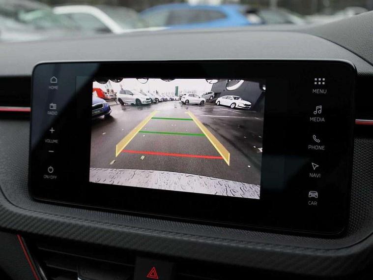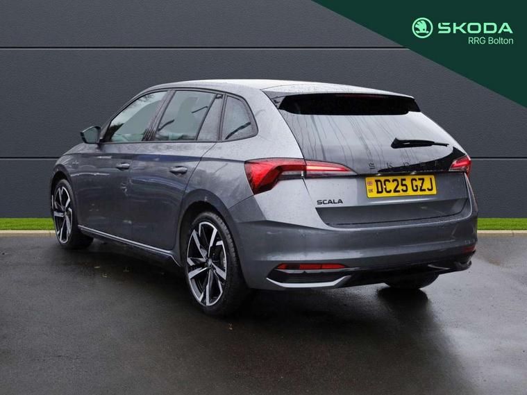 Advanced driver attention and drowsiness monitor, Bluetooth, e-Call (emergency call), Front assist system, PAS, Rear parking sensors, Rear view camera, Speed limiter, Tailgate, Traffic sign recognition, Virtual Cockpit - 10.25" digital display, Voice control system, Wireless smartlink, Drive mode select with Sport Chassis Control and ECO mode, 4 USB C ports, 8 Speakers, 9.2" Skoda navigation display, DAB radio, Auto dimming rear view mirror, Automatic headlight control with manual coming and leaving home feature, Automatic intermittent wipers, Black door mirrors, Black lettering on boot lid, Black radiator grille, Black rear diffuser, Black roof spoiler, Black window frames, Body colour bumpers, Body colour door handles, Extended tailgate glass, Front and rear electric windows, Heated rear window, LED 3rd brake light, LED daytime running lights, LED high beam, LED low beam, Light sensors, Monte carlo plaque, Panoramic glass roof, Privacy glass, Rear LED fog light, Rear side wing doors, Rear wiper, Tinted windows, Unique dark chrome design logo on alloy wheels, 12V socket in luggage compartment, 3 seat bench in 2nd row, Aluminium pedals, Ambient lighting in white/red, Black / White armrest stitching, Black roof headlining, Cargo elements, Chrome inner door handles, Door inserts in art.leather carbon, Driver and passenger sun visors with vanity mirror, Dual zone climate control, Front and rear roof lights, Front centre armrest, Front head restraints, Height adjustable driver seat, Height adjustable passenger seat, Ice scraper, Illuminated glove compartment, Inner circulation control with pollen filter, ISOFIX for front passenger seat, Isofix preparation for back seats, Leather gearknob and handbrake lever, Luggage net under rear parcel shelf, Manual lumbar support for front seats, Monte Carlo cloth upholstery, Net package and top tether hooks in boot space, Pocket on the back of both front seats, incl. mobile phone pockets, Rear centre armrest, Red hotstamping, Single front passenger seat, Skoda lettering on steering wheel, Sport seats, Textile floor mats, Third rear headrest, Ticket holder, Top tether for front passenger seat, Umbrella in driver's door, Light and view plus pack - Scala, 3x3 point rear seatbelts, ABS, Child locks, Curtain airbags and front side airbags, Disc brakes, Driver and front passenger airbags, ESP, Hill hold control, Manual leather parking brake, One tone horn, Passenger airbag switch off function, Seatbelt reminder for driver and front passenger, Tyre pressure monitoring system, Anti theft alarm system with interior monitoring, backup horn and towing protection, Anti-theft wheel bolts, Remote central locking with 2 remote folding keys, SAFE function for remote central locking, Carbon effect decorative inserts, 18" Ursa black diamond cut alloy wheels,