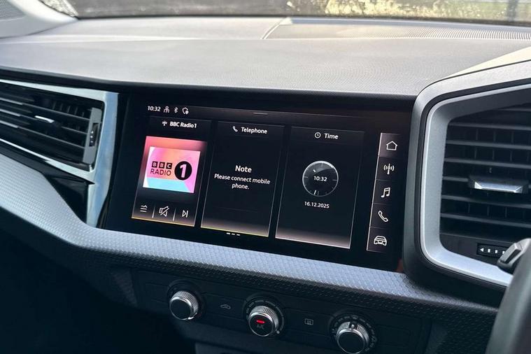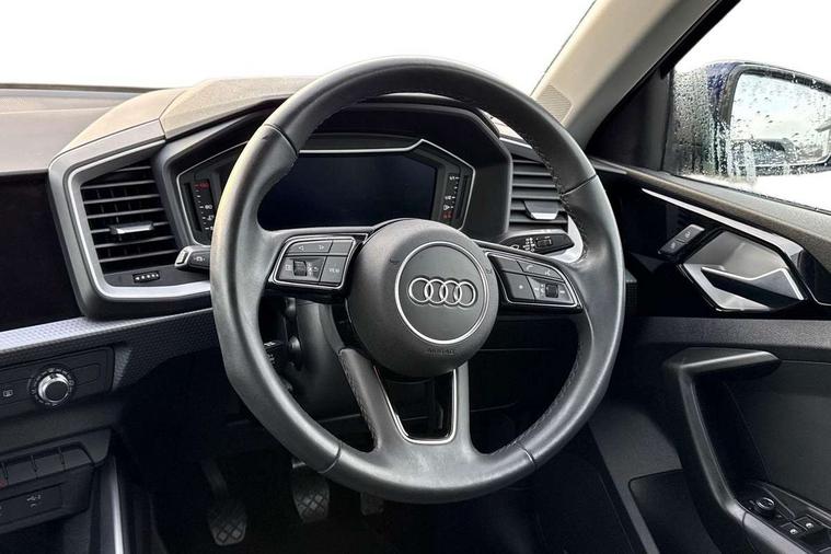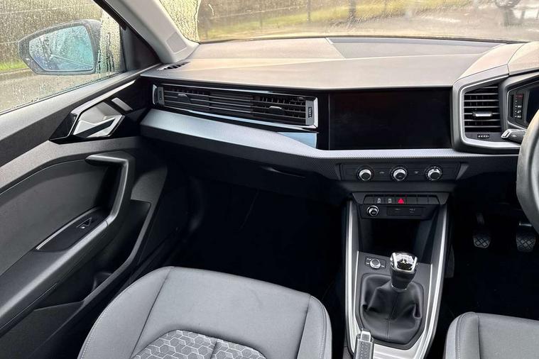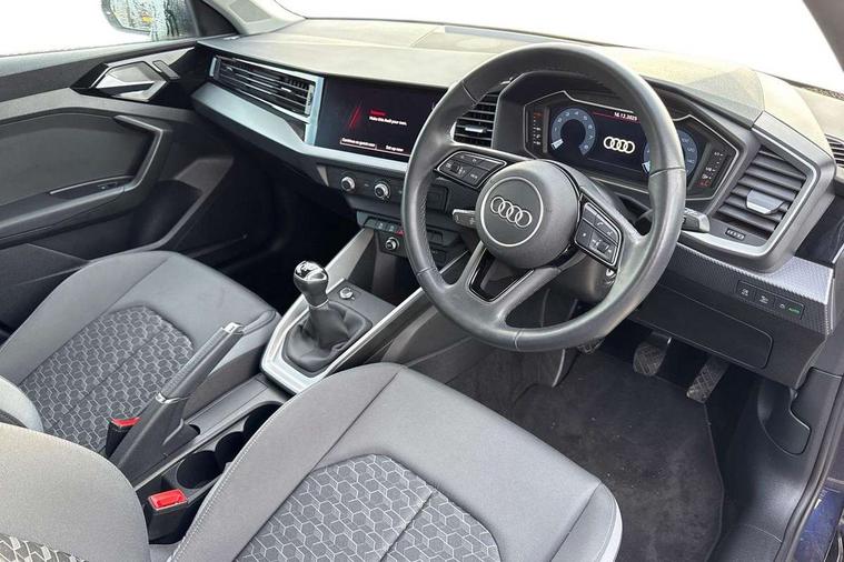 10.25" Digital instrument cluster display classis style instrument dials + speed, odometer, time, outside temperature, telephone menu + fuel level warning, Audi smartphone interface with connect compatible smartphone via USB directly MMI display + Nav, music, third party apps controlled via MMI controller, Automatic start/stop system, Bluetooth interface, Cruise control, Driver's information system, Electromechanical power steering, Emergency e-call, Lane departure warning system, Rear parking sensor, Service interval indicator, Speed limiter, Voice control system, Washer fluid level indicator, Dynamic suspension, 2 x USB type C connection points, 6 passive loudspeakers, DAB Digital radio, MMI radio plus with 10.1" colour MMI display screen and MMI touch, Auto dimming rear view mirror, Body coloured bumpers, Body coloured door mirrors, Electric front and rear windows, Electrically adjustable, heated, folding door mirrors with integrated LED side indicator, Front side air inlets in grained matt black and C frame in anthracite black, Heat insulating glass windscreen and side windows, Heated rear windscreen, High level LED brake light, LED headlights with LED rear lights + dynamic rear indicators + headlight adjustment and high beam, turning light + LED daytime running lights, Radiator grille and rear diffuser in matt anthracite black, Radiator protective grille frame in matt aluminium silver, Rain and light sensors, Rear fog lights, Rear side wing doors, Rear wiper, Side front spoiler lips in grained matt black, 12V socket in centre console with two cup holders, 3 rear seats with headrests, 3 seat bench in 2nd row, 3 spoke leather multifunction plus steering wheel, 40:60 Split folding rear seat or folded fully, Black front and rear floor mats, Door sill trims with aluminium inlay, Driver and passenger seat with manual height adjust with forward and backwards adjustment, Front head restraints, Front passenger seat, Grey cloth headlining, Height and reach adjustable steering wheel, ISOFIX child seat mounting for front passenger and outer rear seats including top tether attachment point of outer rear seats, Leather gear knob with aluminium trim, Leather handbrake grip, Luggage compartment light with front and rear reading lights, Manual air conditioning, Manually adjustable lumbar support in front seats, Novum cloth upholstery with front sport seats, Luggage compartment pack - A1, 3x3 point rear seatbelts, Audi pre-sense front with pedestrain and cyclist recognition, Brake assist function, Driver and front passenger airbag with front side and head airbags, Electronic Stability Control including ABS, EBD, ASR and EDL, Front passenger airbag deactivation switch, Hill hold assist, Manual rear child locks, Seatbelt height adjustment for front seats, Seatbelt monitoring, Tyre pressure warning light, Warning triangle and first aid kit, Anti theft alarm, Anti theft wheel bolts and loose wheel warning, Immobiliser, Remote central locking with 2 foldaway keys, Aluminium trim for control switches, air vents and digital instrument cluster, Black dashboard, Silver grey accent areas including air vents, door handle recesses and centre console in diamond paint finish, Slate grey inlays polygon structure in fine paint finish,