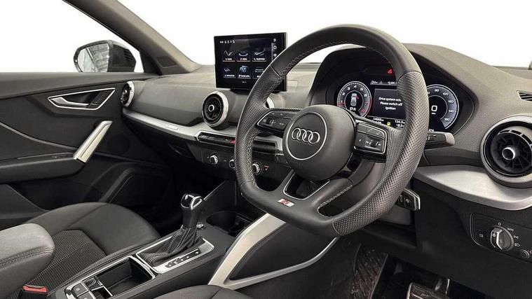 3D map display, Audi connect navigation and infotainment includes innovative services, Audi connect remote and control connects your vehicle to your smartphone, Audi drive select: S tronic - power steering assistance + engine + gearshift (modes: comfort, auto, dynamic, efficiency, individual), Audi smartphone interface - Apple carplay/Android Auto, USB connect, 2xSDXC card readers, voice control for navi, telephone, music and 3rd party apps, Audi virtual cockpit, Automatic start/stop system with recuperation, Bluetooth interface includes bluetooth audio streaming, Cruise control, Distraction and Fatigue warning, E-call, Jukebox hard drive memory for music (10GB), Lane departure warning, MMI navigation plus with 8.8" touchscreen, Natural voice recognition, Power operated tailgate, Progressive steering, Rear parking sensors, Sport suspension, 6 passive loudspeakers, DAB Digital radio, USB type C port, Audi beam, Auto dimming rear view mirror, Black window trims, Bumper in full body colour paint finish, Electrically adjustable, folding, auto dimming and heated door mirrors with integrated LED side indicators, Front windscreen with grey tinted sunband, LED daytime running lights, LED headlights with dipped beam, high beam, position lights, indicators, LED rear lights, LED third brake light, Privacy glass - dark tinted rear and rear side windows from B-pillar backwards, Rear side wing doors, Rear wiper, Variable front intermittent wipers, Wheel arch trims in manhattan grey, 12V socket in front, 3 seat bench in 2nd row, 3 spoke flat bottomed multi-function leather sport steering wheel with gear shift paddles, 4-way electric lumbar support for front seats including manual seat height adjustment for both front seats, 60/40 split folding rear seat bench, Black carpets, Black cloth headlining, Front and rear head restraints, Front centre armrest, Front sport seats, Front/rear floor mats, Height/reach adjust steering wheel, Illuminated door sill trims with S logo, ISOFIX child seat mounting in front passenger and rear outer seats, Manual air conditioning, Single front passenger seat, Stainless steel pedals, Black styling pack - Q2, 3x3 point rear seatbelts, 6 airbags - Front, curtain and front side airbags, Electromechanical parking brake, Electronic stabilisation control including ABS, ASR and EDL, Front passenger airbag deactivation, Hill hold assist, Pre-sense front with pedestrian recognition, Seatbelt monitoring, Tyre pressure warning light with visual and acoustic warning, Warning triangle and first aid kit, Anti theft alarm, Anti theft wheel bolts, Electronically operated child locks, Remote central door locking, Aluminium interior element, Black dashboard, Gloss black centre console, Matt brushed aluminium trim inlays, Tool kit,