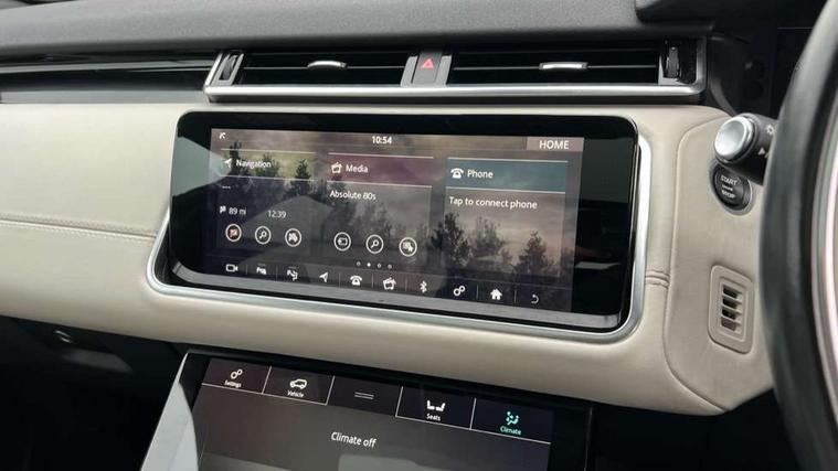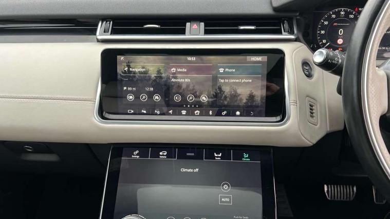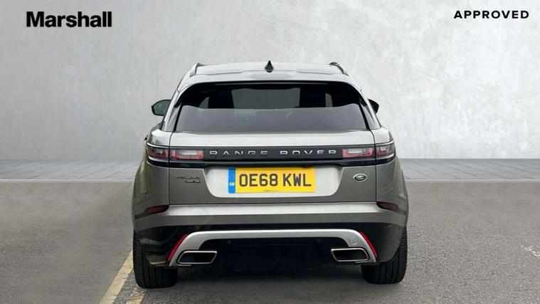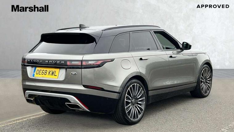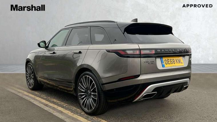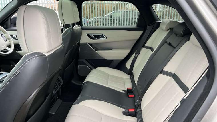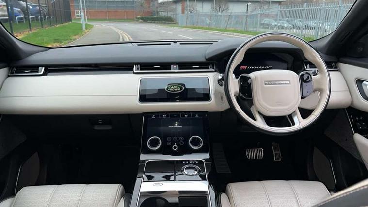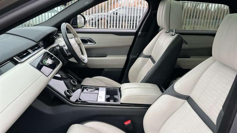 360 Parking aid sensors, Blind spot assist, Bluetooth connectivity, Brake pad wear indicator warning light, Driver condition monitor, InControl remote, InControl Touch navigation pro, Interactive Driver display instrument cluster, Land Rover InControl apps, Lane keep assist, Park Assist - Parallel Park/Parking Exit/Perpendicular park, Powered gesture tailgate/boot lid, Pro services and wifi hotspot, Rear traffic monitor, Service indicator, Speed proportional electronic power assisted steering (EPAS), Traffic sign recognition with adaptive speed limiter, Trip computer, Voice control system, 8 speed automatic transmission, Electronic air suspension, Open differential with torque vectoring by braking, Single speed transfer box, Digital Audio Broadcast radio-DAB, Steering wheel mounted controls, Acoustic laminated windscreen, Adaptive front lighting system, Auto dimming interior rear view mirror, Automatic headlamp levelling, Automatic headlights, Body coloured bumpers, Boot protection plate, Electric windows with one touch open/close and anti trap, Flush deployable exterior door handles, Follow me home headlights, Headlamp power wash, Heated rear window with timer, Heated windscreen + heated windscreen washer jets, Power fold, auto-dimming, heated door mirrors with approach lights, Rain sensor windscreen wipers, Rear fog lights, Rear wash/wipe, Standard roof, Tailgate/boot lid spoiler, Trailer stability assist, Velar and R-dynamic badge, 40:20:40 split folding rear seats, Adjustable front armrest, Bright metal pedals, Driver and passenger illuminated vanity mirror, Electric adjustable steering column, Isofix system on outer rear seats, Loadspace cover, Passive front headrests, Rear centre headrest, Satin chrome gearshift paddles, 350mm front brakes, 3x3 point rear seatbelts, Anti-lock braking system (ABS), Cornering brake control, Curtain airbags, Door side intrusion beams, Driver airbag, DSC - Dynamic Stability Control, Electronic brake force distribution, Electronic parking brake, Electronic traction control, Emergency brake assist, Front and rear seatbelt reminder, High speed emergency braking, Hill descent control, Hill launch assist, Low traction launch, Passenger airbag, Power operated child locks, Rear airbags, Roll stability control, Side airbags, Tyre pressure monitoring system, Unpainted brake calipers, Global lock and unlock switch on driver door, Immobiliser, Intrusion sensor, Keyless entry, Lock only switch on front passenger door, Perimetric alarm, Remote central locking,