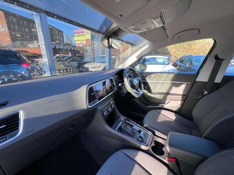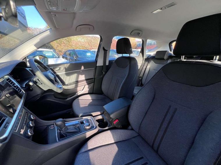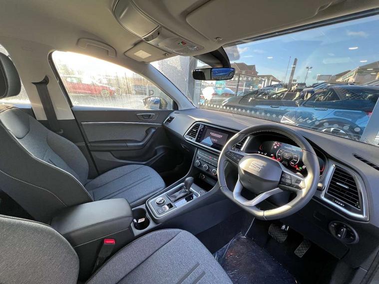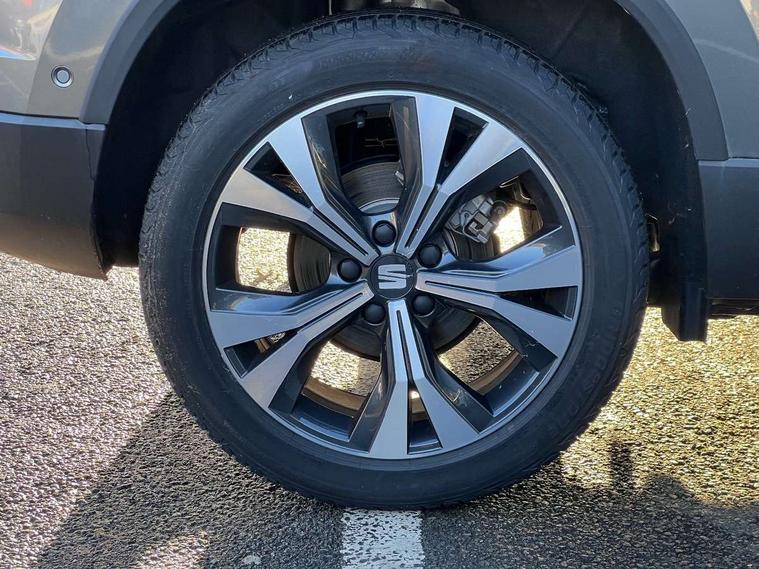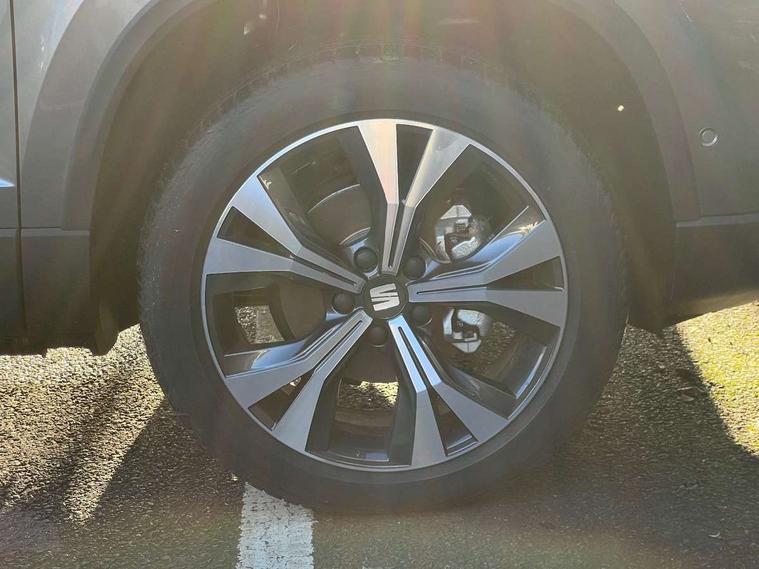 8" Digital cockpit, Colour multi-function on board computer display, Cruise control system with speed limiter, E-call, Outside temperature gauge, PAS, Rear view camera, SEAT drive profile with driving experience button - Normal, Sport, Eco and Individual mode, gearshift, steering and throttle response, Self parking functionality (includes front and rear parking sensors), Start/stop system, Tailgate, Trip computer, wired and wireless full link smartphone integration, Wireless phone charger, Steering wheel mounted audio/phone controls, Black roof rails, Black side window trim, Black wheel arch surrounds, Body colour bumpers, Chrome front grille frame, Chrome side window trim, Daytime running lights, Door mirrors with welcome light silhouette, Dynamic headlight range control with self adjusting whilst driving, Electric adjustable/heated/folding door mirrors, Front and rear electric windows, Full LED headlamps with lens and LED front fog lamps with cornering function, LED 3rd brake light, LED rear tail lights, Rear exhaust tailpipe, Rear fog lights, Rear side wing doors, Rear wash/wipe, Variable front intermittent wipers, 12v socket in front, 3 seat bench in 2nd row, 60/40 split folding rear seat, Cloth upholstery with front comfort seats, Drawer under right front seat, Dual zone climate control, Front and rear head restraints, Front centre armrest, Front seat back storage pockets, Height adjustable driver and passenger seat with lumbar adjustment, ISOFIX points in outer rear seats with top tether anchorage points, Leather sports steering wheel and gear knob, Rear armrest and easy back seat release mechanism from boot, Single front passenger seat, Steering wheel mounted gearshift paddles, Convenience pack - Ateca, Interior lighting pack - Ateca, Navigation system pack with DAB - Ateca, Safety and driving pack with attention and drowsiness assist - Ateca, 3x3 point rear seatbelts, ABS, Traction control system (TCS), Electronic stability control (ESC) and Electronic differential lock system (XDS), Airbags - Driver and front passenger airbag with deactivation, front side, two curtain and driver's knee airbags, Electric parking brake with auto hold function, Front and rear seatbelt reminder, Front assist with autonomous emergency braking, Hill hold control, Manual rear child locks, Single tone horn, Tiredness recognition system, Tyre pressure monitoring system, Alarm, Keyless entry, Locking wheel bolts, Remote central locking, Chrome interior detailing, 18" Performance machined alloy wheels 36/2 in nuclear grey,