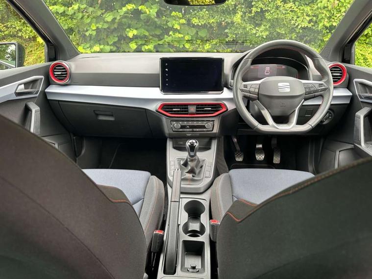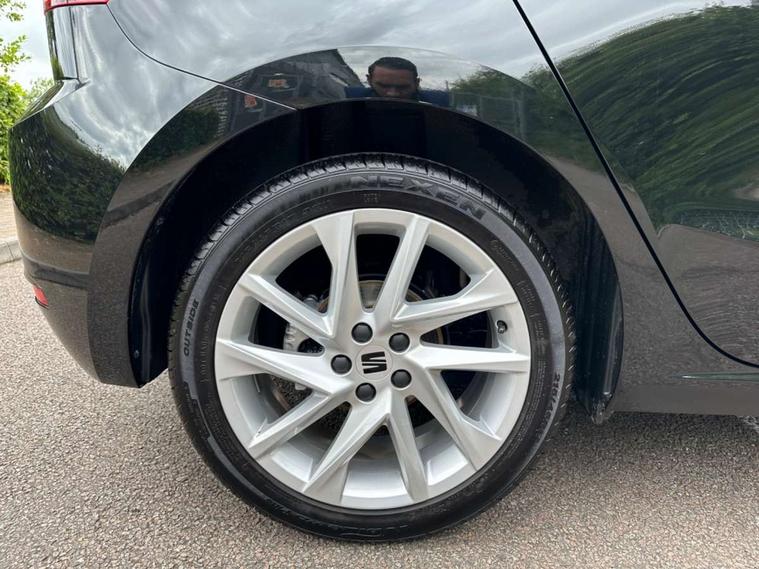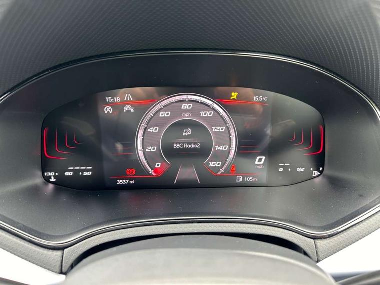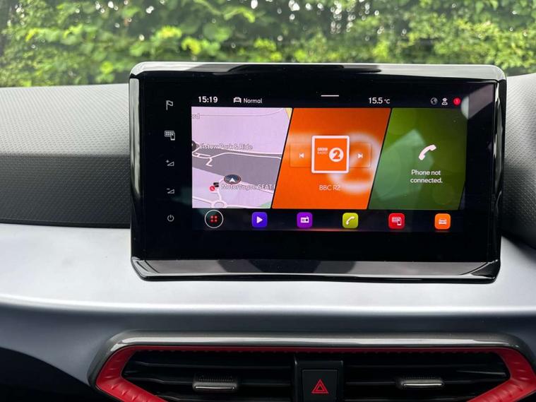 'Lights On' Reminder warning buzzer, 8" Digital cockpit, 9.2" touchscreen navigation system with type C USB socket, Voice control and DAB/AM/FM radio, Auto start and stop system, Bluetooth audio streaming with handsfree system, Digital clock, E-call, Full link smartphone integration with mirror link, wireless apple carplay, Google android auto + USB Type C cable for apple and android devices, Lane assist, Low fuel warning light, Outside temperature gauge, Power Steering, Seat connect with safety, service, remote and online, SEAT drive profiles and ECO function, SEAT logo boot release, Speed limiter, Trip computer, Sports suspension, Auxiliary input socket, Radio/MP3 player, SD card slot, Steering wheel mounted controls, Anti theft roof antenna, Auto dimming rear view mirror, Automatic rain sensing wipers, Black door mirrors, Body colour bumpers, Body colour door handles, Brilliant black window surrounds, Dark tinted rear windows, Electric adjustable/heated/folding door mirrors, Electric front windows, Electric headlight adjustment, Electric rear windows, Front/rear fog lights, FULL LED automatic headlights with dynamic headlight range control, coming and leaving home, LED daytime running lights, LED tail lights, Rear side wing doors, Rear spoiler with FR twin exhausts, Rear wiper, Third brake light, 3 seat bench in 2nd row, 60/40 split folding rear seat, Ambient interior lighting, Chrome detailing and black headlining, Cloth upholstery, Dual zone climate control with combination filter, Front courtesy lights, Front cupholders x 2, Front reading lights, Gear shift indicator, Glovebox, Height adjustable front and rear headrests (five), Height adjustable front seats, Height/reach adjust steering wheel, Illuminated air vent surrounds, Illuminated boot, Instrument lighting with brightness control, Isofix, Leather multifunction flat bottomed sports steering wheel, Passenger sunvisor, Single front passenger seat, Sports seats, Sunvisors with mirror and driver side card holder, 3 point seatbelts on all 3 rear seats, ABS, Active front headrests, Child locks on rear doors, Electronic stability control, Energy recovery system, Front assist forward collision warning and autonomous emergency braking, Front driver and passenger side airbags with curtain airbag and front passenger airbag deactivation, Hill hold control, Multi-Collision braking, Seat belt reminder for front and rear seats, Tiredness recognition system, Tyre pressure monitoring system, Electronic engine immobiliser, Locking wheel bolts, Perimeter alarm and interior monitoring with backup horn and tow away protection, Remote central locking + deadlocks, 17" alloy wheels in Brilliant silver,