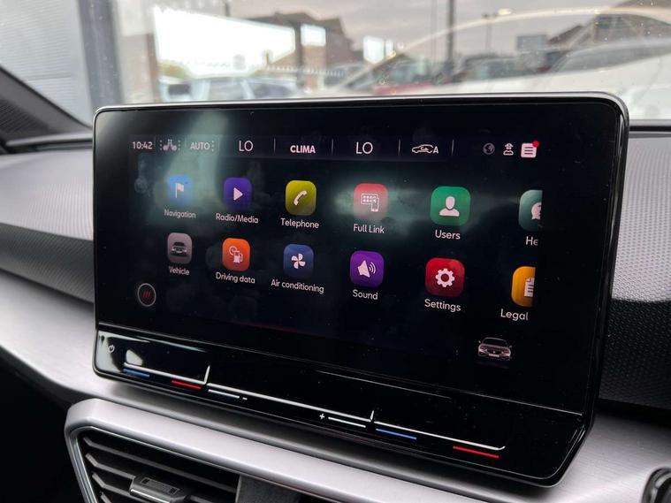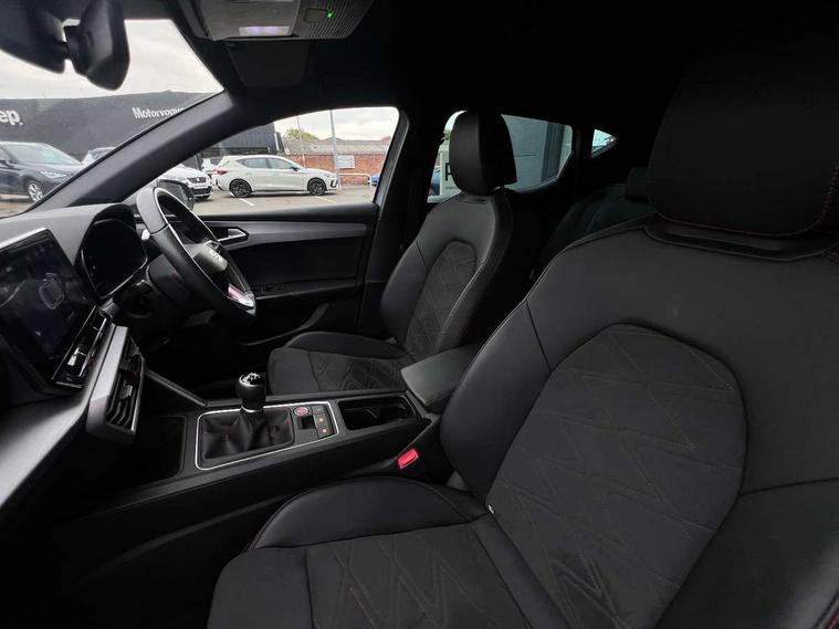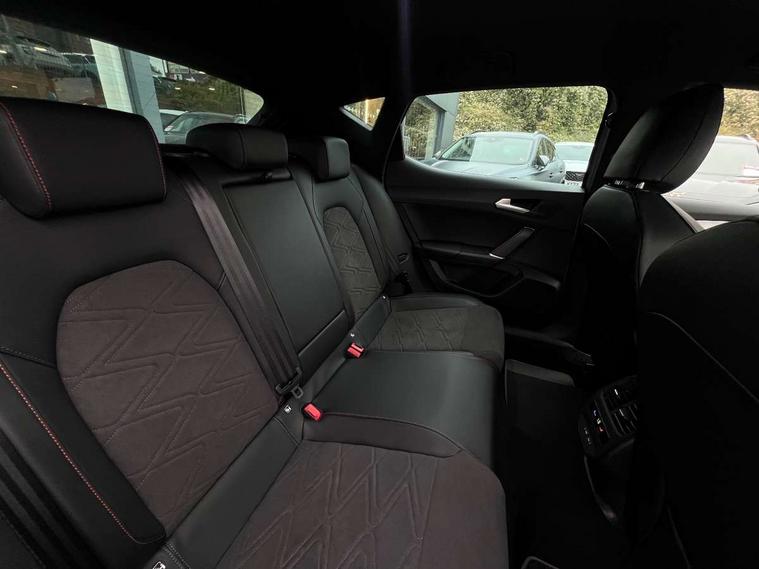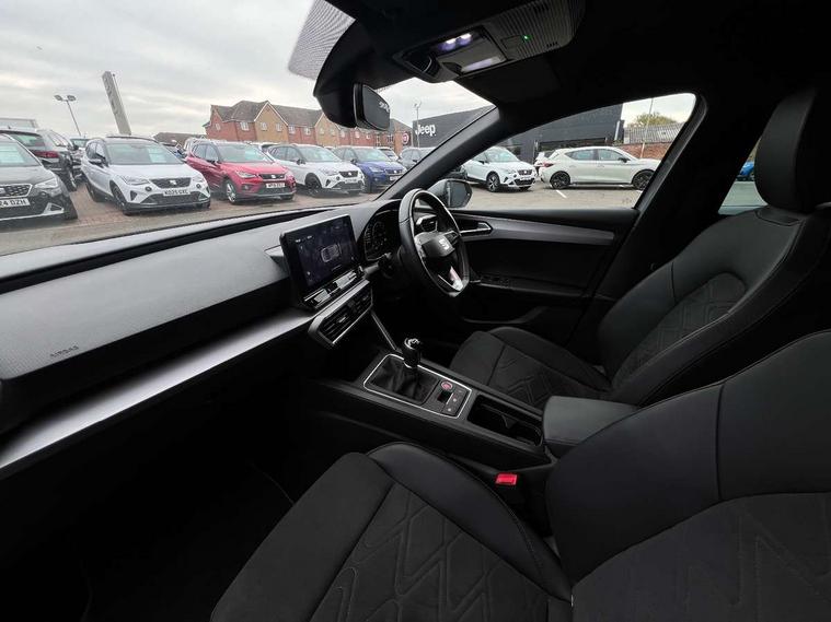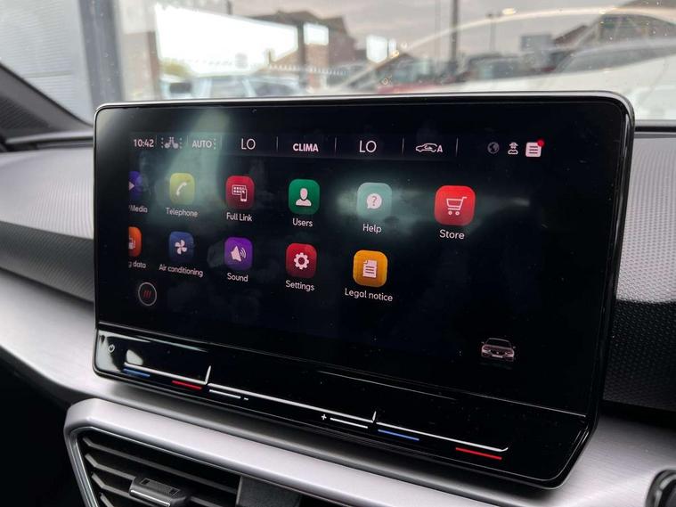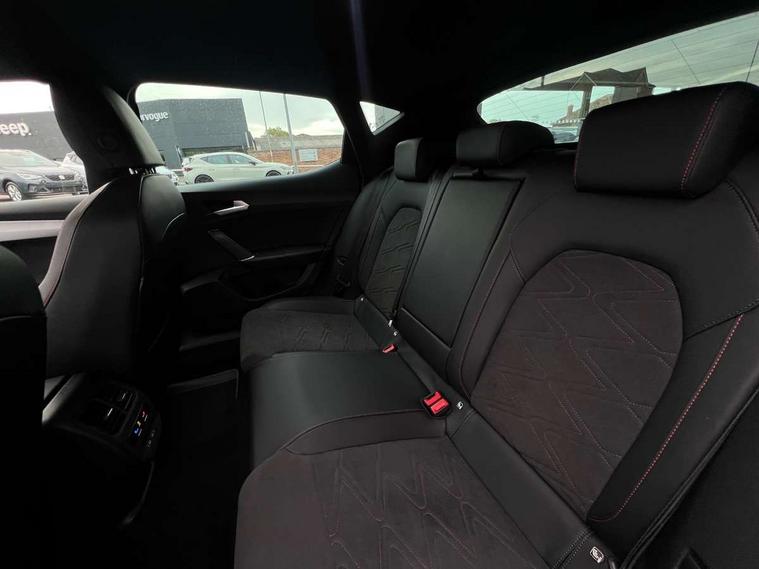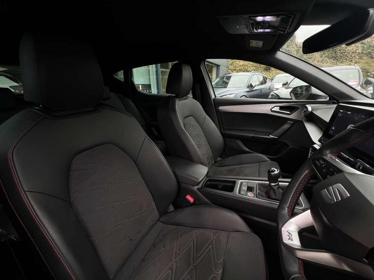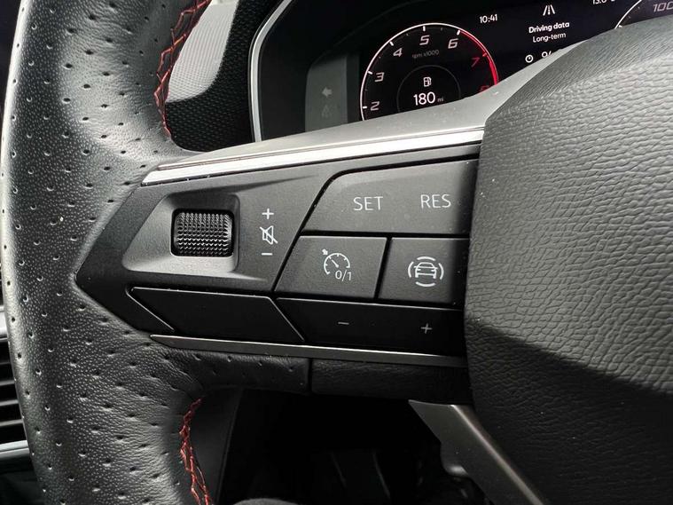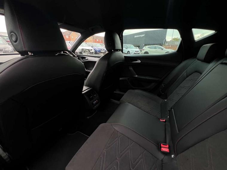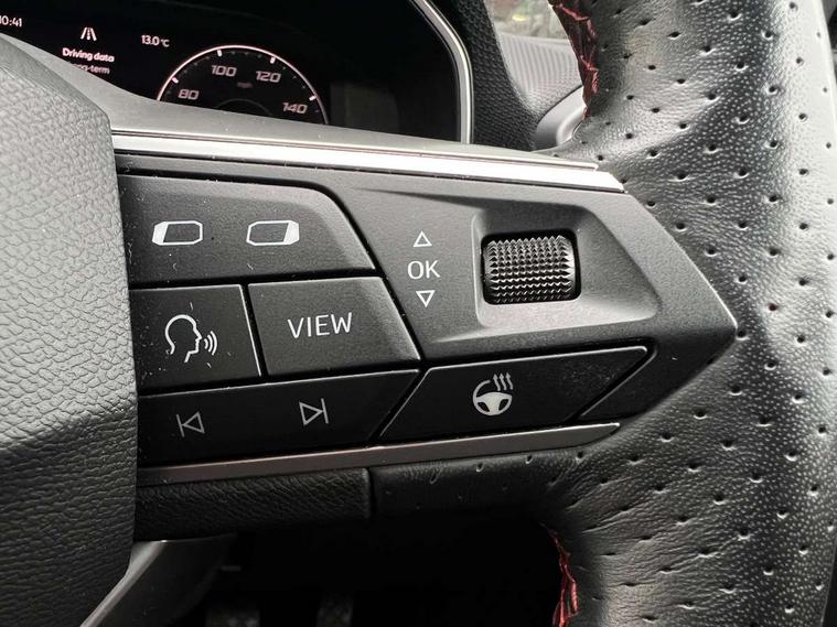 Digital cockpit, E-call, Four x USB Type C ports, Front assist with forward collision warning braking reaction to vehicles, pedestrians and cyclists, Full link smartphone integration with Mirror Link, wireless Apple CarPlay and wired Google Android Auto, Lane assist, Lockable tailgate, Park assist (inc front/rear parking sensors), Power assisted speed sensitive electro-mechanical steering, RPM, trip computer, outside temp gauge, instrument light brightness, low fuel warning light, lights on reminder, gearshift indicator, SEAT drive profile with 4 modes (Eco/Normal/Sport/Individual), throttle response, Service interval indicator, Start/stop system with regenerative braking, Sports suspension, XDS electronic differential lock and dynamic traction support, 7 speakers, Auxiliary input socket, Auto dimming rear view mirror, Body colour door handles, Body coloured bumpers, Dark tinted rear windows, Door mirror LED indicator lights, Electric adjustable/heated/folding door mirrors with memory, Electric front/rear windows, FR sports bumper, Illuminated front door sill, LED front fog lamps with cornering function, LED headlights and tail lights with dynamic turn signals, welcome light silhouette from exterior mirrors and dynamic headlight range control, LED rear fog lamp, Rain sensing wipers, Rear side wing doors, Rear wash/wipe, Separate daytime running light with automatic headlight control and coming home feature, Third brake light, 12v power point in centre console, 3 seat bench in 2nd row, 60/40 split rear bench seat with armrest, Ambient lighting with glovebox, footwell and single monocolour, Black headlining, Dust/pollen filter, Electric driver lumbar support + passenger manual lumbar support, Folding boot cover, Front and rear height adjustable headrests, Front and rear reading lights X 4, Front centre armrest, Front seatback storage pockets, Heated front seats, Heated leather steering wheel with leather gearstick, Height/reach adjust steering wheel, ISOFIX points in outer rear seats with top tether anchorage points, Luggage tie-down hooks, Microsuede cloth upholstery, Power driver seat with memory and manual height adjustable passenger seat, Single front passenger seat, Sunvisors with covered illuminated mirror, Three zone climate control, Tool kit, Wraparound lighting, Media system plus with navigation - Leon, 3 point seatbelts on all rear seats, ABS, Brake control system - ESC and brake booster, Child proof door locks, Driver and front passenger airbags with front passenger airbag de-activation, front side and curtain airbags, Electronic parking brake, Extended safety system - seat belt tensioner, window closure and hazard lights, Hill hold control, Rear disc brakes, Seat belt reminder for front and rear seats, Tiredness recognition system, driver alert system, Tyre pressure monitoring system, Anti theft alarm system with interior monitoring in cab, backup horn and towing protection, KESSY Go (Keyless start), Locking wheel bolts, Wireless phone charging, Chrome interior detailing, 18" Performance machined alloy wheels with 92Y tyres,