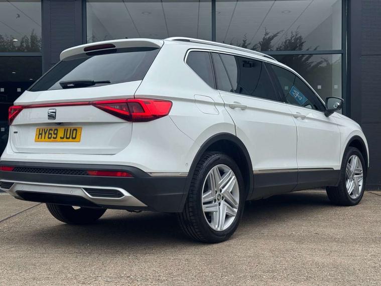 'Lights On' Reminder warning buzzer, 10.25" digital cockpit, Adaptive cruise control with speed limiter, Bluetooth audio streaming with handsfree system, Digital clock, Digital cockpit, e-Call (emergency call), Front assist city emergency braking and pedestrian protection, Full Link Smartphone Integration with Mirror Link, Apple Car Play, Google Android Auto, Lane assist, Low fuel warning light, Outside temperature gauge, Park assist system, Rear view camera, RPM counter, SEAT Drive profile - 4 different modes, progressive steering, 4Drive versions with off-road/snow, steering response, throttle response, gear shifts, Trip computer, Wash water level indicator, Comfort suspension, XDS electronic differential lock, Navigation system with 8" colour touchscreen with proximity sensor, 3D Map display, DAB, AM/FM Radio, 3 USB, Aux-in, 8 speakers, SD card, Steering wheel mounted audio/telephone controls, Auto dimming rear view mirror, Auto headlights with automatic coming and leaving home function, Automatic headlight adjustment, Body colour door mirrors and handles, Body coloured bumpers, Chrome front grille frame, Chrome roof rails, Chrome window trim, Dark tinted rear windows, Electric front/rear windows, Electrically adjustable and folding door mirrors, Front halogen fog lights with cornering function, Fuel door linked to central locking, Full LED headlights with LED rear lights, Hidden exhaust pipe, Illuminated aluminium front door sill with XCELLENCE logo, LED daytime running lights, LED licence plate lighting, Rain sensing wipers, Rear fog lights, Rear wash/wipe, 3 zone climate control, Ambient spot lighting and front footwell illumination, Baza cloth upholstery + sports seats, Black interior roof, Centre armrest in front with air outlet in rear, Driver and passenger sunvisor with covered and illuminated mirror, Driver/passenger lumbar adjustment, Easy fold rear seat system - second and third row, Folding table on front seat backrests, Forward and backward adjustable seats 2nd row, Four cargo rings in the boot, Front cupholders, Front seat back storage pockets, Gear shift indicator, Height adjustable driver's seat, Height adjustable front headrests, Height adjustable passenger seat, Illuminated boot, Instrument lighting with brightness control, ISOFIX points in outer 2nd row seats and front passenger seat with top tether anchorage points, Leather gear knob, Leather steering wheel, Leather wrapped multifunction steering wheel, Luggage compartment floor with split function, Rear armrest and easy back seat release mechanism from boot, Sliding boot cover, Storage draw under front passenger seat, Three 12V sockets, White ambient lighting in front and rear door panels + LED lights in interior door handles, ABS, Active front head restraints, Driver/front passenger airbag, Drivers knee airbag, Electronic parking brake with auto hold, Electronic stability control, Front passenger airbag deactivation, Front side airbags, Hill hold control, Seatbelt reminders for all seats, Tiredness recognition system, Traction control, Two curtain airbags, Tyre pressure monitoring system, Alarm, Central locking, Keyless enter and go with electric tailgate with virtual pedal, Locking wheel bolts, Power locking and remote control with two foldable keys and opening boot selector, Chrome interior detailing - door and dashboard decorative inserts, 19" Exclusive machined alloy wheels 37/1, Tool kit,