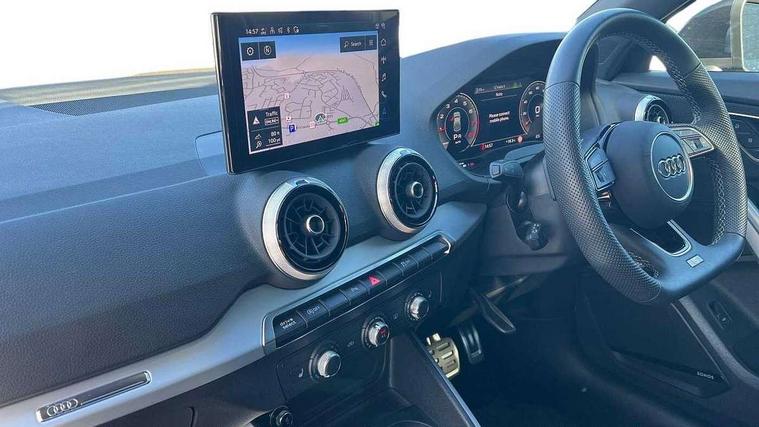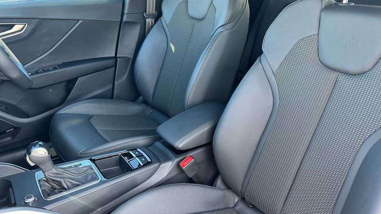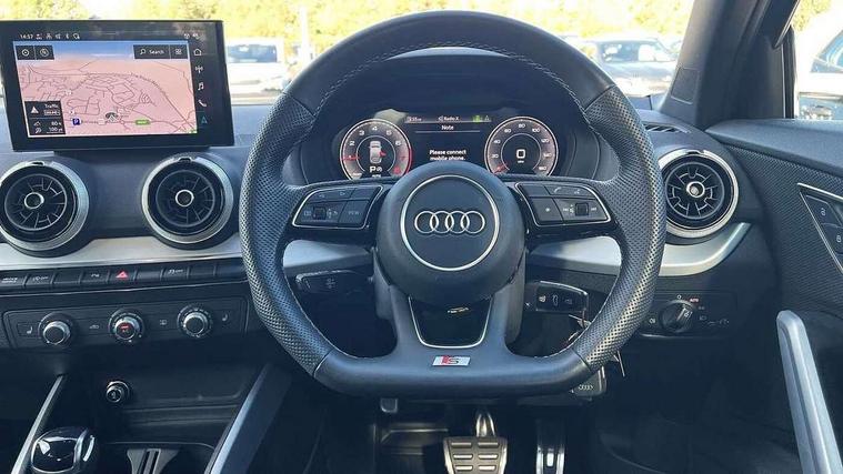 3D map display, Audi connect navigation and infotainment includes innovative services, Audi connect remote and control connects your vehicle to your smartphone, Audi drive select: S tronic - power steering assistance + engine + gearshift (modes: comfort, auto, dynamic, efficiency, individual), Audi smartphone interface - Apple carplay/Android Auto, USB connect, 2xSDXC card readers, voice control for navi, telephone, music and 3rd party apps, Audi virtual cockpit, Automatic start/stop system with recuperation, Bluetooth interface includes bluetooth audio streaming, Camera based traffic sign recognition, Cruise control, Distraction and Fatigue warning, E-call, Jukebox hard drive memory for music (10GB), Lane departure warning, MMI navigation plus with 8.8" touchscreen, Natural voice recognition, Power operated tailgate, Progressive steering, Rear parking sensors, Sport suspension, 6 passive loudspeakers, DAB Digital radio, USB type C port, Audi beam, Auto dimming rear view mirror, Black window trims, Bumper in full body colour paint finish, Electrically adjustable, folding, auto dimming and heated door mirrors with integrated LED side indicators, Front windscreen with grey tinted sunband, LED daytime running lights, LED headlights with dipped beam, high beam, position lights, indicators, LED rear lights, LED third brake light, Privacy glass - dark tinted rear and rear side windows from B-pillar backwards, Rear side wing doors, Rear wiper, Variable front intermittent wipers, Wheel arch trims in manhattan grey, 12v socket in front, 3 seat bench in 2nd row, 3 spoke flat bottomed multi-function leather sport steering wheel with gear shift paddles, 4-way electric lumbar support for front seats including manual seat height adjustment for both front seats, 60/40 split folding rear seat bench, Black carpets, Black cloth headlining, Front and rear head restraints, Front centre armrest, Front sport seats, Front/rear floor mats, Height/reach adjust steering wheel, Illuminated door sill trims with S logo, ISOFIX child seat mounting in front passenger and rear outer seats, Manual air conditioning, Single front passenger seat, Stainless steel pedals, Black styling pack - Q2, 3x3 point rear seatbelts, 6 airbags - Front, curtain and front side airbags, Electromechanical parking brake, Electronic stabilisation control including ABS, ASR and EDL, Front passenger airbag deactivation, Hill hold assist, Pre-sense front with pedestrian recognition, Seatbelt monitoring, Tyre pressure warning light with visual and acoustic warning, Warning triangle and first aid kit, Anti theft alarm, Anti theft wheel bolts, Electronically operated child locks, Remote central door locking, Aluminium interior element, Black dashboard, Gloss black centre console, Matt brushed aluminium trim inlays, Tool kit,