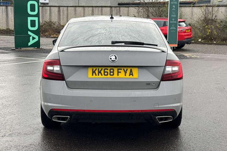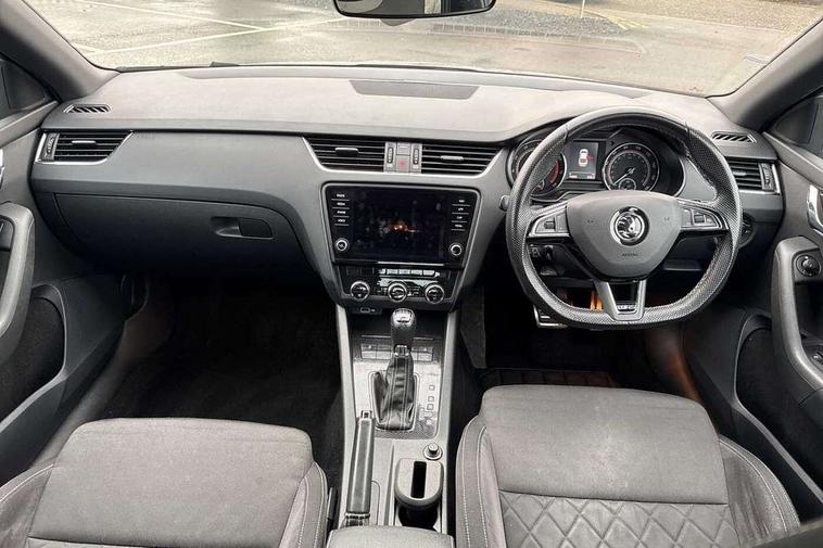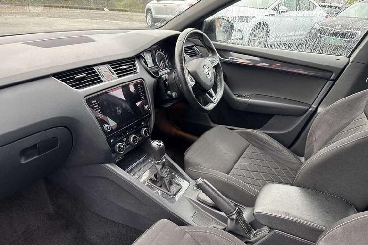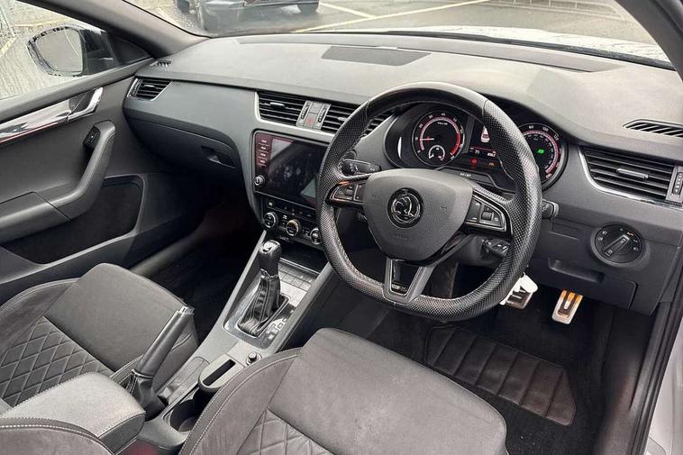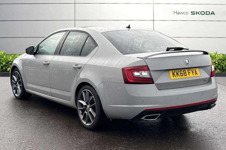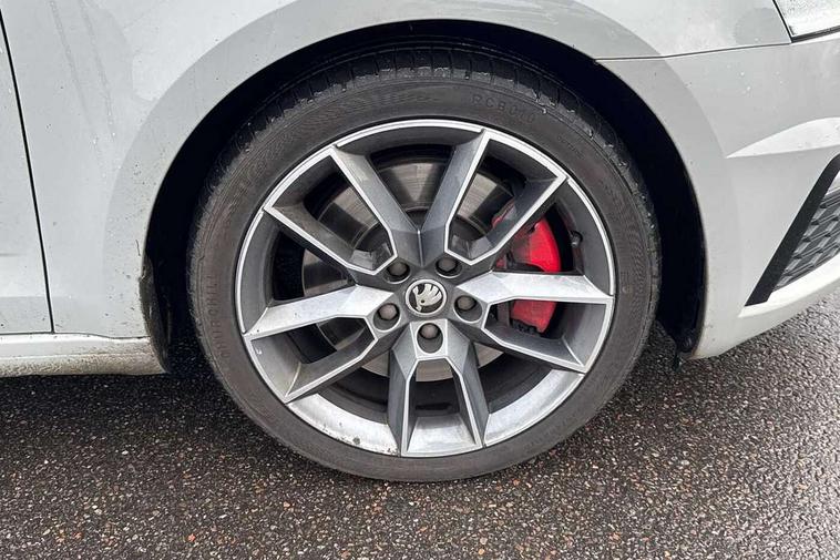 Bluetooth system, Driver alert system, Driver fatigue sensor, Electro-mechanical power steering, Outside temperature gauge, Performance mode selection, Proximity sensors, Service interval indicator, SmartLink with Apple Carplay/Android auto and MirrorLink, Stop/start system, Voice control system, Electronic limited slip differential, Sports suspension, Auxiliary input socket, Bolero Radio, DAB Digital radio, Multi device interface, Aero wiper + intermittent function, Body colour door handles, Body coloured bumpers and protective side mouldings, Door sill trim with vRS logo, Electric front and rear windows with child safety lock, Full LED Headlights with adaptive front light system and LED daytime running lights, High gloss black front grille, High level third brake light, Internally adjustable headlight beam level, LED rear lights (high), Light assistant (coming home/tunnel light) with auto-dimming rear view mirror, Privacy glass, Rain sensor, Rear wiper, Telescopic front headlight washers, Tinted glass, vRS exterior design with bumper and spoiler, 3 spoke supersport multifunction leather steering wheel with vRS logo including paddle shift, Air re-circulation and pollen filter, Aluminium pedals, Black headlining, Chrome inner door handles, Driver + passenger vanity mirrors, Dual zone automatic air conditioning with humidity sensor and control, Front and rear footwell illumination, Front armrest with storage box, Front seat and rear pockets, Front sport seats, Gear shift indicator, Height adjustable driver and passenger seat with lumbar support, Height adjustable front and rear head restraints, Height/reach adjust steering wheel, Illuminated air conditioned glovebox, Illuminated luggage compartment, Interior courtesy light operated by door switches, Interior door handle lighting in front and rear, Lashing eyelets in boot, Rear armrest with 2 cupholders and load through provision, Rear seat backrest release, Safety vest holder under passenger seat, Split folding rear seat backrests, Sunglasses storage, Textile floor mats, Two isofix child seat fitting in rear, Umbrella under front passenger seat, vRS Cloth upholstery, LED Interior lighting package - Octavia, 3 rear 3 point seatbelts + pretensioners, Automatic post collision braking, Driver and passenger front and side airbags, Drivers knee airbag, Energy recovery system, ESC including ABS, EBV, MSR, ASR, EDS, HBA, DSR, ESBS, TSA, MKB, XDS and Prefill brake function, Fuel supply cut off, Head and curtain airbags, Height adjustable front seatbelts + pretensioners, Hill hold control, Passenger airbag deactivate switch, Red brake calipers, Seatbelt warning lamp, Tyre pressure monitor, Alarm, Electronic engine immobiliser, Remote central locking, Low rolling resistance tyres,