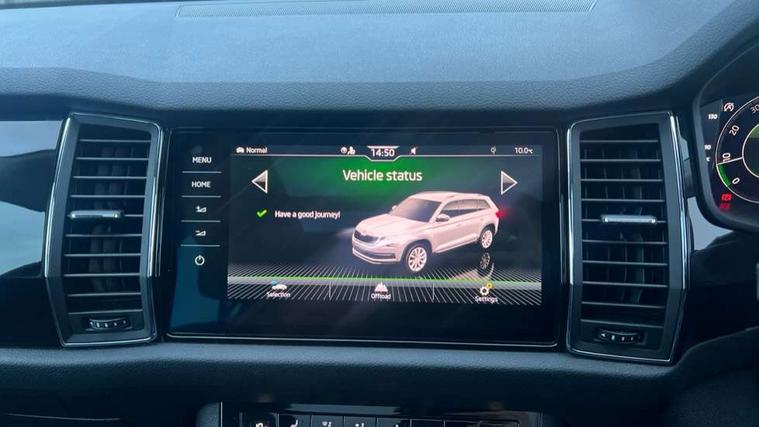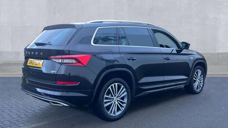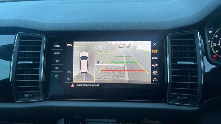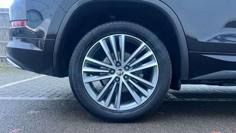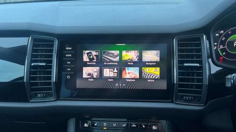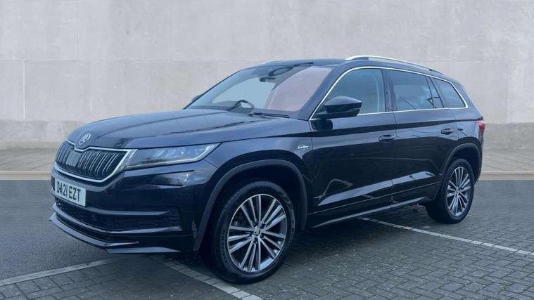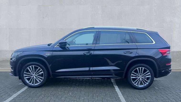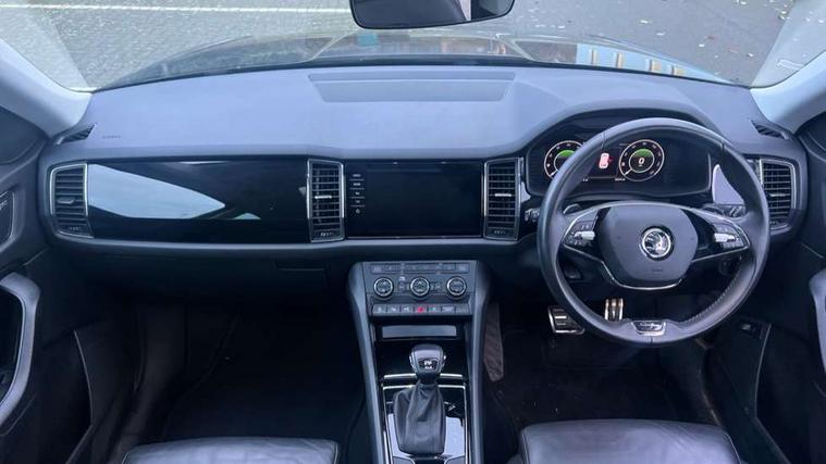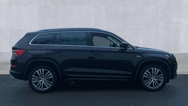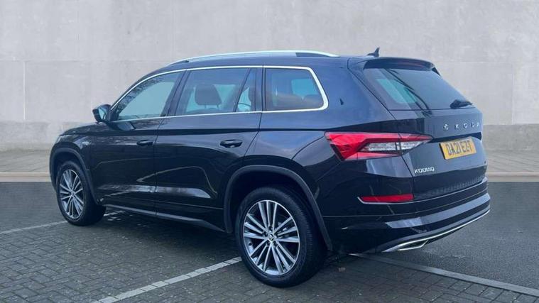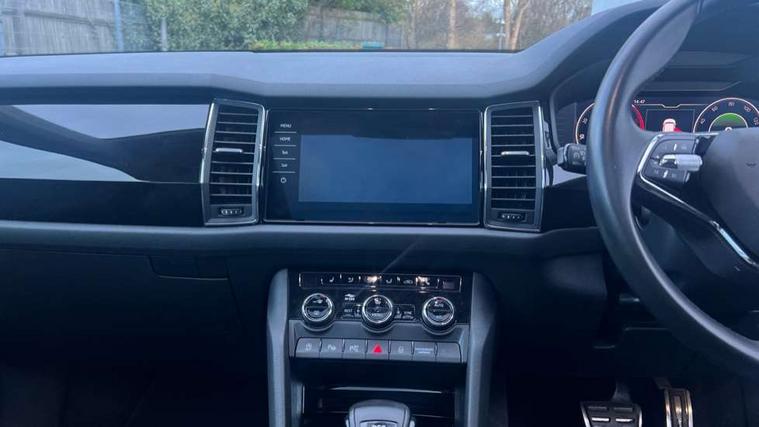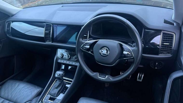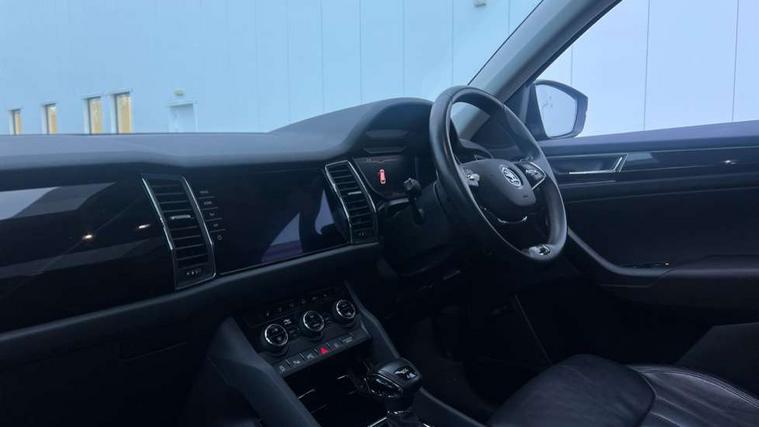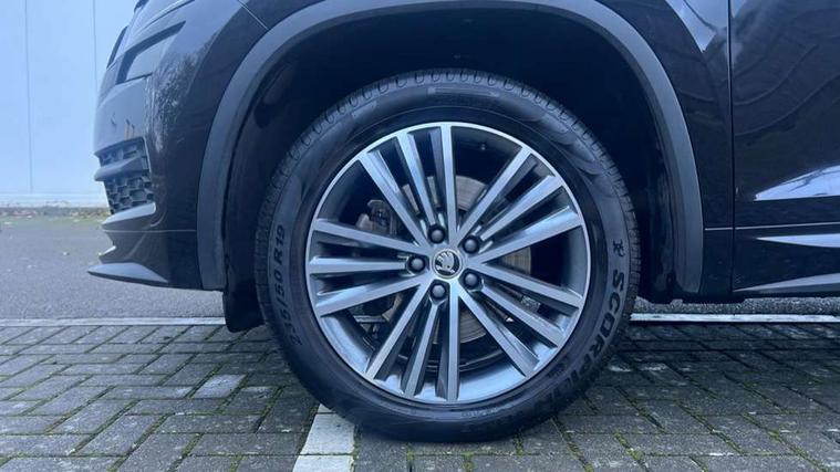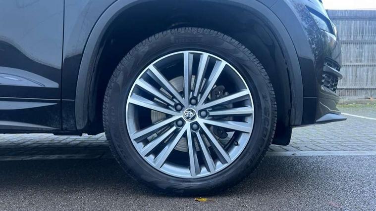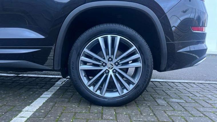 Piano black dash inserts, Plaquette L&K front fenders, LED Interior Light pack - Kodiaq Scout/Sport Line/VRS/Laurin + Klement, 19" Sirius anthracite alloy wheels with anti-theft wheel bolts, Temporary spare wheel, Alarm with interior monitoring and tilt sensor with safe function, Immobiliser, Keyless entry and start system (KESSY), Remote central locking, Canton sound system, DAB Digital radio, Auto door release and activation of warning lights, Driver and passenger airbags, Electronic parking brake with hill hold control, Emergency rear braking signal, ESC (incl. ABS+MSR+ASR+EDS+HBA+DSR+RBS+MKB), Front and rear three point safety belt on all seats, Front assist includes AEB city/urban, Front passenger airbag deactivation switch, Front side airbags, Fuel cut off safety device, Head and knee airbags, Rear disc brakes, Safety vest holder in door, Seat belt reminder for all seats, Tailgate unlocking from outside, Two tone horn, Tyre pressure monitor, Warning lights in front doors, Aero front windscreen wipers with intermittent function, Aero rear window wiper, Auto dimming rear view mirror, Automatic activation of hazard warning lights, Black door steps with Kodiaq label, Black electric window control buttons, Black wheel arch surrounds, Body colour bumpers, Body colour door mirrors and handles, Body colour door panels, Chrome grille in frame and ribs, Electric front and rear windows, Electrically adjustable/heated/foldable and auto dimming door mirrors with memory function, Full LED Headlights with adaptive front light system and LED daytime running lights, Headlight washers, Heated rear window, Heated windscreen with heated windscreen washer nozzles, High beam assist, Invisible tailpipe, LED front fog lights with static cornering light function, LED rear fog light, LED rear lights with high functionality, LED third brake light in rear spoiler, Light assistant (coming home/tunnel light), Panoramic sunroof, Rain and light sensors, Rear bumper with visible design exhaust pipes and diffuser, Rear spoiler, Safety reflectors on front and rear doors, Silver roof rails, Sunset privacy glass, Without engine designation, 12V socket in boot, 2 rails with 2 hooks including 4 hooks for net programme, 2 spoke leather heated multifunction steering wheel with DSG paddles, 4 foldable roof handles with rear coat hooks, 4 lashing points on luggage floor, 60:40 foldable rear seat with sliding adjustment and backrest angle adjustment, Aluminium pedals, Ambient lighting, Bottle holders in door panel in the 1.5 litre front and 1 litre rear, Cargo storage compartments, Centre console with open storage box, cup holder and 12V socket, Chrome headlight control button, Chrome interior door handles, Coat hooks on B pillar, Covered storage compartment on driver side, Decor in piano black with Laurin & Klement logo on front seats, Electrically adjustable front seats with lumbar support and memory function, Front and rear door armrest with black adductor trim, Front and rear height adjustable headrests, Front centre armrest with storage compartment, cup holder and 12V socket, Front courtesy lights, Gear shift lever with chrome frame and black gloss insert, Illuminated and cooled glovebox, Illuminated luggage compartment, Isofix child seat fittings in outer rear seats with top tether, Leather upholstery with L&K logo, Manually adjustable steering column, Net programme in boot (1x horizontal Net, 2x vertical Nets), Overhead glasses storage compartment, Paddles on steering wheel for DSG gearbox, Pollen filter, Rear centre armrest with cupholders, Roll up luggage compartment cover with intermediate position, Small Bags on the inner sides of the front backrests, Stitching to armrest in doors, Storage compartment in lower middle instrument panel with closing, Three rear height adjustable headrests, Ticket holder on A Pillar, Umbrella in door panel, Variable boot floor, Welcome animation with Laurin & Klement logo, Bluetooth system, Columbus satellite navigation with 9.2" touch screen and integrated Wi-Fi + WLAN and web radio, Digital voice enhancement, ECO Stop/start function, Exterior temperature indicator, Map care, Progressive steering, Smartlink wireless for apple carplay and wired for android auto, Speed limiter, USB C Port x 2 in front centre console,