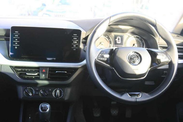 Amundsen satellite navigation with 9.2" glass colour touchscreen display, web radio, voice control and traffic sign recognition, Bluetooth system, E-call, Front assist system, Gesture control, PAS, Service indicator, Speed limiter, Wireless SmartLink for apple car play, android auto and mirrorlink, 8 Speakers, Auxiliary input socket, DAB Digital radio, Body colour bumpers, Body colour door mirrors and handles, Chrome grille surround, Dimming rear view mirror with black surround, Electrically adjustable and heated door mirrors, Front and rear electric windows, Headlight range control, Heated rear window, LED rear lights - low functionality, LED third brake light, Light sensors, Privacy glass, Rear fog lights, Rear side wing doors, Rear wiper, 12V Accessory socket in centre console, 3 seat bench in 2nd row, Chrome inner door handles, Cloth upholstery, Front head restraints, Glove compartment with illumination, Height adjustable driver and front passenger seats - manual, Ice scraper, Isofix child seat fittings on outer rear seats, ISOFIX on front passenger seat, Manual lumbar support for front seats, Rake/reach adjustable steering wheel, Reading lights, Single front passenger seat, Sun visors with illumination on front passenger, Textile floor mats, Third rear headrest, Top tether for front passenger seat, Umbrella in driver's door, 3x3 point rear seatbelts, Airbags - driver and front passenger, ESP, Front passenger airbag deactivation switch, Front side airbags with curtain airbags, Hill hold control, Manual parking brake, Manual rear child locks, One tone horn, Rear disc brakes, Seatbelt reminder for driver an co-driver, Traction control, Tyre pressure monitor, Anti-theft alarm system with interior monitoring, backup horn, towing protection and remote central locking with SAFE system, Anti-theft wheel bolts, Electronic engine immobilizer, Silver haptic decorative insert on the dashboard with hot stamping in glossy black,