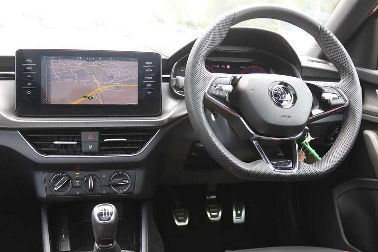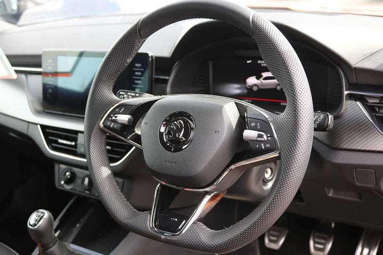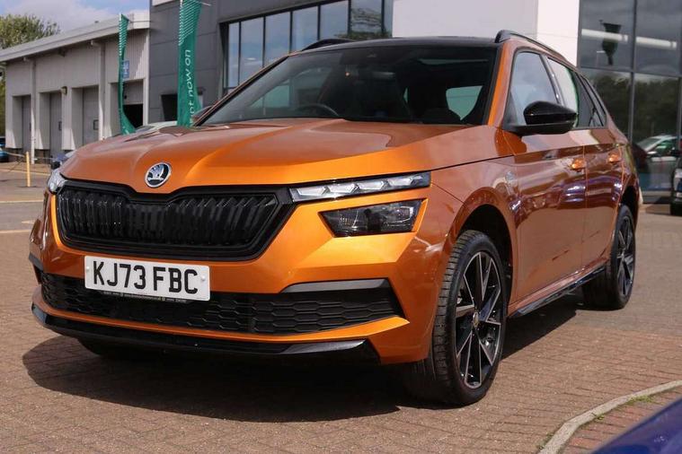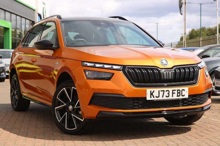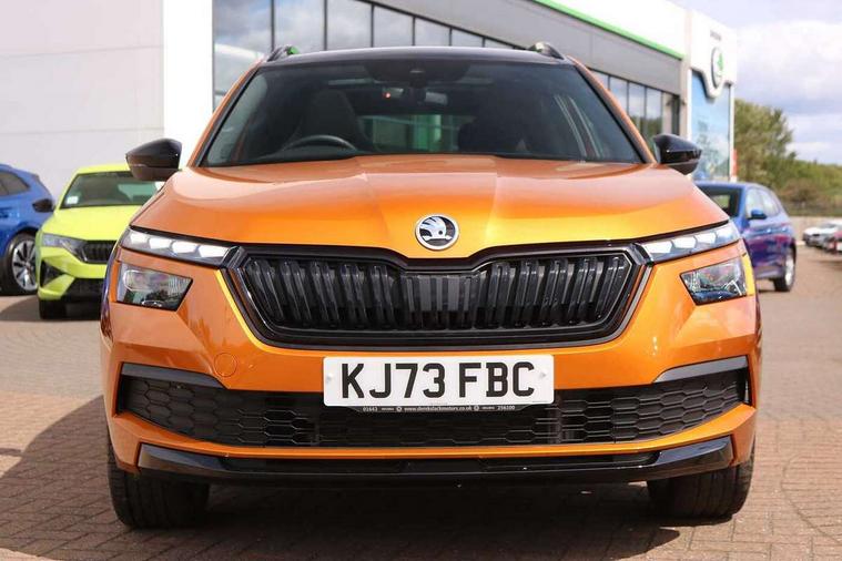Amundsen satellite navigation with 9.2" glass colour touchscreen display, web radio, voice control and traffic sign recognition, Bluetooth system, E-call, Front assist system, Gesture control, PAS, Service indicator, Speed limiter, Wireless Smartlink for Apple CarPlay (wired for Android Auto), 8 speakers, Auxiliary input socket, DAB Digital radio, Black door mirrors, Black radiator grille, Black rear diffuser, Body colour bumpers, Body colour door handles, Body colour roof spoiler, Boot lettering in black, Chrome grille surround, Dimming rear view mirror with black surround, Electrically adjustable and heated door mirrors, Front and rear electric windows, Front sport bumper, Full LED headlights with adaptive front light system, cornering function, fog lights and dynamic indicators, Headlight range control, Heated rear window, High functionality rear led lights with dynamic indicators, KAMIQ Door sills, LED daytime running lights, LED third brake light, Light sensors, Monte carlo plaque, Panoramic sunroof with black roof rails, Privacy glass, Rain sensor, Rear fog lights, Rear side wing doors, Rear wiper, 12V Accessory socket in centre console, 3 seat bench in 2nd row, Aluminium pedals, Black ceiling for black/beige interior, Black roof lining, Chrome inner door handles, Cloth upholstery, Front head restraints, Glove compartment with illumination, Height adjustable front passenger seat, Ice scraper, Isofix child seat fittings on outer rear seats, ISOFIX on front passenger seat, Leather gear lever, Manual lumbar support for front seats, Rake/reach adjustable steering wheel, Reading lights, Single front passenger seat, Sports seats, Sun visors with illumination on front passenger, Textile floor mats, Third rear headrest, Top tether for front passenger seat, Umbrella in driver's door, 3x3 point rear seatbelts, Airbags - driver and front passenger, ESP, Front passenger airbag deactivation switch, Front side airbags with curtain airbags, Hill hold control, Manual parking brake, Manual rear child locks, One tone horn, Rear disc brakes, Seatbelt reminder for driver an co-driver, Traction control, Tyre pressure monitor, Anti-theft alarm system with interior monitoring, backup horn, towing protection and remote central locking with SAFE system, Anti-theft wheel bolts, Electronic engine immobilizer, Chrome air vent surrounds, 18" Vega alloy wheels in black,