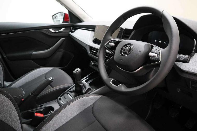 8" Digital display, Advanced driver attention and drowsiness monitor, Bluetooth system, E-call, Front assist system, PAS, Rear parking sensors, Service indicator, Speed limiter, Traffic sign recognition, Wireless smartlink, 4 USB C ports, 8 Speakers, 8.25" Skoda infotainment display, DAB Digital radio, Auto dimming rear view mirror, Automatic headlight control with coming home and leaving home feature, Black roof rails, Body colour bumpers, Body colour door mirrors and handles, Chrome grille surround, Front and rear electric windows, Full LED headlights, Heated rear window, LED daytime running lights, LED front turning lights, LED high beam, LED low beam, LED third brake light, Rear LED fog light, Rear side wing doors, Rear wiper, Ticket holder inside windscreen, 12V socket in luggage compartment, 3 seat bench in 2nd row, Black hotstamping, Cargo elements, Chrome inner door handles, Driver and passenger sun visors with vanity mirror, Dual zone climate control, Front and rear roof lights, Front centre armrest, Front head restraints, Glove compartment with illumination, Height adjustable driver seat, Height adjustable front passenger seat, Ice scraper, Inner circulation control with pollen filter, ISOFIX on front passenger seat, Isofix preparation for back seats, Krepp recycled decor inserts, Leather gearknob and handbrake lever, Loft cloth upholstery, Manual lumbar support for front seats, Net package and top tether hooks in boot space, Net under rear shelf, Overhead glasses storage compartment, Pocket on the back of both front seats include mobile phone pockets, Rake/reach adjustable steering wheel, Reading lights, Satin black door inserts, Single front passenger seat, Textile floor mats, Third rear headrest, Top tether for front passenger seat, Umbrella in driver's door, 3x3 point rear seatbelts, Airbags - driver and front passenger, Disc brakes, ESP, Extended and predictive pedestrian/cyclist protection, Front passenger airbag deactivation switch, Front side airbags with curtain airbags, Hill hold control, Manual leather parking brake, Manual rear child locks, One tone horn, Seatbelt reminder for driver an co-driver, Traction control, Tyre pressure monitor, Anti-theft alarm system with interior monitoring, backup horn, towing protection and remote central locking with SAFE system, Anti-theft wheel bolts, Electronic engine immobilizer,