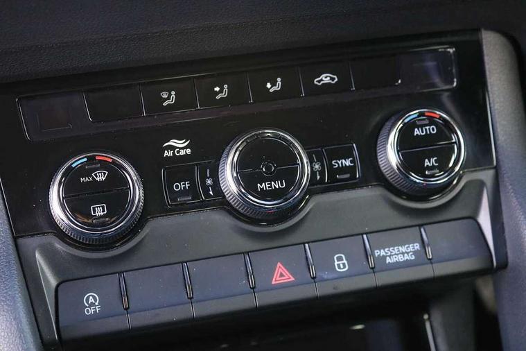 Driver alert system, Driver fatigue sensor, Driver profile selection, Electro-mechanical PAS, Outside temperature gauge, Service interval indicator, Start/stop system with regenerative braking, DAB radio with Bluetooth, SD card slot, USB connection, Acoustic glass, Aero front windscreen wipers with intermittent function, Automatic headlight control system, Body colour door mirrors and handles, Body coloured bumpers, Electrically adjustable heated folding and auto dimming door mirrors with boarding spots, Heated rear windscreen, LED rear lights with high functionality, Light assistant (coming/leaving home/tunnel light), Privacy glass, Safety reflectors on front doors, Third brake light, 1.5 litre bottle holders in driver and front passenger door panels, 12V socket in boot, 12v socket in front centre armrest with storage compartment and rear air vents, 2 Folding hooks and nets in boot, 2 Front readings lights for driver and passenger, 3 rear height adjustable headrests, 4 foldable roof handles with rear coat hooks, 4 lashing points on luggage floor, Backrest release, Cargo elements in boot, Chrome inner door handles, Driver and passenger seats height adjust, Dual zone climate control, Folding tables on the front seat backrests, Front seat and rear pockets, Height adjustable front three point seats belts with tensioners, Height/reach adjust steering wheel, Ice scraper, Illuminated and cooled glovebox, Illuminated luggage compartment, Isofix child seat preparation outer rear, Manual lumbar support for front seats, Net programme in boot, Pen holder, Pollen filter, Rear boot cover, Rear reading lights, Rear seats fixed folding and divided 60:40, Removable LED torch in the boot, Safety vest holder, Seatbelt reminder signalisation and pretensioner for all seats, Storage box in upper central dashboard closed, Storage net on centre console passenger side, Sunglasses storage compartment, Sunvisors with illuminated vanity mirrors, Umbrella under passenger seat, Airbags - Front side, head, knee and curtain, Automatic door unlocking in case of crash, Automatic fuel cut off in case of crash, Driver airbag, Electronic parking brake with auto hold function, Emergency rear braking signal, ESC including ABS, MSR, ASR, EDS, HBA, DSR, RBS, MKB and traction control, Front assist radar scanning of the space in front of the car with automatic braking, Hill hold control, Passenger airbag with switch-off function, Pedestrian monitor, Three point seatbelts rear, Two tone horn, Tyre pressure display, Tyre pressure monitor, Alarm with interior monitoring, back up horn and tilt sensor with safe function, Electronic engine immobiliser, Remote central locking with 2 remote folding keys, Chrome framed air vents, Storage on wheel cover,