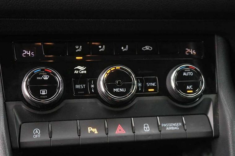 Amundsen satellite navigation with 8" touchscreen, integrated Wi-Fi, web radio, Bluetooth system, Colour multifunction trip computer, Digital voice enhancement, E-call, ECO Stop/start function, Exterior temperature indicator, Power assist steering, Rear view camera, Smartlink wireless for apple carplay and wired for android auto, Speed limiter, Tailgate unlocking from outside, USB C Port x 2 in front centre console, 8 Speakers, DAB Digital radio, Aero front windscreen wipers with intermittent function, Aero rear window wiper, Auto dimming rear view mirror, Black wheel arch surrounds, Body colour bumpers, Body colour door mirrors and handles, Electric front and rear windows, Extended rear spoiler with finlets in gloss black, Front fog lights, Headlight washers, Heated rear window, Invisible tailpipe, LED rear fog light, LED third brake light in rear spoiler, Light assistant (coming/leaving home/tunnel light), Off-road style lower front bumper element, Privacy glass, Radiator grille frame in matt black with chrome strip, Rain and light sensors, Rear LED lights (high functionality) with welcome effect and dynamic indicators, Rear side wing doors, Safety reflectors on front and rear doors, Window control switches with black trim, 12V socket in boot, 2 rails with 2 hooks, 3 seat bench in 2nd row, 4 foldable roof handles with rear coat hooks, 60:40 foldable rear seat with sliding adjustment and backrest angle adjustment, Bottle holders in door panel in the 1.5 litre front and 1 litre rear, Chrome interior door handles, Cloth upholstery, Coat hooks on B pillar, Covered storage compartment on driver side, Dual zone automatic air conditioning with humidity sensor and control, Front centre armrest with storage compartment, cup holder and 12V socket, Gear shift lever with chrome frame and black gloss insert, Grey headlining, Grey stitching in front and rear armrests and door armrests + door inserts, Height adjustable front headrests, Height adjustable front seats, Illuminated and cooled glovebox, Illuminated glovebox, Illuminated luggage compartment, Isofix child seat fittings in outer rear seats with top tether, Manually adjustable steering column, Net programme in boot (1x horizontal Net, 2x vertical Nets), Overhead glasses storage compartment, Pollen filter, Rear centre armrest with cupholders, Single front passenger seat, Sliding trunk cover, Small Bags on the inner sides of the front backrests, Sunvisors with illuminated vanity mirrors, Three rear height adjustable headrests, Ticket holder on A Pillar, Umbrella in door panel, Auto door release and activation of warning lights in the event of an accident, Child locks on rear doors, Driver and front passenger airbag with knee airbag and front passenger airbag deactivation, Electronic parking brake with hill start assist, Emergency rear braking signal, ESC (incl. ABS+MSR+ASR+EDS+HBA+DSR+RBS+MKB), Front assist with autonomous emergency braking, Front side airbags with curtain airbags, Fuel cut off safety device, Height adjustable front 3 point seatbelts + pretensioners, Hill hold control, Rear disc brakes, Safety vest holder in door, Seat belt reminder for all seats, Three point rear seat belts, Two tone horn, Tyre pressure monitor, Alarm with interior monitoring and tilt sensor with safe function, Anti-theft wheel bolts, Immobiliser, Keyless entry and start system (KESSY), Remote central locking with 2 keys, Grey stitching in dashboard,