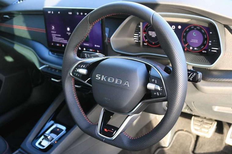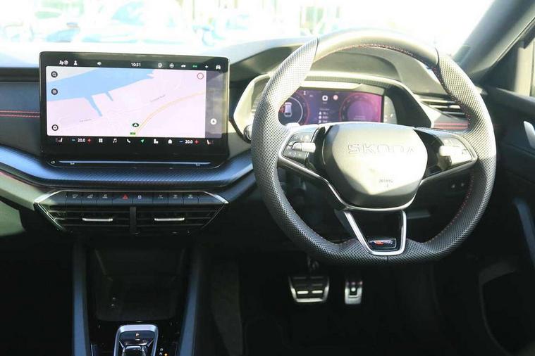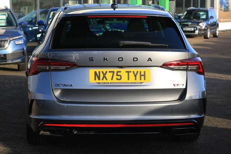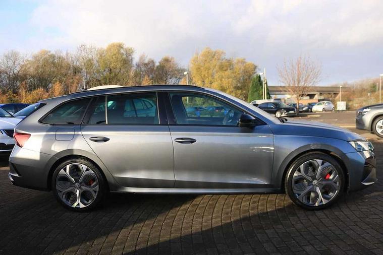 1x USB Typc C port in rear view mirror, 4x USB Type C ports - 2x in front centre console and 2x in rear (45W), Drive mode selection, Driver fatigue sensor, eCall emergency system, Electronic engine sound, Front assist system, Progressive dynamic steering, Traffic sign recognition, Turn Assist, Virtual Cockpit - 10.25" digital display, Voice control system, Wireless charging (15W) with cooling function, Wireless SmartLink for Apple CarPlay and Android Auto, Electronically controlled limited slip differential, vRS suspension, 13" touchscreen display with navigation, DAB Digital radio, Aero front windscreen wipers with intermittent function, Auto dimming rear view mirror, Black sport exhaust pipes, Body colour bumpers, Body colour door handles, Bumpers with rear red reflector strip, Electric front and rear windows, Exterior gloss black sports styling including front grille, window surrounds, door mirrors and badging, Gloss black diffuser, Gloss black roof rails, Gloss black spoiler, Heated rear windscreen, High beam control, High level third brake light, Ice scraper in fuel cap, LED daytime running lights, Logo projection in front doors, Rain and light sensors, Rear fog light on one side and reversing lights on both sides, Rear privacy glass, Rear side wing doors, Rear window wiper, Unique vRS bumpers and exterior styling, 12 volt socket in boot, 2x umbrella in door, 3 rear headrests, 3 seat bench in 2nd row, 4 foldable roof handles, Aluminium pedals, Front head restraints, Front sport seats, Heated front seats, Illuminated glovebox, Interior door handles in dark chrome, Jumbo Box storage, Luggage compartment lighting x2 lights, Mechanical rear seat release from boot, Single front passenger seat, Steering wheel in black leather with black stitching, Storage compartments in left and right of boot, Sun visors with mirrors, Sunglasses storage, Three spoke leather sports multifunction steering wheel with paddles, Ticket holder, Unsplit rear bench seat, split folding backrest with centre armrest with cupholder, Waste bin in door panel, Comfort package - Octavia Estate, Family package - Octavia, Light and view package plus - Octavia, vRS Design Selection pack - Octavia, 3x3 point rear seat belts, Alarm with interior monitoring, tilt sensor and back up horn, Curtain airbags and front side airbags, Driver and front passenger airbags, Drivers knee airbag, Electronic parking brake, ESC including ABS, EBV, MSR, ASR, EDS, HBA, DSR, Front central airbag, Hill hold assist, ISOFIX on front passenger seat and outer rear seats, Passenger airbag deactivate switch, Red brake calipers, Three point seat belts in front and rear, Two tone horn, Tyre pressure monitor, Visual and acoustic seat belt reminder, Warning reflectors in front door, Anti-theft wheel bolts, Keyless entry and start/stop, Remote central locking, Gloss black air vent surrounds, 19" Elias anthracite alloy wheels,