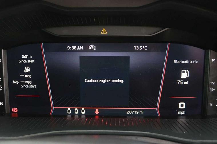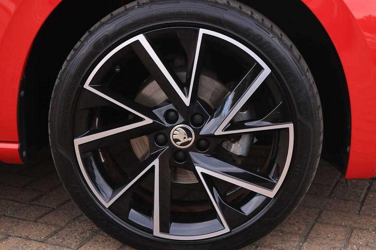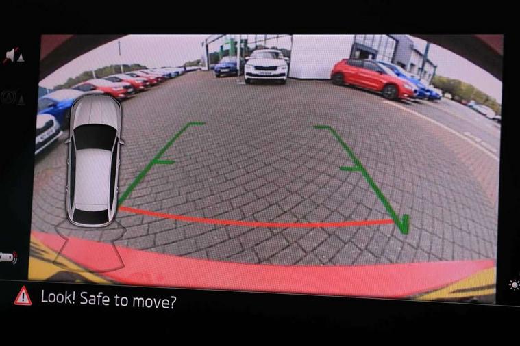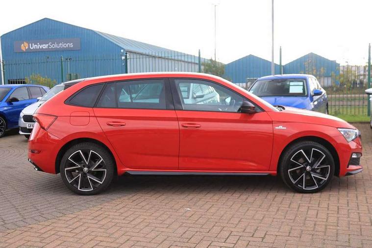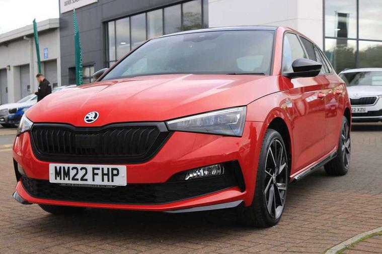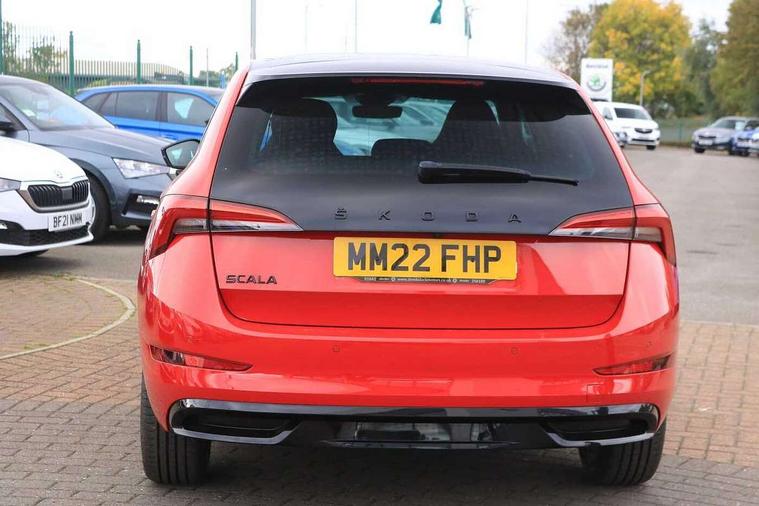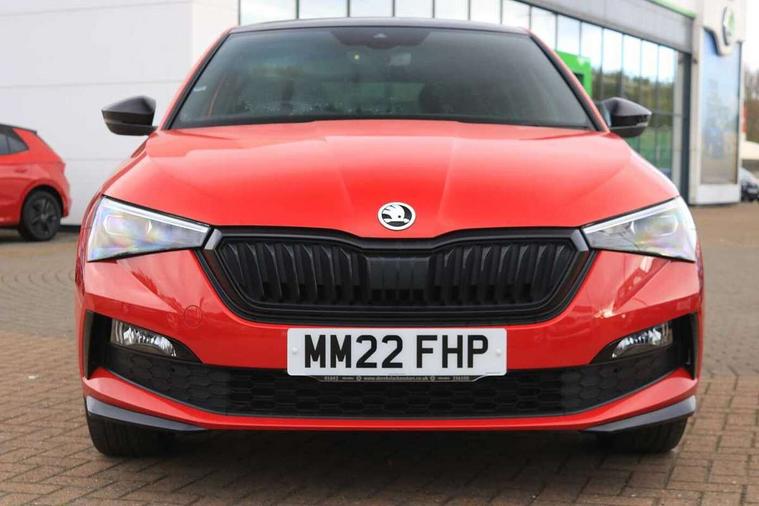 Amundsen satellite navigation with 9.2" glass colour touchscreen with virtual cockpit, web radio, Bluetooth system, eCall emergency system, Monte carlo instrument cluster, PAS, Rain and light assist with auto dimming rear view mirror, Rear view camera, Speed limiter, Traffic sign recognition, Virtual cockpit, Voice control system, 2 USB - C ports, 8 loudspeakers, DAB Digital radio, 3rd brake light, Adaptive front light system, Automatic headlamp activation with Coming home and Leaving home feature, Black door mirrors, Black radiator grille, Black rear diffuser, Black roof spoiler, Body colour door handles, Dimming rear view mirror with black frame, Electric folding door mirrors, Electrically adjustable and heated door mirrors, Front and rear electric windows, Front fog lights, LED daytime running lights, LED rear tail lights with dynamic indicators, Privacy glass, Rear side wing doors, Rear wiper, Skoda across tailgate in black, Tinted windows, 12V Accessory socket in centre console, 3 seat bench in 2nd row, Aluminium pedals, Chrome inner door handles, Cloth upholstery, Front head restraints, Glasses storage in roof liner, Height adjustable passenger seat, ISOFIX for rear passenger seat, Leather gearknob and handbrake lever, Manual lumbar support for front seats, Reading lights for driver and front passenger, Single front passenger seat, Sun visor with make up mirror for front passenger, Textile floor mats, Third rear headrest, Umbrella, Exterior design pack - Scala, 3x3 point rear seatbelts, Curtain airbags, Emergency call and proactive services, Front head and side airbags, Hill hold control, Manual rear child locks, One tone horn, Passenger airbag switch off function, Seat belt reminder for all seats, Alarm, Anti-theft wheel bolts, Remote central locking with 2 remote folding keys, SAFE function for remote central locking, 18" Vega alloy wheels in black, Temporary space saver wheel,