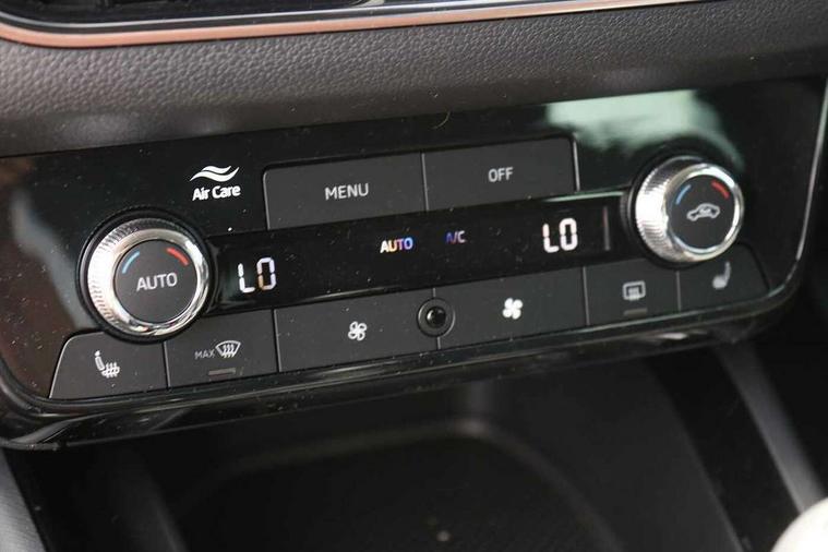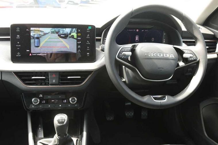 Advanced driver attention and drowsiness monitor, Bluetooth, e-Call (emergency call), Front assist system, PAS, Rear parking sensors, Rear view camera, Speed limiter, Tailgate, Traffic sign recognition, Virtual Cockpit - 10.25" digital display, Voice control system, Wireless smartlink, 4 USB C ports, 8 Speakers, 9.2" Skoda navigation display, DAB radio, Auto dimming rear view mirror, Automatic headlamp activation with Coming home and Leaving home feature, Automatic high/low beam, Automatic intermittent wipers, Body colour bumpers, Body colour door mirrors and handles, Chrome moulding around grille, Chrome window frames, Front and rear electric windows, Heated rear window, LED 3rd brake light, LED brake lights, LED daytime running lights, LED front turning lights, LED high beam, LED low beam, Light sensors, Privacy glass, Rear LED fog light, Rear side wing doors, Rear wiper, Tinted windows, Unique dark chrome design logo on alloy wheels, 12V socket in luggage compartment, 3 seat bench in 2nd row, Ambient lighting in white/red, Black / Copper armrest stitching, Cargo elements, Chrome inner door handles, Copper hotstamping, Door inserts in accent black, Driver and passenger sun visors with vanity mirror, Dual zone climate control, Front and rear roof lights, Front centre armrest, Front head restraints, Glasses storage in roof liner, Height adjustable driver seat, Height adjustable passenger seat, Ice scraper, Illuminated glove compartment, Inner circulation control with pollen filter, ISOFIX for front passenger seat, Isofix preparation for back seats, Leather gearknob and handbrake lever, Lodge cloth upholstery, Luggage net under rear parcel shelf, Manual lumbar support for front seats, Net package and top tether hooks in boot space, Pearl grey ceiling, Pocket on the back of both front seats, incl. mobile phone pockets, Rear centre armrest, Single front passenger seat, Skoda lettering on steering wheel, Textile floor mats, Third rear headrest, Ticket holder, Top tether for front passenger seat, Umbrella in driver's door, Convenience pack without rear camera - Scala, 3x3 point rear seatbelts, ABS, Child locks, Curtain airbags and front side airbags, Disc brakes, Driver and front passenger airbags, ESP, Hill hold control, Manual leather parking brake, One tone horn, Passenger airbag switch off function, Seatbelt reminder for driver and front passenger, Tyre pressure monitoring system, Anti theft alarm system with interior monitoring, backup horn and towing protection, Anti-theft wheel bolts, Remote central locking with 2 remote folding keys, SAFE function for remote central locking, Decorative inserts,