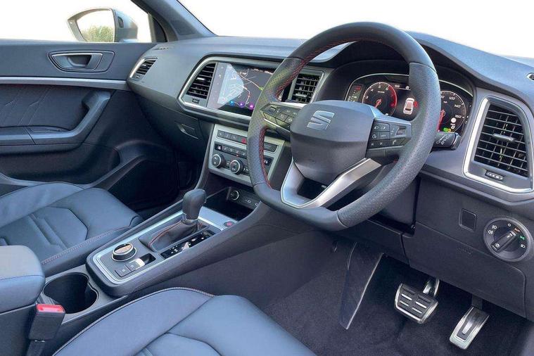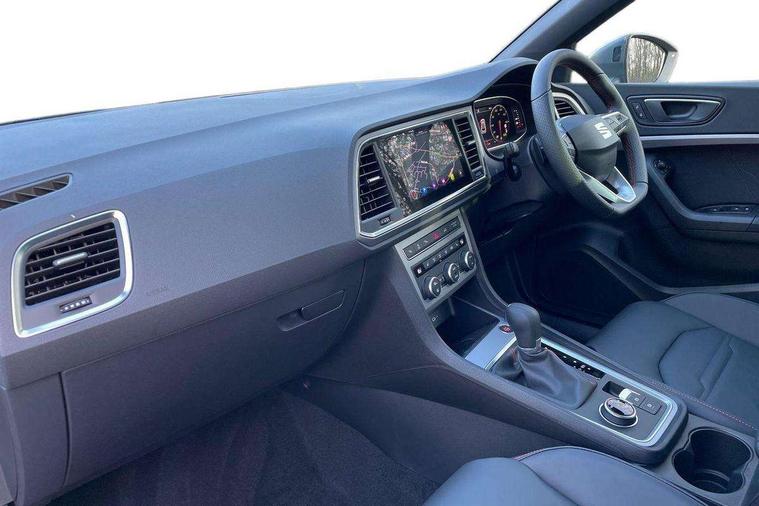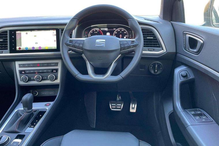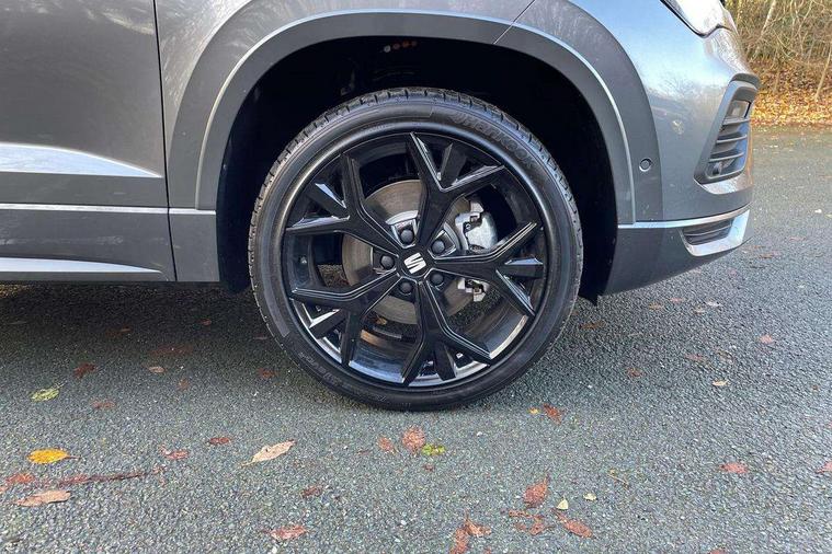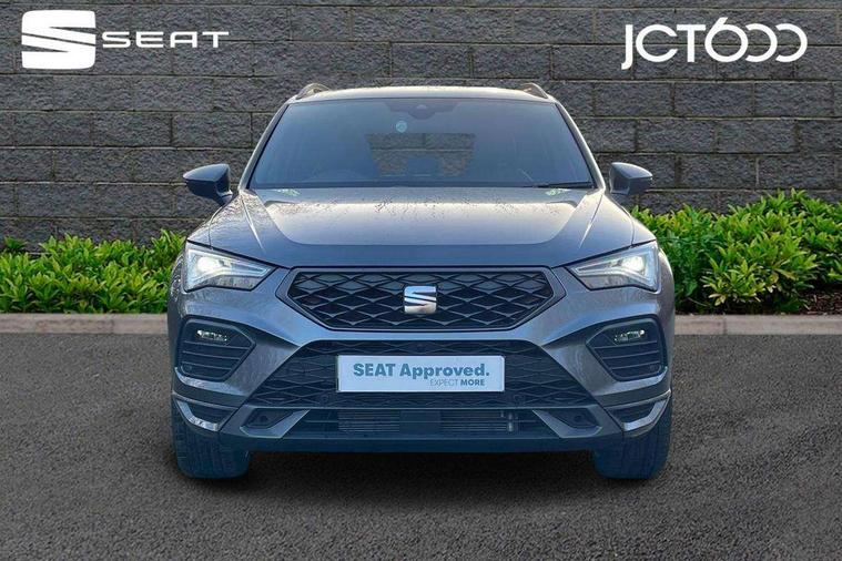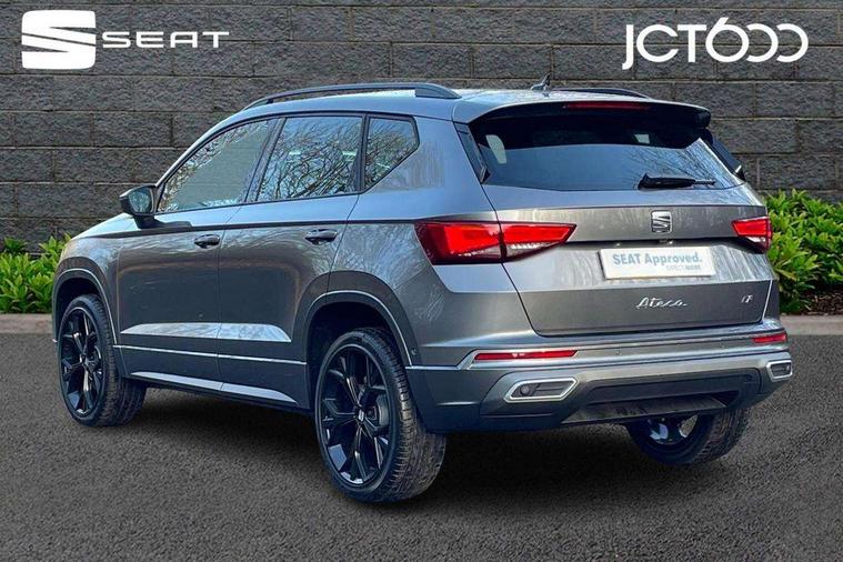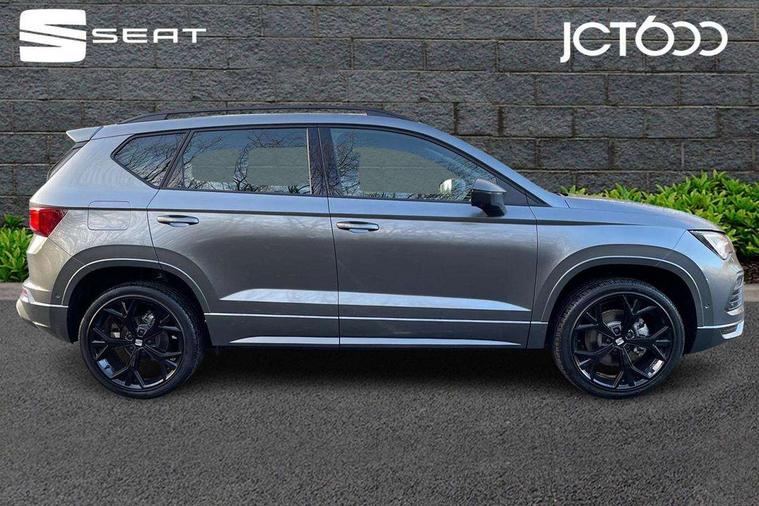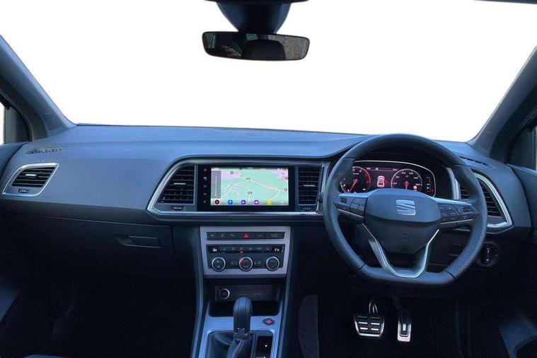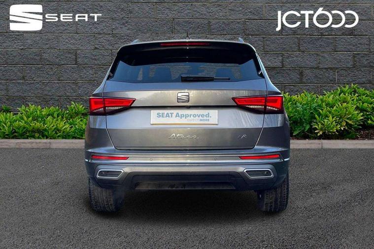 10" Digital cockpit, Bluetooth audio streaming with handsfree system, E-call, Electric tailgate with virtual pedal, Outside temperature gauge, Progressive power assisted steering, SEAT drive profile with driving experience button - Normal, Sport, Eco and Individual mode, gearshift, steering and throttle response, Self parking functionality (includes front and rear parking sensors), Speed limiter, Start/stop system, Top view camera with rear view camera, Trip computer, wired and wireless full link smartphone integration, Wireless phone charger, Steering wheel mounted audio/phone controls, Black roof rails, Black side window trim, Body colour bumpers, Body coloured wheel arch surrounds, Chrome front grille frame, Dark tinted rear windows, Daytime running lights, Door mirrors with welcome light silhouette, Dynamic headlight range control with self adjusting whilst driving, Electric adjustable/heated/folding door mirrors, Front and rear electric windows, Illuminated aluminium front door sill, LED 3rd brake light, LED headlamps with lens and LED front fog lamps with cornering function, LED rear tail lights with dynamic indicators, Rear exhaust tailpipe, Rear fog lights, Rear side wing doors, Rear spoiler, Rear wash/wipe, Variable front intermittent wipers, 12V socket in front, 3 seat bench in 2nd row, 60/40 split folding rear seat, Aluminium pedals, Black greenhouse interior roof, Dual zone climate control, Electric adjustable driver seat with memory function, Front and rear head restraints, Front centre armrest, Front seat back storage pockets, Heated front seats, Height adjustable passenger seats with lumbar adjustment, ISOFIX points in outer rear seats with top tether anchorage points, Leather sports steering wheel and gear knob, Leather upholstery with front comfort seats, Rear armrest and easy back seat release mechanism from boot, Single front passenger seat, Steering wheel mounted gearshift paddles, Convenience pack - Ateca, Interior lighting pack - Ateca, Navigation system pack with DAB - Ateca, Safety and driving pack (L) - Ateca, Safety and driving pack with attention and drowsiness assist - Ateca, 3x3 point rear seatbelts, ABS, Traction control system (TCS), Electronic stability control (ESC) and Electronic differential lock system (XDS), Airbags - Driver and front passenger airbag with deactivation, front side, two curtain and driver's knee airbags, Electric parking brake with auto hold function, Front and rear seatbelt reminder, Hill hold control, Manual rear child locks, Single tone horn, Tyre pressure monitoring system, Alarm, Keyless entry, Locking wheel bolts, Remote central locking, Chrome interior detailing, 19" Exclusive alloy whelels 36/10 in glossy black, Tool kit,