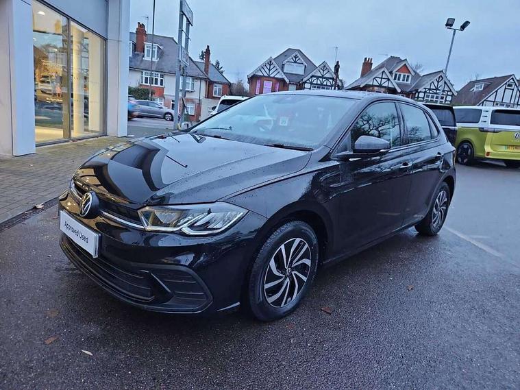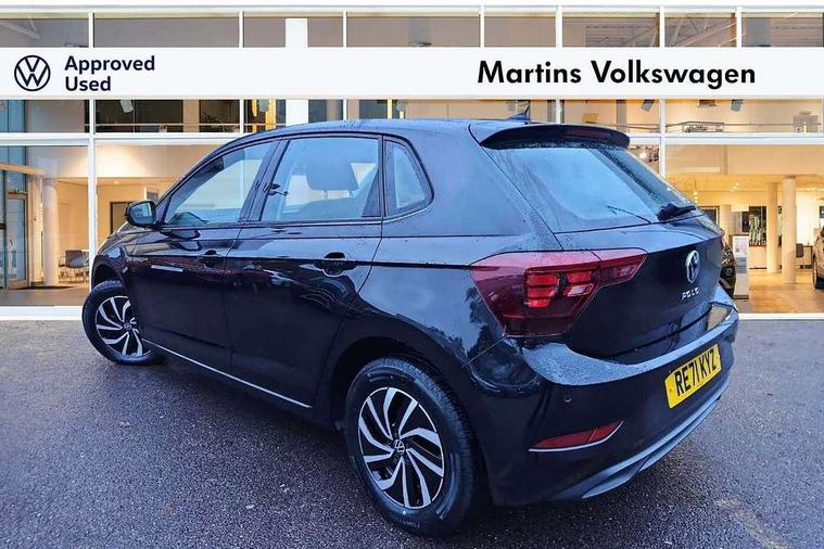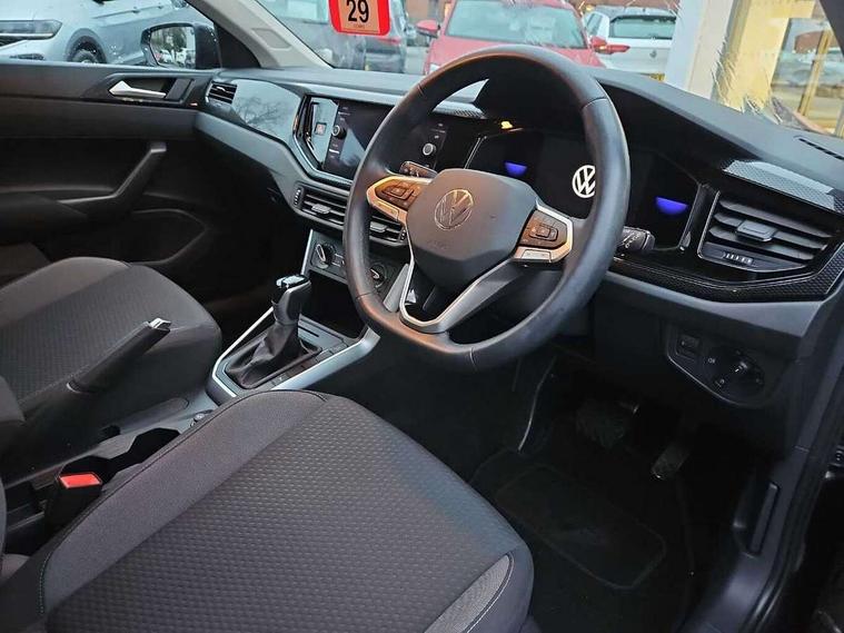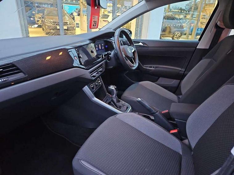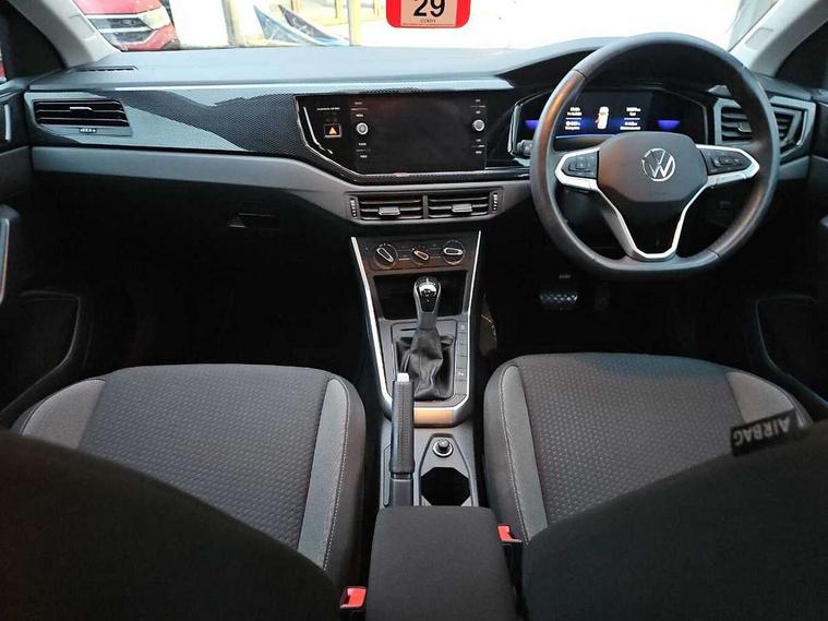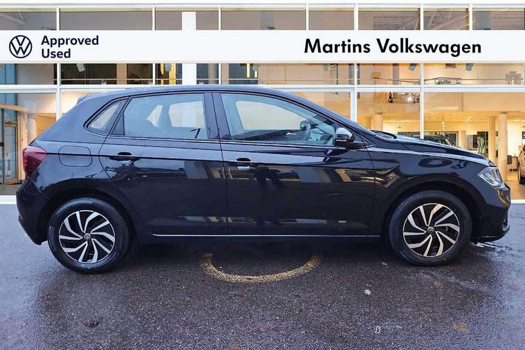 Adaptive cruise control with follow-to-stop and speed limiter, Bluetooth mobile phone interface, Driver alert system, Emergency call service, Front assist system, Power assisted speed sensitive steering, Preparation for We connect and We connect plus, Speedo and rev counter, electronic odometer, trip, service interval display and fuel gauge, Standard rear axle, Travel Assist - Lane keeping system and traffic jam assist, Travel assist including emergency assist, Trip computer, Warning signal and warning light for front and rear seatbelts not fastened, Washer fluid level indicator, Wireless app connect, Front wheel drive, Rear shock absorpion, Start-stop system with battery regeneration (recuperation - energy recovery during braking), DAB Digital radio, Diversity antenna for FM reception, Automatic dimming interior rear view mirror, Body colour bumpers, Body colour door handles, Body colour door mirrors, Electric front windows, Heat insulating darkened glass in side and rear windows, Heat insulating glass windscreen, Power folding adjustable/heated exterior mirrors and front passenger exterior mirror lowering function, Rain sensor, Rear electric windows, Rear fog light, Rear windscreen washer and wiper with interval delay, Third brake light, 12V power socket in centre console, 2 front and 2 rear reading lights, 2 USB-C ports in the front, 2 USB-C charging sockets on the center console in the rear, 3 rear head restraints, 60/40 split folding rear seat and rear seat bench not split, Ceramique headliner, Chrome plated radiator grille inserts, air vent surrounds and light switch surrounds, Door and side trim panel, Driver and front passenger seat height adjustment, Driver/passenger sunvisors with illuminated vanity mirrors, Front centre armrest, Front seat backrest storage pockets, Front standard seats, Handbrake lever handle in leather, Hartley/Thomas cloth upholstery, Isofix child seat preparation easy-fit (for two outer rear seats, and front passenger seat) compatible with I-size, Leather trimmed gear knob, Luggage compartment cover, Luggage compartment floor, Luggage compartment lighting, Standard pedal cluster, Three spoke leather wrapped multifunction steering wheel with shifting paddles, Light and vision pack - Polo, 3 point height adj front seatbelts + pretensioners, 3x3 point rear seatbelts, ABS, Driver and front passenger airbag with front passenger airbag deactivation, Drivers and front passengers safety optimised head restraints, ESC (Electronic stability control) + EDL (Electronic Differntial lock) and ASR (Traction control), Extended and predictive pedestrian/ cyclist protection, Front curtain and side airbags with center airbag, Front disc brakes, Hill hold control, Rear drum brakes, Single tone horn, Tyre pressure loss indicator, Alarm with interior protection, Anti-theft alarm system with interior monitoring, backup horn, and towing protection, Anti-theft wheel bolts, Electronic engine immobiliser, Lava stone black gloss/matt decorative inserts in dash and front door panels, Low rolling resistance tyres,
