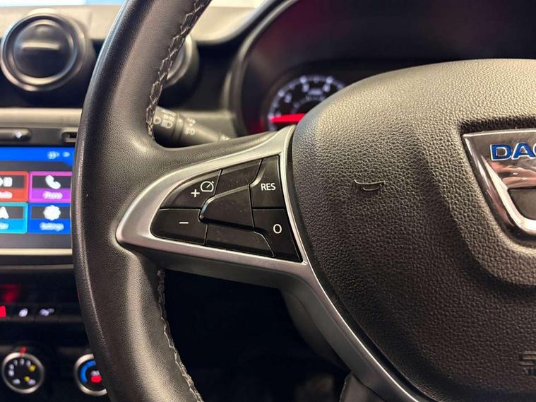 Bluetooth connectivity, Centre differential lock with selectable 2WD, Auto and Lock modes, Cruise control, Eco mode, Electric power assisted steering, MediaNav Evolution 7" touchscreen multimedia system with satellite navigation, Apple car play and Android auto, RDS with TMC, siri voice recognition, On board computer, odometer, trip computer, average fuel consumption, average speed, service indicator, outside temperature gauge, Rear parking camera, Rear parking sensors, Rev counter, Speed limiter, Stop/start system, 4x 20W FM/AM/DAB tuner with steering column mounted fingertip controls, Aux-in socket, USB connection for MP3 players, 3 speed windscreen wipers, Black number plate surround, Black side sills, Black/satin chrome tailgate trim with Duster inscription in black background and lettering, Body coloured door handles, Body coloured front and rear upper section bumpers, Chrome front grille, Dark glass on lateral rear windows, Dark metal door mirrors in grey, Daytime running lights, Double optic headlights, Dusk sensor, Electric adjustable/heated door mirrors, Electric front windows, Electric rear windows, Front and rear black lower section bumpers, Front door sill protection strip, Front fog lights, Heated rear window, High level third rear brake light, LED automatically switched on - In main headlights, Rear wash/wipe, Satin chrome front and rear skid plates, Satin chrome longitudinal roof bars, 3 rear height adjustable headrests, 4 speed heating and ventilation with air recirculation, 60/40 split folding rear seat, Boot light, Driver seat lumbar adjustment, Fabric decorative insert on door panels, Front passenger reading light, Front seat armrests, Gear shift indicator, Glovebox light, Graphite cloth upholstery, Height adjustable driver seat, Height adjustable front headrests, Height adjustable steering wheel, Isofix points for child seats in both outer rear seats, Manual air conditioning, Map pocket on front seat backs, Matt black front door handles, Matt black rear door handles, Passenger sunvisor with vanity mirror, Rear passenger reading light, Satin chrome gear lever cap insert, Satin chrome lower steering wheel insert, Soft feel steering wheel, 3x3 point rear seatbelts, ABS and Emergency brake assist, ASR traction control with Electronic stability control, Child locks on rear doors, Door open visual and audible warning, Driver airbag, Driver and passenger seatbelt not fastened - visual and audible warning, Front passenger airbag, Front passenger airbag deactivation, Front seatbelt pretensioners, Front side airbags, Height adjustable front seatbelts, Hill descent control, Tyre pressure monitor, Remote central locking, Thatcham approved engine immobiliser, Dark carbon central console surround, Matt black central console fascia, Piano black decorative insert on door panels, Satin chrome air vent surround, Satin chrome instrument dial surrounds, 16" Cyclade aluminium Alloy wheels,