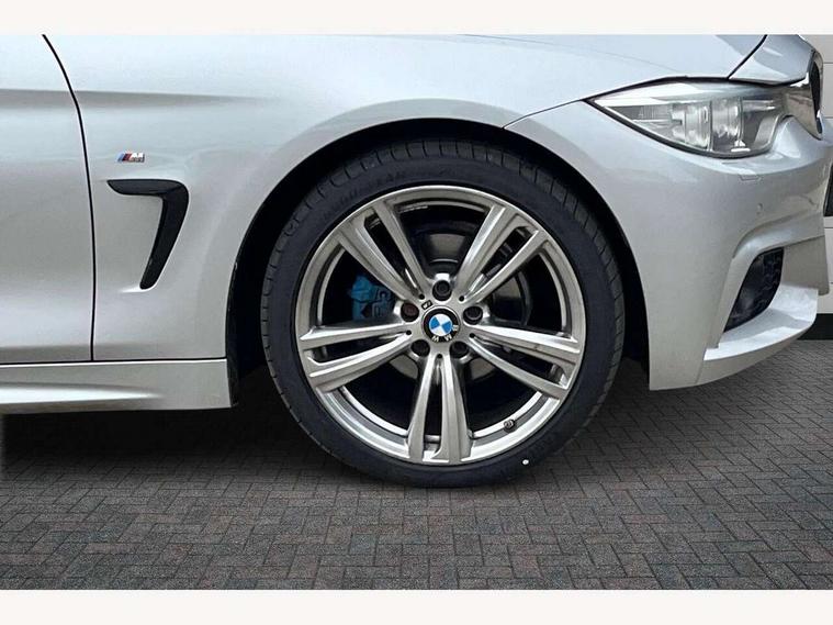 Automatic tailgate opening, BMW Teleservices, Brake pad wear indicator warning light, Check control system, Door/boot open warning, Front/rear Parking distance control, Lights on warning, Oil temperature gauge, On board computer, Outside temperature display, Run flat indicator, Service interval indicator, Stop/start button, Drive Performance Control, Electronic differential lock, Auxiliary point for auxiliary devices, BMW professional radio/CD/MP3, DAB Digital radio, 2 speed adjustable intermittent wipers with wash/wipe function, Auto dimming rear view mirror, Body colour bumpers, Body colour door handles, Body colour door mirrors, Body colour roof mouldings, Chrome exhaust tailpipe, Chrome kidney grille with black vertical slats, Daytime running lights, Door sill finishers, Electric adjustable heated door mirrors, Electric front and rear windows with fingertip open/close + anti-trap all round, Follow me home headlights, Front fog lights, Headlight range control, Headlight washers, Heat insulating tinted glass, Heated windscreen washer jets, High gloss shadow line, LED tail lights, M aerodynamic bodystyling, Rain sensor including auto headlights activation, Welcome lighting, Windscreen with grey shadeband, 12V sockets in front centre console and passenger footwell, 3 spoke leather M sport multifunction sports steering wheel, 4 grab handles, Anthracite headlining, Dual zone climate control, Folding storage compartment with glasses holder + coin tray, Front centre armrest with storage compartment, Front cupholders x 2, Front sports seats with electric side bolster adjustment, Front/rear armrests within door panels, Glovebox with lid, Heated front seats, Integrated rear head restraints, ISOFIX child seat preparation+airbag deactivation, Lashing eyelets in boot, Leather gearknob, Leather handbrake, Reach + rake adjustable steering column, Rear centre armrest with 2 cupholders, Storage compartment in rear centre console, Sunvisors with vanity mirrors, Toolkit located in luggage compartment, Velour floormats, Extended lights package - 4 Series, 3 point seatbelts on all seats, ABS/EBD, Automatic Stability Control (ASC), BMW emergency call, Brake assist function, Cornering brake control (CBC), Crash Sensor - activates hazard/interior lighting + unlocks doors, Driver seatbelt warning indicator, Driver/Front Passenger airbags, DSC+, Dynamic brake control, Dynamic Traction Control - DTC, Front passenger airbag deactivation, Front seatbelt force limiters, Front seatbelt pretensioner, Front side airbags, Hill start assist, ITS head airbags for front/rear, Side impact protection, Tyre pressure monitor, Warning triangle and first aid kit, Drive away door locking, Electronic immobiliser, Remote central locking, Remote control Thatcham category 1 alarm, Run flat tyres,