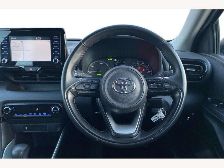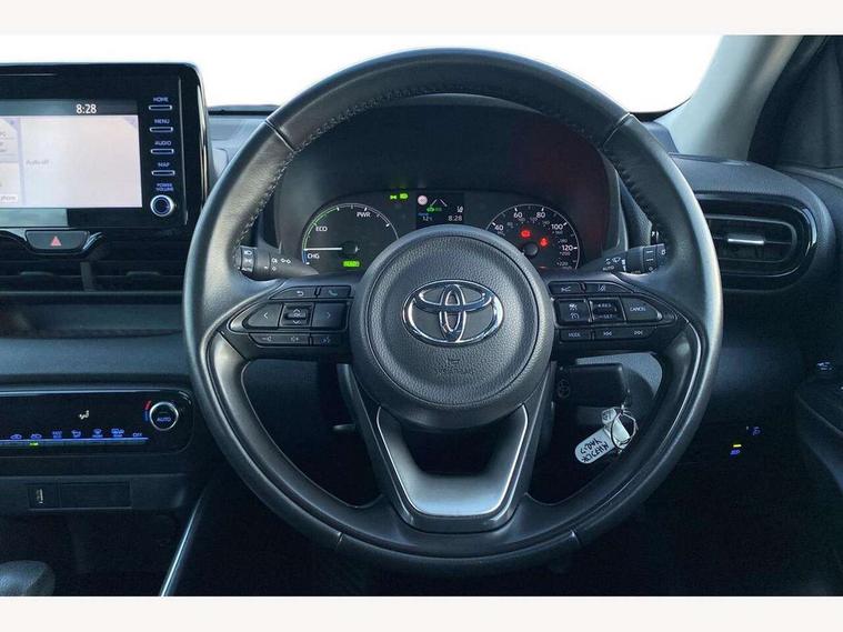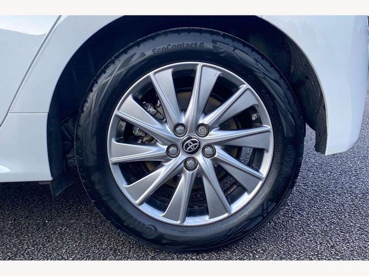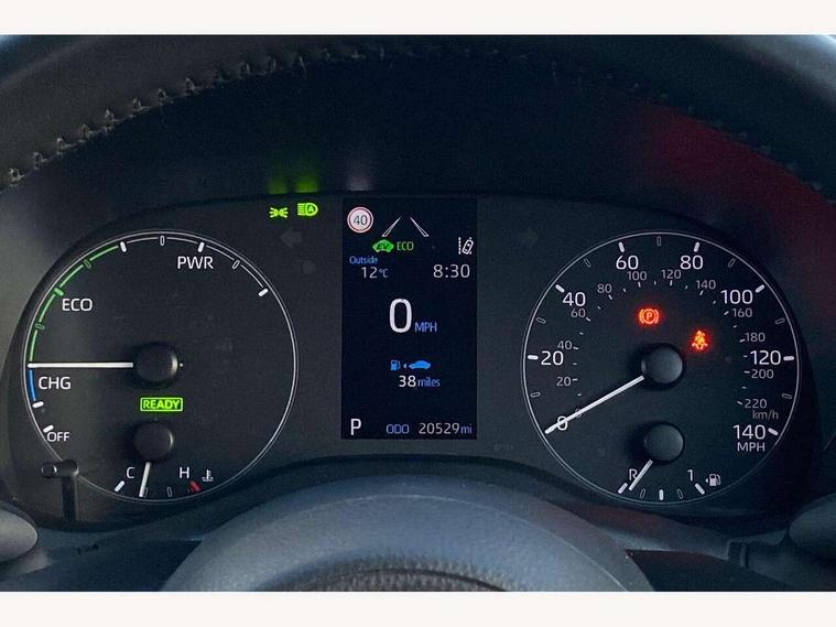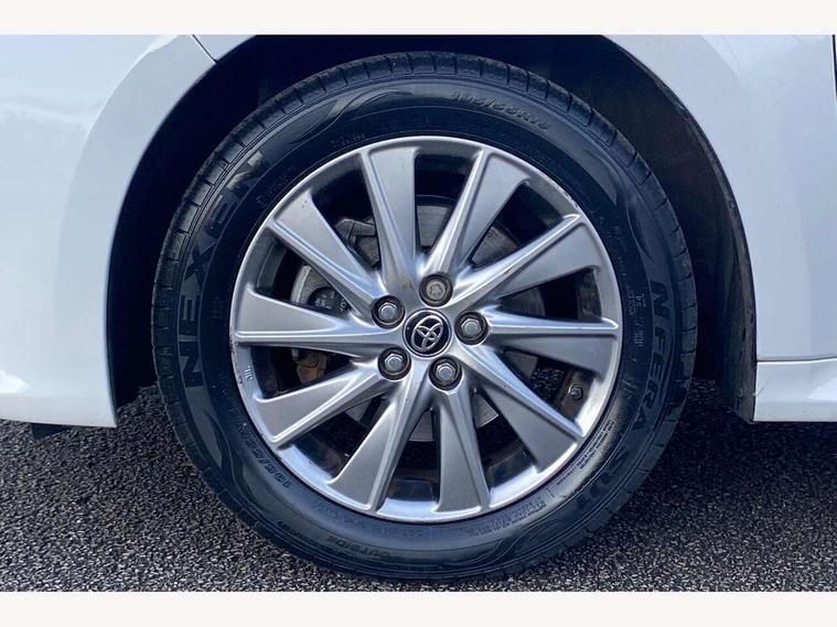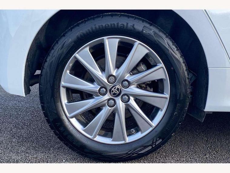 4.2" coloured TFT multi information display with analogue speedometer, Adaptive cruise control, Adjustable speed limit with speed warning, Bluetooth connectivity, E-call, Electric power steering, Hybrid energy display, Multi information display switches on steering wheel, Reversing camera, Smartphone integration with Apple CarPlay and Android auto, Smartphone integration with Apple CarPlay/Android Auto, Tailgate, Voice recognition, Vehicle Stability Control (VSC), 4 speakers, 9" Multimedia touch display, Toyota Touch 3 system with DAB radio, USB connection, Acoustic windscreen glass, Auto windscreen wipers, Automatic headlights, Body coloured door mirrors, Bulb indicators, Chequered front grille, Daytime running lights, Electric adjustable heated door mirrors, Follow me home headlights, Front auto power windows with anti jam protection, Front halogen fog lights, Halogen projector headlights, LED High mounted stop lamp, Manual headlight levelling, Rain sensor, Rear auto power windows with anti jam protection, Rear side wing doors, Rear spoiler, Rear wiper, Shark fin antenna, Turning signal integrated indicators in door mirrors, Variable front intermittent wipers, 3 adjustable rear headrests, 3 seat bench in 2nd row, 3 spoke leather steering wheel, 60/40 split folding rear seat, Active headrests, Adjustable boot height, Auto air conditioning, Coat hooks in rear grab handles, Cup holders (2 front & door), Data Communication Module (DCM) connected services, Fabric upholstery, Front armrest, Glovebox, Grey roof lining, Height adjustable driver's seat, Isofix seat fixing, Leather gearshift, Pollen filter, Shopping bag hooks, Single front passenger seat, Tilt/telescopic steering column, 3 point seatbelts on all rear seats, ABS+EBD+Brake assist, Electronic parking brake, Emergency brake light system (EBS), Front passenger airbag on/off switch, Front seatbelt reminder, Hill start assist control (HAC), Rear child proof door locks, Rear seat belt reminder, Supplemental Restraint System (SRS) 8 airbags: Driver & passenger's airbags, dual side curtain airbags, side impact airbags, front centre airbag, Toyota Safety Sense 3 with over the air updates, Tyre pressure warning system, 2x Master key, Alarm/immobiliser, Remote powered central double locking doors, Soft touch instrument panel, Space saver spare wheel,