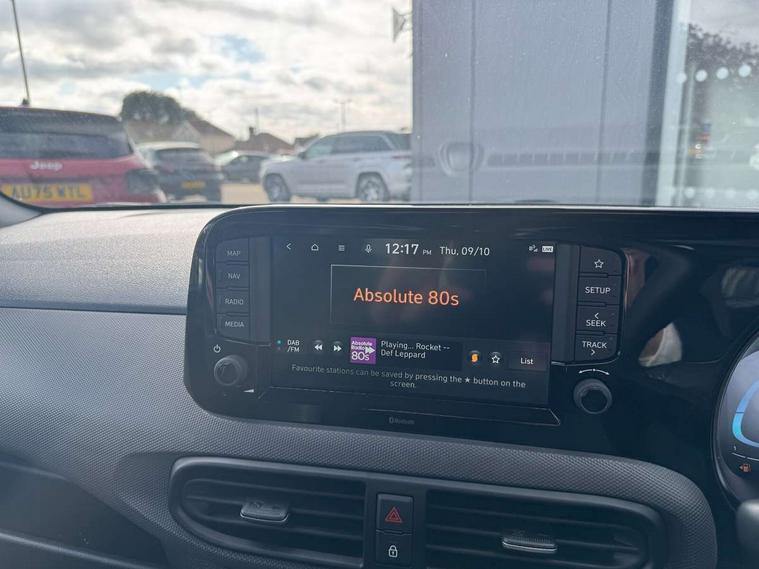 12.5" touchscreen centre console display audio with navigation, mapcare and live services, Apple car play/Android Auto, Bluelink mobile remote connectivity, Bluetooth connectivity with voice recognition, Cruise control, Driver attention alert system, eCall emergency call system, Forward Collision-Avoidance Assist (FCA) - Pedestrian/Cyclist, Front USB-C charging and USB-A data, Full-width 4.2" LCD instrument cluster, Intelligent speed limit assist, Lane departure warning system with lane keep assist - LKAS, Lane follow assist, PAS, Rear parking sensors, Rear view camera with guidelines, Roadside assistance, Start/Stop function, Tailgate, Trip computer, 2 front/2 rear speakers, Rear USB-C device charger, Steering wheel audio, phone and cruise controls, 1 speed non intermittent rear windscreen wiper, Black finish on B pillars, Body colour door handles, Body coloured bumpers, Body coloured door mirrors, Electric front windows, Electric rear windows, Electrically adjustable and heated door mirrors, Flat metal emblem, Front grille in matte black, Front intermittent wipers, Halogen daytime running lights, Halogen headlights, Headlights inner with Black Blade design, Heated rear window, High beam assist, Indicator light on door mirrors, Rear side wing doors, Rear spoiler with integrated LED brake light, 12v power outlet - front, 3 seat bench in 2nd row, 60/40 split folding flat to floor rear seats, Air conditioning, Auto light control, Bottle holders in front/rear doors + front centre console, Cabin and luggage compartment interior lighting, Cloth upholstery, Driver + passenger vanity mirrors, Driver's seat height adjustment, Driver/passenger sunvisors with ticket holders, Floor mats, Front door pockets, Front Head Restraints - Vertical and Horizontal Adjustment, Glove compartment, Height adjustable steering column, Isofix child seat preparation, Leather multifunction steering wheel, Rear door pockets, Single front passenger seat, Vertical adjustment rear head restraints, 3x3 point rear seatbelts, Airbags - front, front side and curtain airbags, Anti-lock brake system (ABS), Autonomous emergency braking (AEB) with forward collision warning system, Brake assist function, Childproof rear door locks, Electronic stability control, Front and rear seatbelt reminder, Front seatbelt pretensioners, Hill start assist control (HAC), Passenger airbag deactivate switch, Traction control, Tyre pressure monitoring system, Immobiliser, Perimeter alarm, Rear occupant alert, Remote central locking, Second remote key, Speed sensitive auto door locking, 15" alloy wheels, Tyre repair kit,