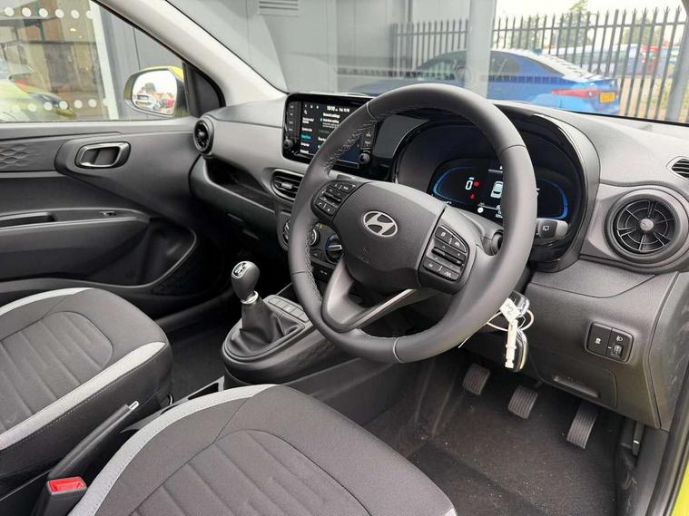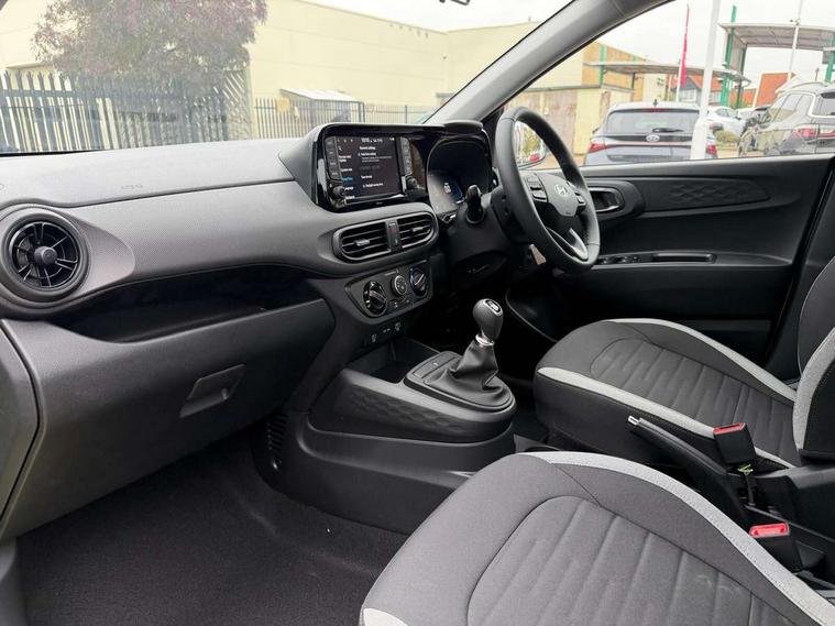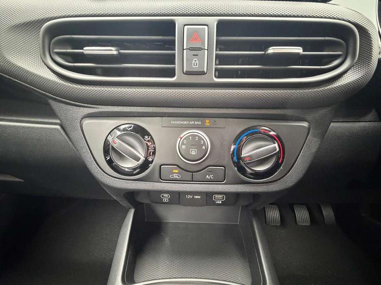 8" Touchscreen satellite navigation including mapcare and LIVE services, Apple car play/Android Auto, Bluelink mobile remote connectivity, Bluetooth connectivity with voice recognition, Cruise control, Driver attention alert system, eCall emergency call system, Forward Collision-Avoidance Assist (FCA) - Pedestrian/Cyclist, Full-width 4.2" LCD instrument cluster, Intelligent speed limit assist, Lane departure warning system with lane keep assist - LKAS, Lane follow assist, PAS, Rear parking sensors, Rear view camera with guidelines, Roadside assistance, Start/Stop function, Tailgate, Trip computer, 2 front/2 rear speakers, Front and rear USB-C ports, Front USB connection, Leading vehicle alert (LVA), Steering wheel audio, phone and cruise controls, 1 speed non intermittent rear windscreen wiper, Black finish on B pillars, Body colour door handles, Body coloured bumpers, Body coloured door mirrors, Electric front windows, Electric rear windows, Electrically adjustable and heated door mirrors, Flat metal emblem, Front grille in matte black, Front intermittent wipers, Halogen headlights, Headlights inner with Black Blade design, Heated rear window, High beam assist, Indicator light on door mirrors, LED daytime running lights, Rear roof spoiler with integrated LED brake light, Rear side wing doors, 12v power outlet - front, 3 seat bench in 2nd row, 60/40 split folding flat to floor rear seats, Auto light control, Bottle holders in front/rear doors + front centre console, Cabin and luggage compartment interior lighting, Cloth upholstery, Driver + passenger vanity mirrors, Driver's seat height adjustment, Driver/passenger sunvisors with ticket holders, Floor mats, Front door pockets, Front Head Restraints - Vertical and Horizontal Adjustment, Glove compartment, Height adjustable steering column, Isofix child seat preparation, Leather wrapped steering wheel and gear knob, Manual air conditioning, Rear door pockets, Single front passenger seat, Vertical adjustment rear head restraints, 3x3 point rear seatbelts, Airbags - front, front side and curtain airbags, Anti-lock brake system (ABS), Autonomous emergency braking (AEB) with forward collision warning system, Brake assist function, Childproof rear door locks, Electronic stability control, Front and rear seatbelt reminder, Front seatbelt pretensioners, Hill start assist control (HAC), Passenger airbag deactivate switch, Traction control, Tyre pressure monitoring system, Immobiliser, Perimeter alarm, Rear occupant alert, Remote central locking, Second remote key, Speed sensitive auto door locking, 15" Alloy wheels, Temporary mobility kit (TMK),