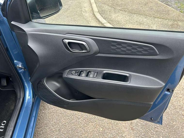 8" Touchscreen satellite navigation including mapcare and LIVE services, Apple car play/Android Auto, Bluelink mobile remote connectivity, Bluetooth connectivity with voice recognition, Cruise control, Driver attention alert system, eCall emergency call system, Forward Collision-Avoidance Assist (FCA) - Pedestrian/Cyclist, Full-width 4.2" LCD instrument cluster, Intelligent speed limit assist, Lane departure warning system with lane keep assist - LKAS, Lane follow assist, PAS, Rear parking sensors, Rear view camera with guidelines, Roadside assistance, Tailgate, Trip computer, Wireless charging pad, 2 front/2 rear speakers, Front and rear USB-C ports, Front USB connection, Leading vehicle alert (LVA), Steering wheel audio, phone and cruise controls, 1 speed non intermittent rear windscreen wiper, Black finish on B pillars, Body colour door handles, Body coloured bumpers, Body coloured door mirrors, Electric folding door mirrors, Electric front windows, Electric rear windows, Electrically adjustable and heated door mirrors, Flat metal emblem, Front fog lights, Front grille in glossy black, Front intermittent wipers, Halogen bi-function headlights, Headlights inner with Black Blade design, Heated rear window, High beam assist, Indicator light on door mirrors, LED daytime running lights, Privacy glass for rear window, Rear roof spoiler with integrated LED brake light, Rear side wing doors, 12v power outlet - front, 3 seat bench in 2nd row, 60/40 split folding flat to floor rear seats, Air conditioning climate control, Auto light control, Bottle holders in front/rear doors + front centre console, Cabin and luggage compartment interior lighting, Cloth upholstery, Driver + passenger vanity mirrors, Driver's seat height adjustment, Driver/passenger sunvisors with ticket holders, Floor mats, Front door pockets, Front Head Restraints - Vertical and Horizontal Adjustment, Front LED blue mood lighting, Glove compartment, Heated front seats, Heated steering wheel, Height adjustable steering column, Isofix child seat preparation, Leather wrapped steering wheel and gear knob, Metallic grey dashboard finisher with Meta Blue air vent rings, black/purple grey C-Pad and dark metallic garnish console, Rear door pockets, Single front passenger seat, Vertical adjustment rear head restraints, 13" Rear brake discs, 3x3 point rear seatbelts, Airbags - front, front side and curtain airbags, Anti-lock brake system (ABS), Autonomous emergency braking (AEB) with forward collision warning system, Brake assist function, Childproof rear door locks, Electronic stability control, Front and rear seatbelt reminder, Front seatbelt pretensioners, Hill start assist control (HAC), Passenger airbag deactivate switch, Traction control, Tyre pressure monitoring system, Immobiliser, Perimeter alarm, Rear occupant alert, Remote central locking, Second remote key, Smart key with keyless entry and engine start/stop button, Speed sensitive auto door locking, 16" alloy wheels, Temporary mobility kit (TMK),