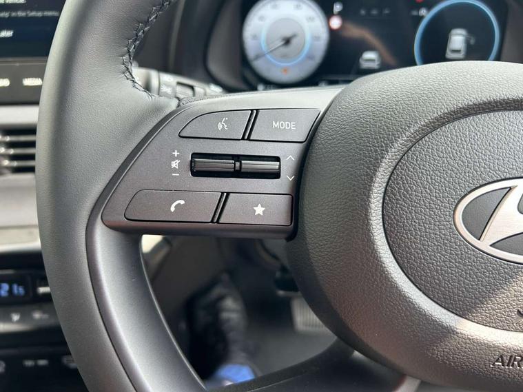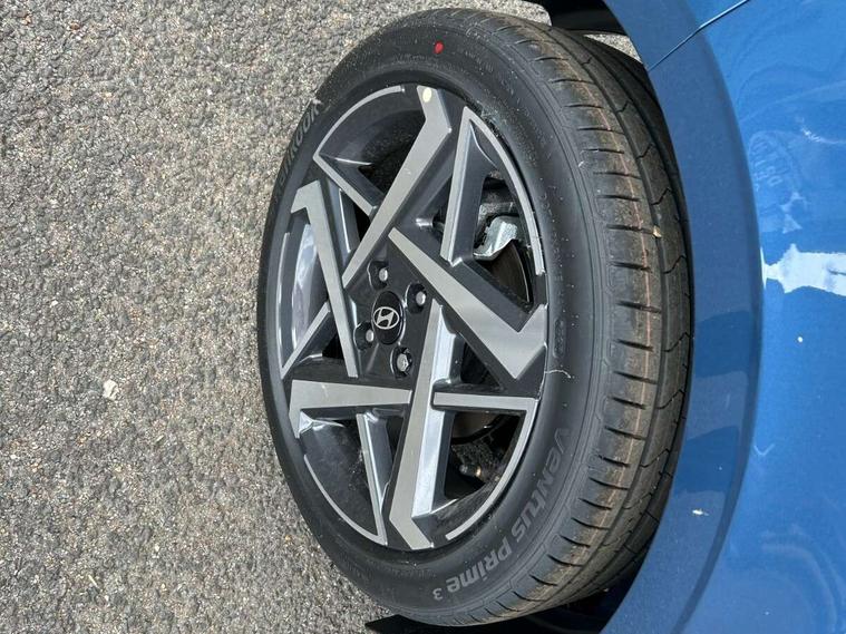 10.25" digital supervision cluster, 10.25" touchscreen + navigation, 2nd Gen eCall, Apple car play/Android Auto, Cruise control + speed limiter, Dusk sensor, Front parking sensor, Intelligent speed limit warning, Lane follow assist, Lane keep assist, MAP OTA updates, PAS, Rear parking sensor, Rear view camera with dynamic guidelines, USB C port front, USB C Port in rear, 3rd brake light, Electric adjustable heated door mirrors, Electric folding door mirrors, Front grille mesh pattern design, High beam assist, LED daytime running lights, LED Headlights, LED taillights, Privacy glass - Rear windows and tailgate, Rain sensor, Rear side wing doors, Rear wiper, Repositioned flat metal hyundai emblem, 3 seat bench in 2nd row, Adjustable head restraints, Automatic air conditioning, Cloth upholstery, Floor mats, Heated front seats, Heated steering wheel, Leather steering wheel, Multi colour ambient lighting, Single front passenger seat, 3x3 point rear seatbelts, ABS with front and rear diagonally split, Autonomous emergency braking, Child locks on rear doors, Front ventilated disc brakes, Rear solid disc brakes, Tyre pressure monitoring system, 17" alloy wheels, Tyre repair kit,